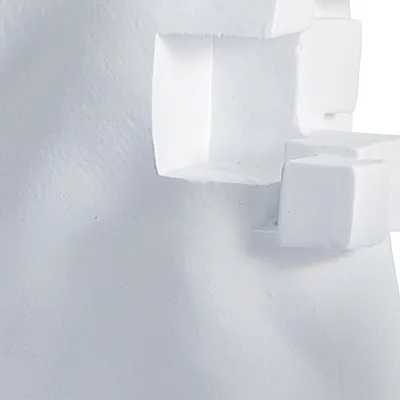 Dieses vielseitige Material zeichnet sich durch seine Leichtigkeit und Langlebigkeit aus. Die glatte, weiße Oberfläche verleiht der Skulptur eine moderne und minimalistische Ästhetik. Kunststoff ist außerdem äußerst pflegeleicht und widerstandsfähig, wodurch es sich ideal für zeitgenössische Dekorationen eignet.