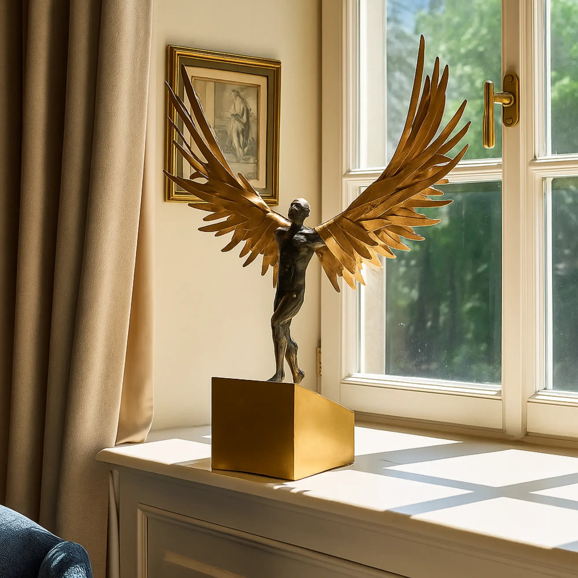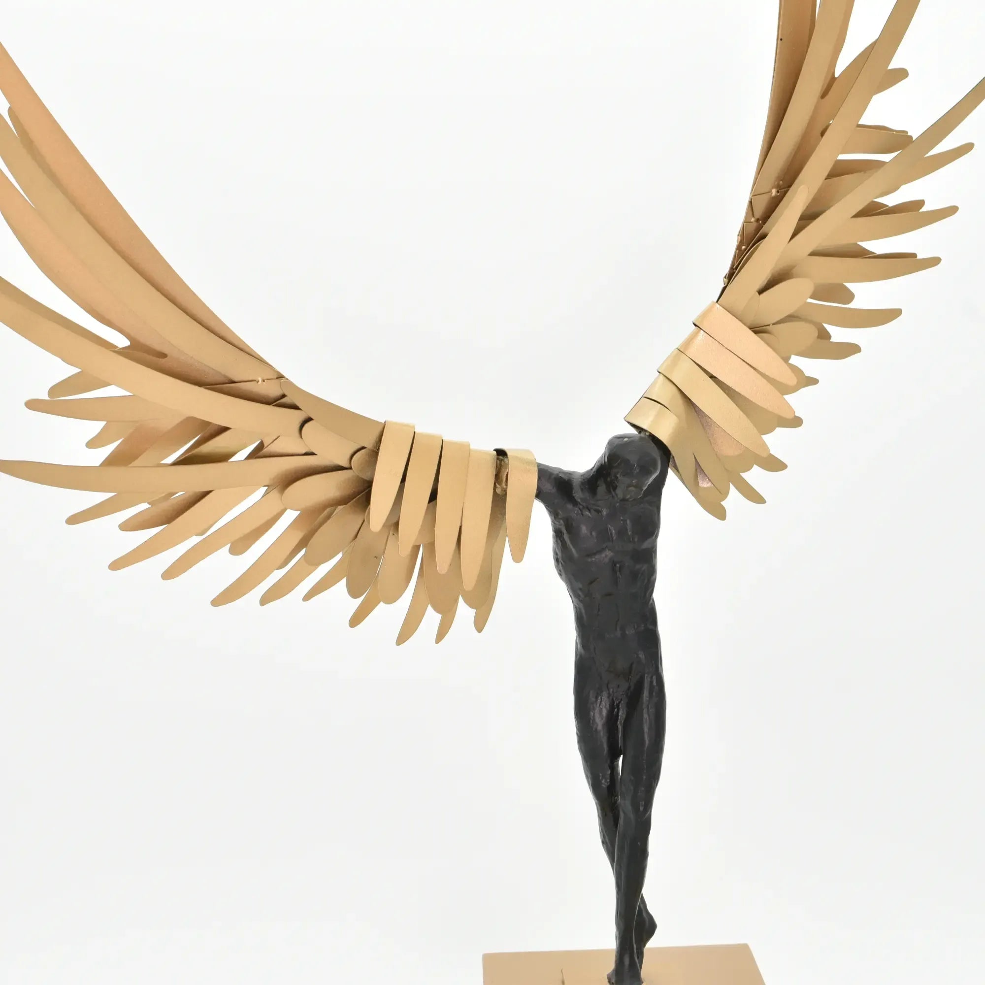 Detailliert und dynamisch gestaltet – die menschliche Figur mit ausgebreiteten Flügeln verkörpert Aufbruch, Stärke und Freiheit. Ein modernes Kunstobjekt mit symbolischer Tiefe.