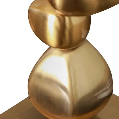 Gefertigt aus massivem Eisen, beeindruckt dieser Kerzenhalter mit seiner robusten Struktur und außergewöhnlichen Langlebigkeit. Die warm glänzende Oberfläche in einem edlen Bronzeton wurde sorgfältig von Hand bearbeitet, um einen luxuriösen und zeitlosen Charakter zu schaffen. Die organischen Formen der gestapelten Elemente erinnern an glatt geschliffene Steine, die eine natürliche und harmonische Ästhetik vermitteln. Dieses einzigartige Design vereint Funktionalität und Kunsthandwerk zu einem echten Blickfang.