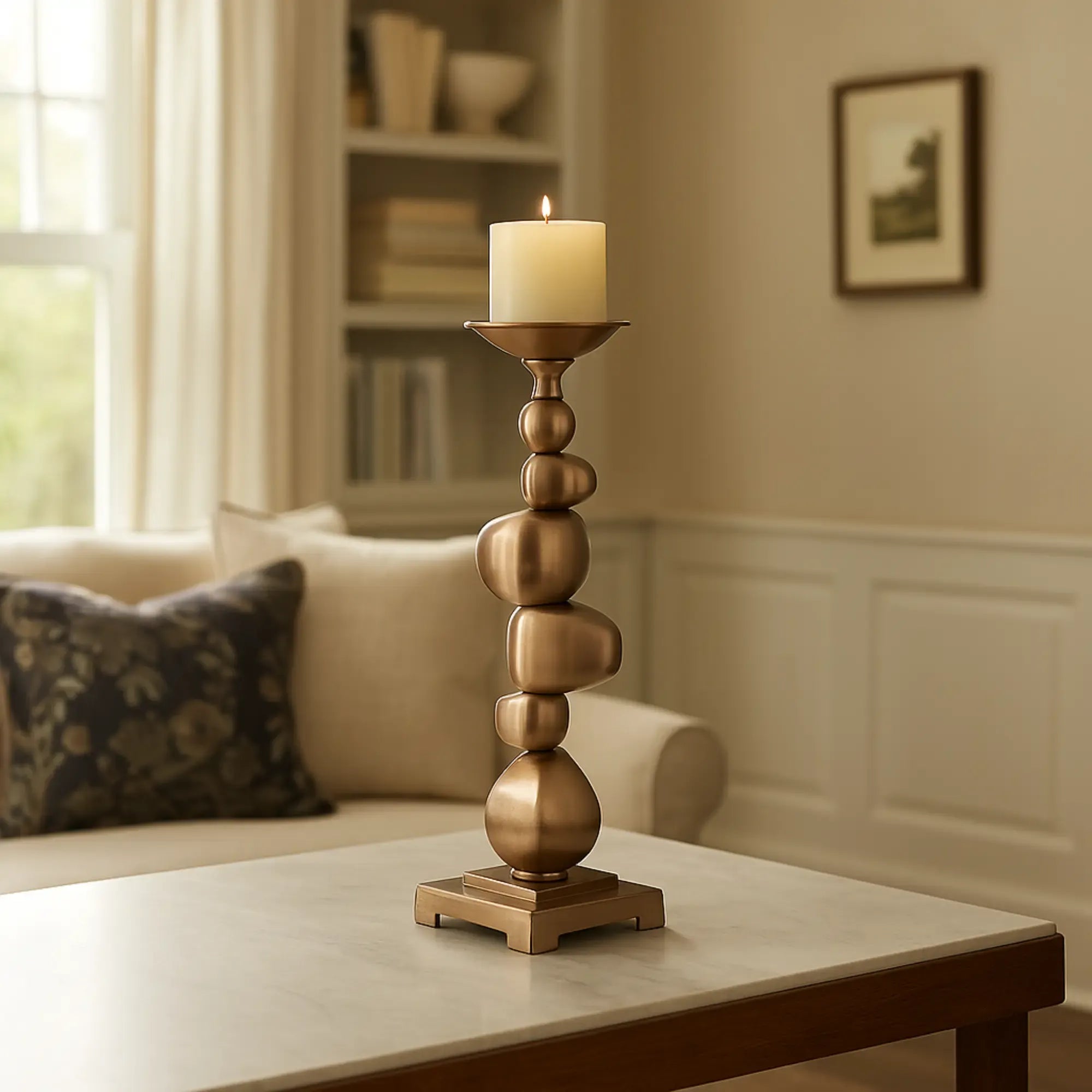 Der Kerzenständer und Leuchter „CantoGold“ vereint runde, organische Formen mit kunstvoller Linienführung und wird so zum skulpturalen Wohnaccessoire mit stilvoller Ausstrahlung. Inspiriert von balancierenden Steinen, bringt er Ruhe und Bewegung auf besondere Weise zusammen. Gefertigt aus hochwertigem Aluminium mit antik-goldener Bürstung, verleiht er Räumen Wärme und Exklusivität. Ob als einzelner Kerzenständer oder im Set kombiniert – „CantoGold“ bietet vielfältige Design-Ideen für den Esstisch, das Sideboard oder den Wohnbereich. In verschiedenen Größen erhältlich, eignet sich dieser moderne Kerzenhalter ideal zur stilvollen Dekoration im Wohnzimmer, Flur oder Schlafzimmer. Auch als Geschenkidee für Frauen, Mütter oder Omas ist er eine edle Wahl – ob zu Weihnachten, Geburtstag oder einfach als stilvolle Aufmerksamkeit. Ein luxuriöser Kerzenleuchter, der ästhetisches Design und funktionale Wohnkultur harmonisch vereint.