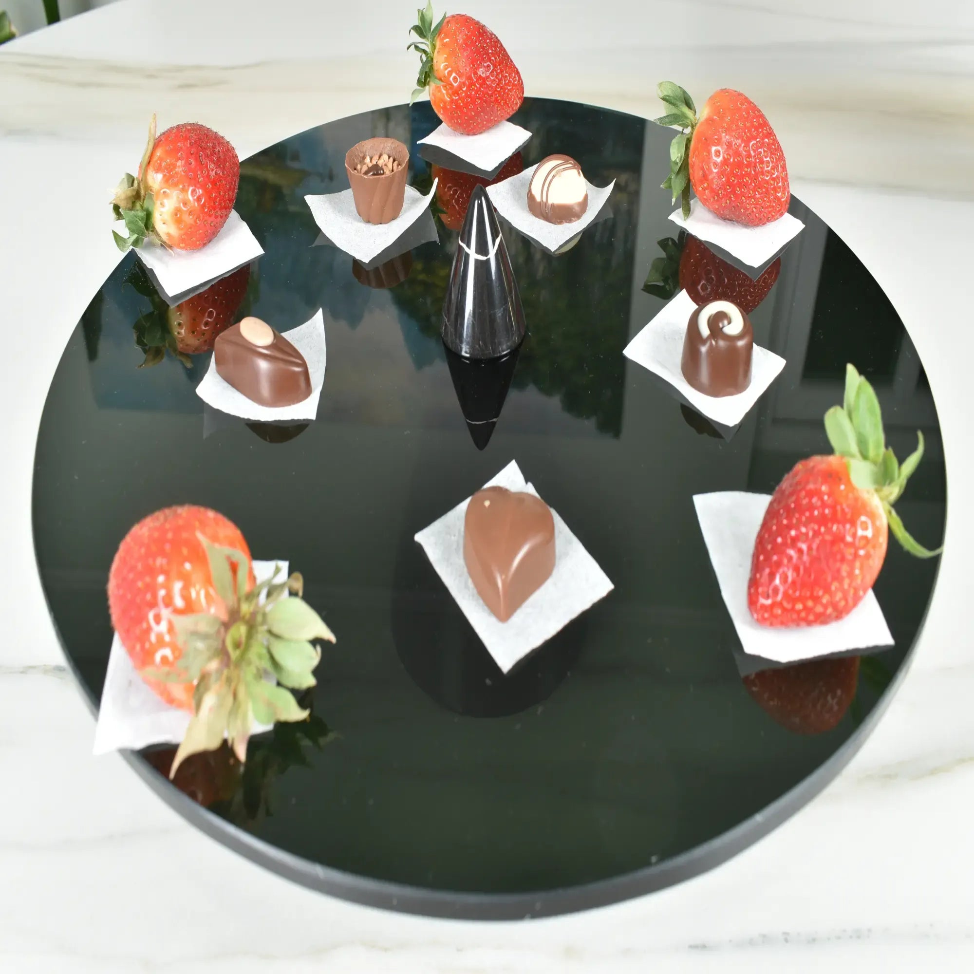 Ideal als Servierplatte, Tortenplatte, Dekorationsfläche oder stilvolle Ablage für Kerzen, Austern, Desserts oder Wohnaccessoires.