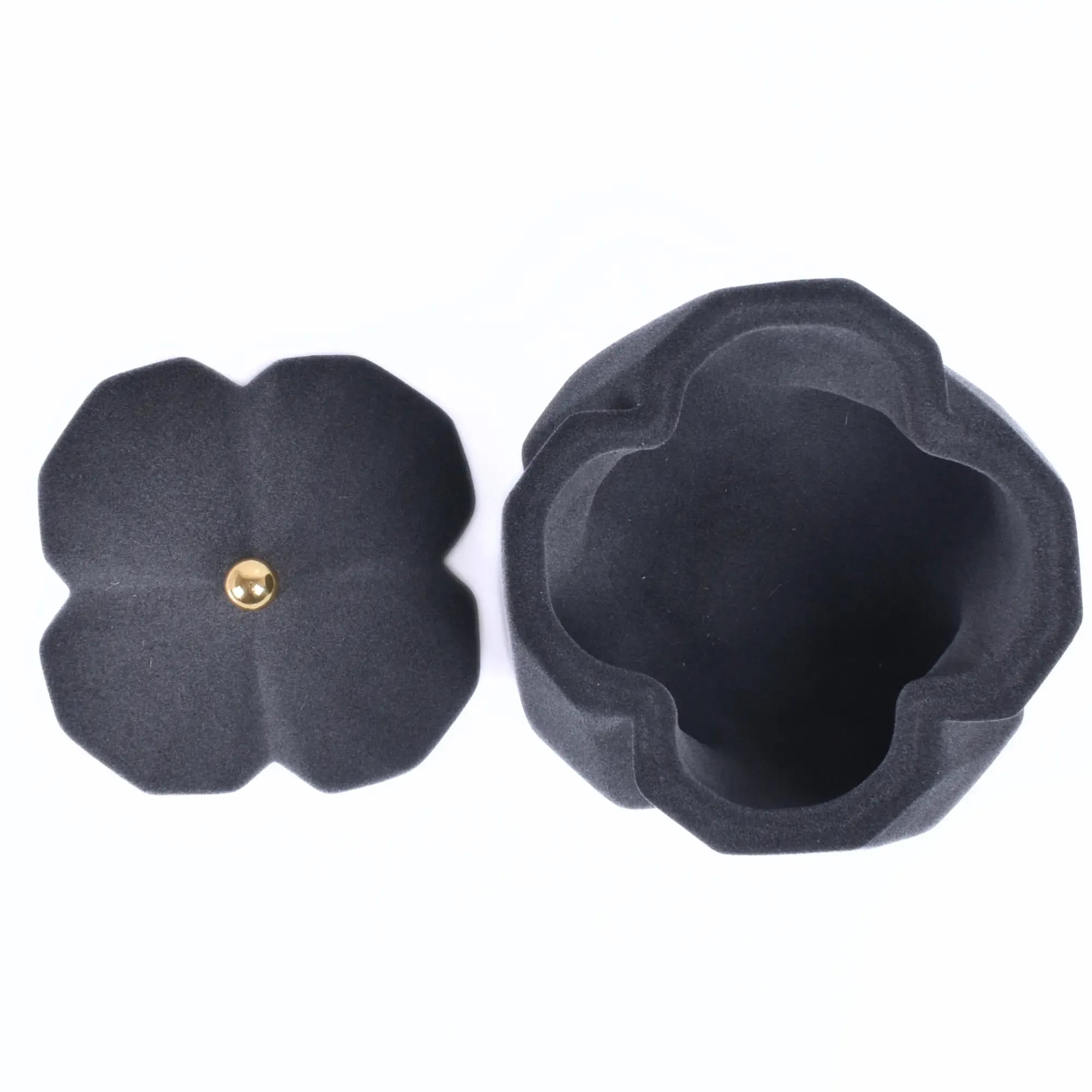 Schmuckkästchen - mit Deckel aus Samt - Blütenform Schmuckdose schöne Deko-Dose Velvet Bloom Samt, Beige & Dunkelgrau, gross und robust, im Stil: Elegant, Modern