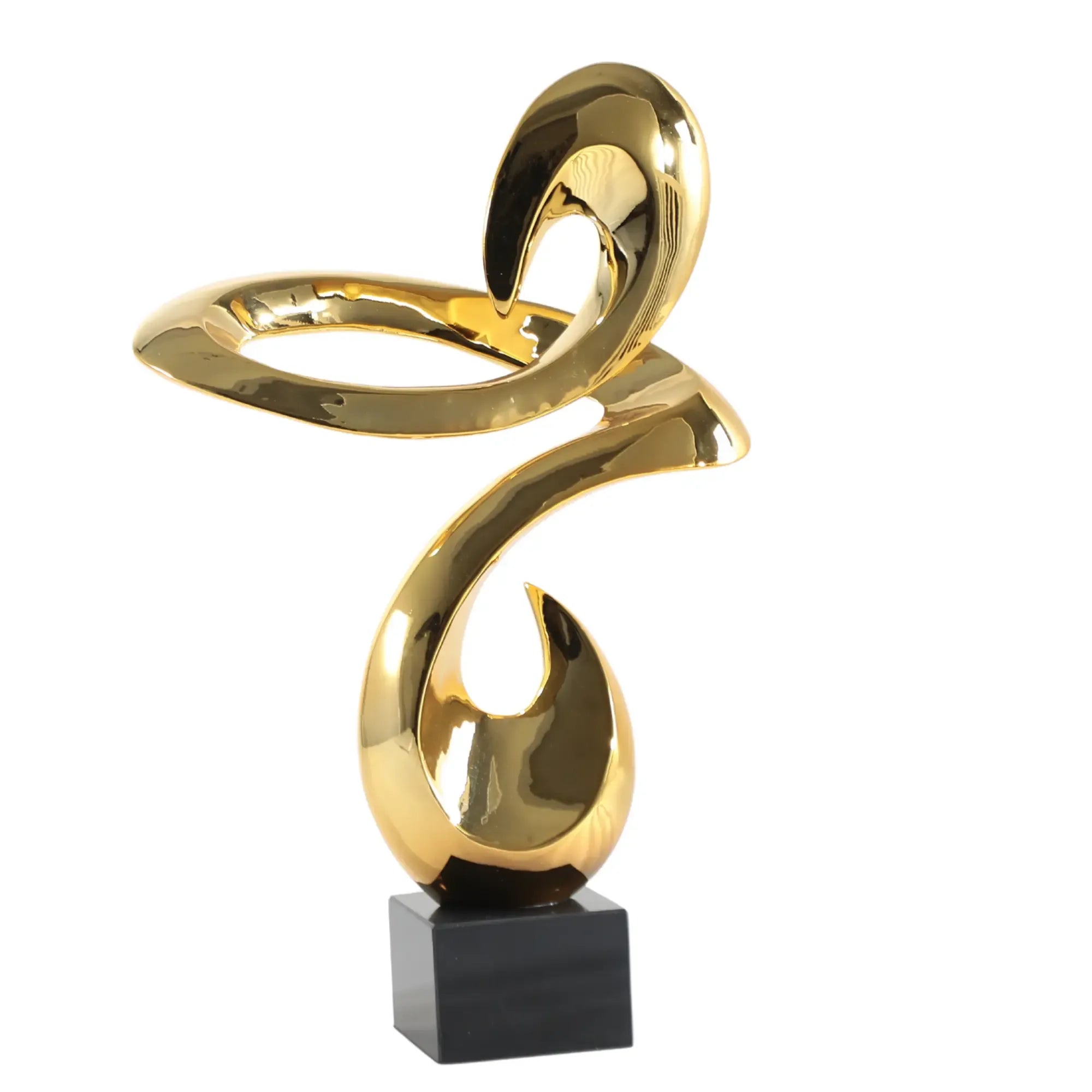 Die abstrakte Skulptur vereint dynamische Bewegung mit eleganter Ruhe – ein modernes Designobjekt, das kraftvolle Präsenz und stilvolle Zurückhaltung verbindet. Die geschwungene Form in glänzendem Gold-Finish symbolisiert Fluss, Freiheit und Kreativität. Mit einer beeindruckenden Höhe von 73 cm wirkt sie besonders ausdrucksstark in jedem Raum. Der massive, matt-schwarze Marmorsockel sorgt für Stabilität und bildet einen edlen Kontrast zur goldenen Oberfläche. Als Designskulptur, Auszeichnung oder modernes Kunstobjekt ist sie ein vielseitiger Blickfang für Wohnzimmer, Büros, Galerien oder Empfangsbereiche. Auch beliebt als Pokal, Trophäe oder Geschenk zur Einweihung oder für besondere Leistungen. Ein echtes Statement-Piece für Liebhaber zeitgenössischer Eleganz.
