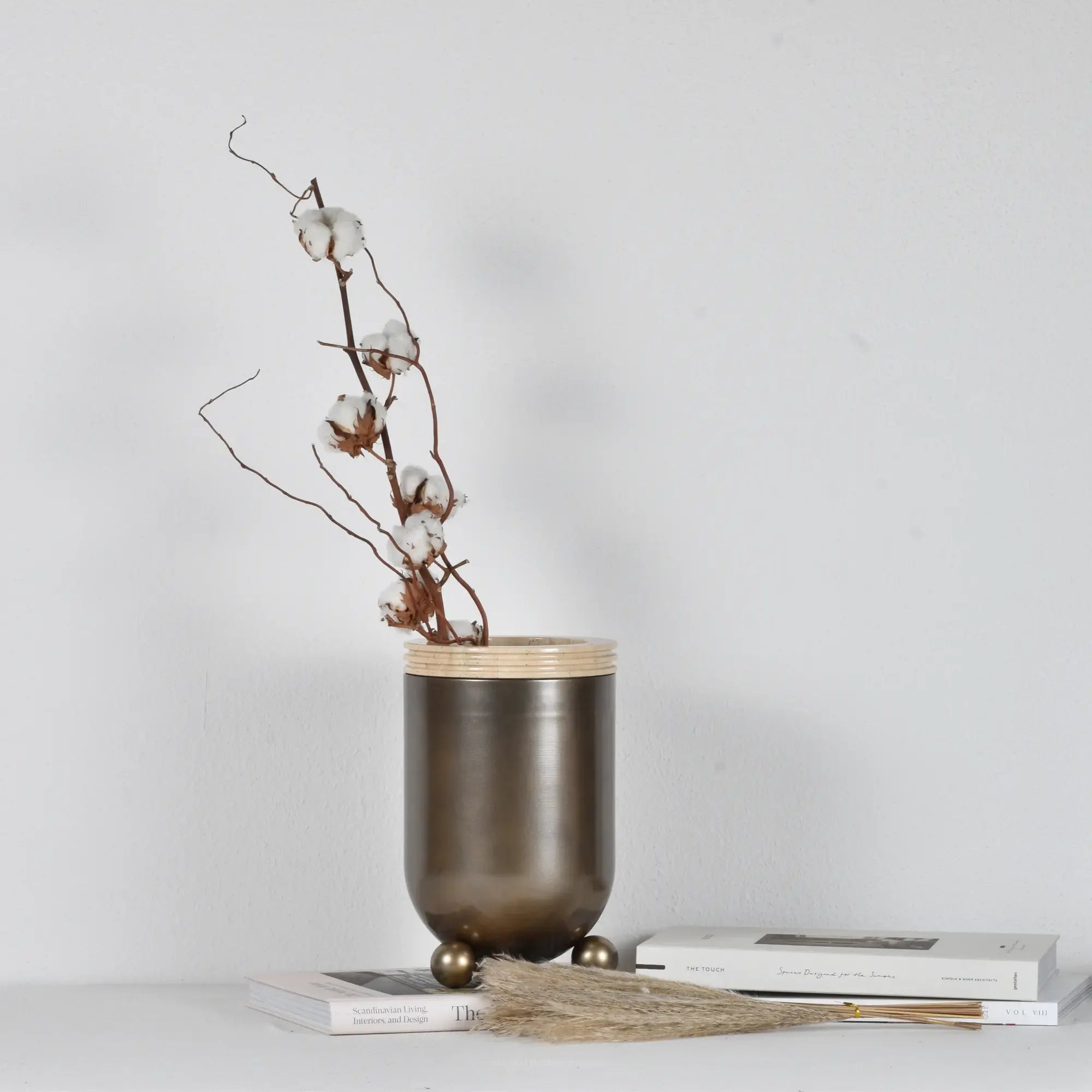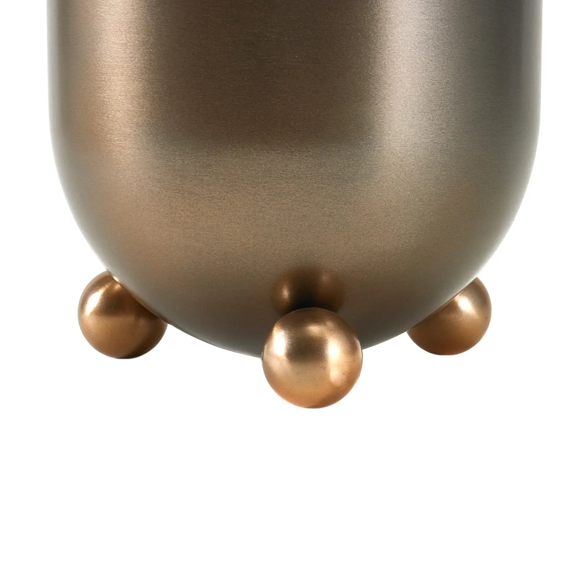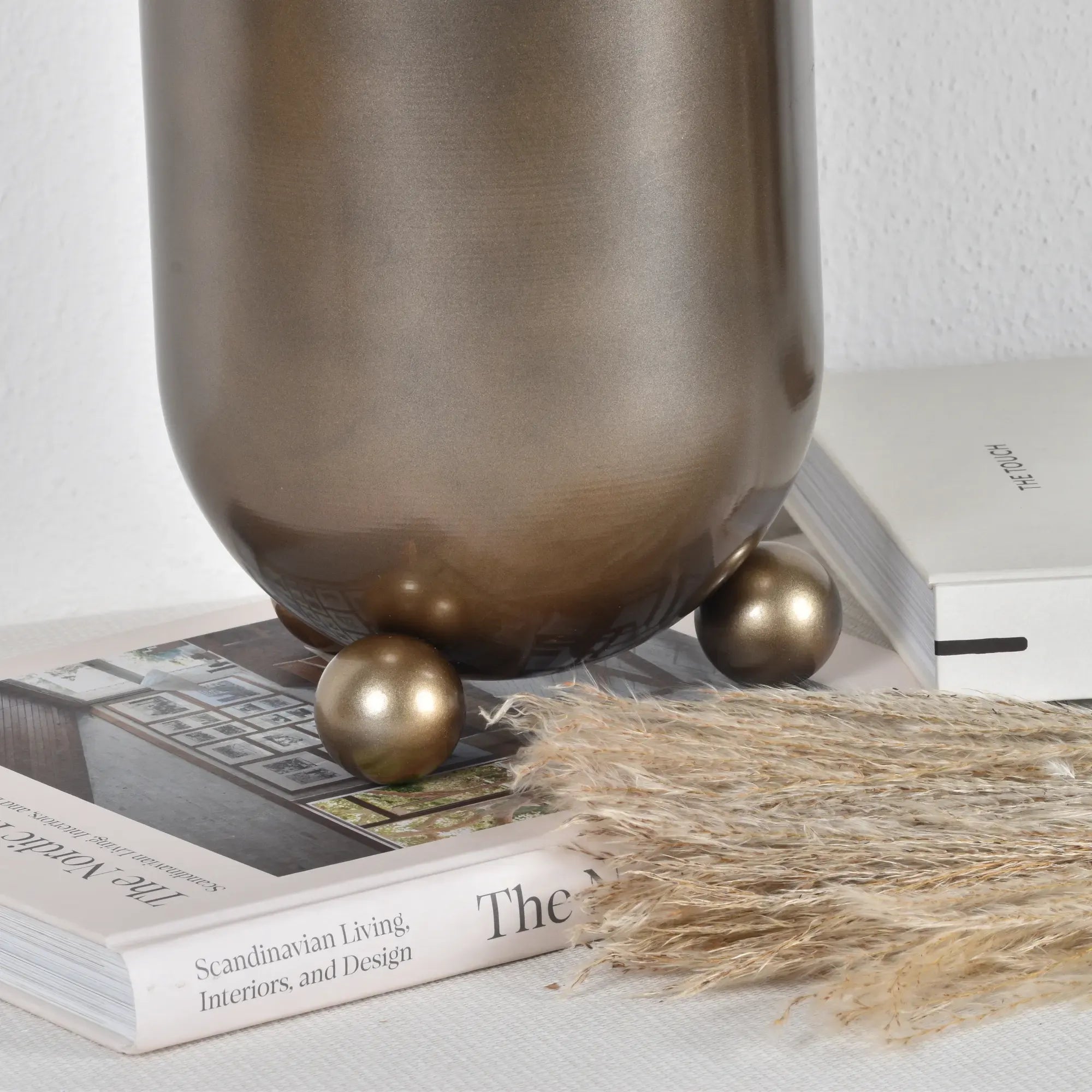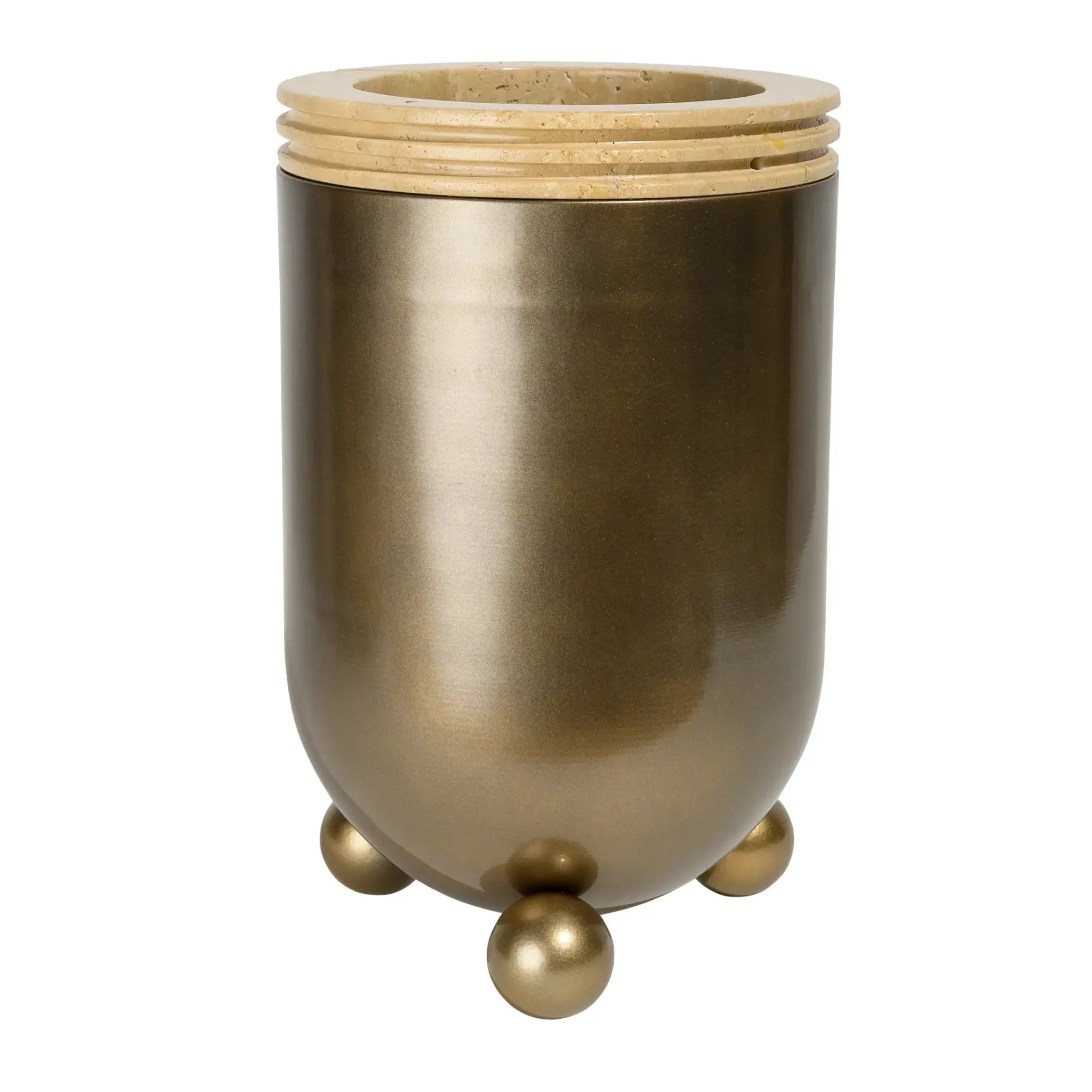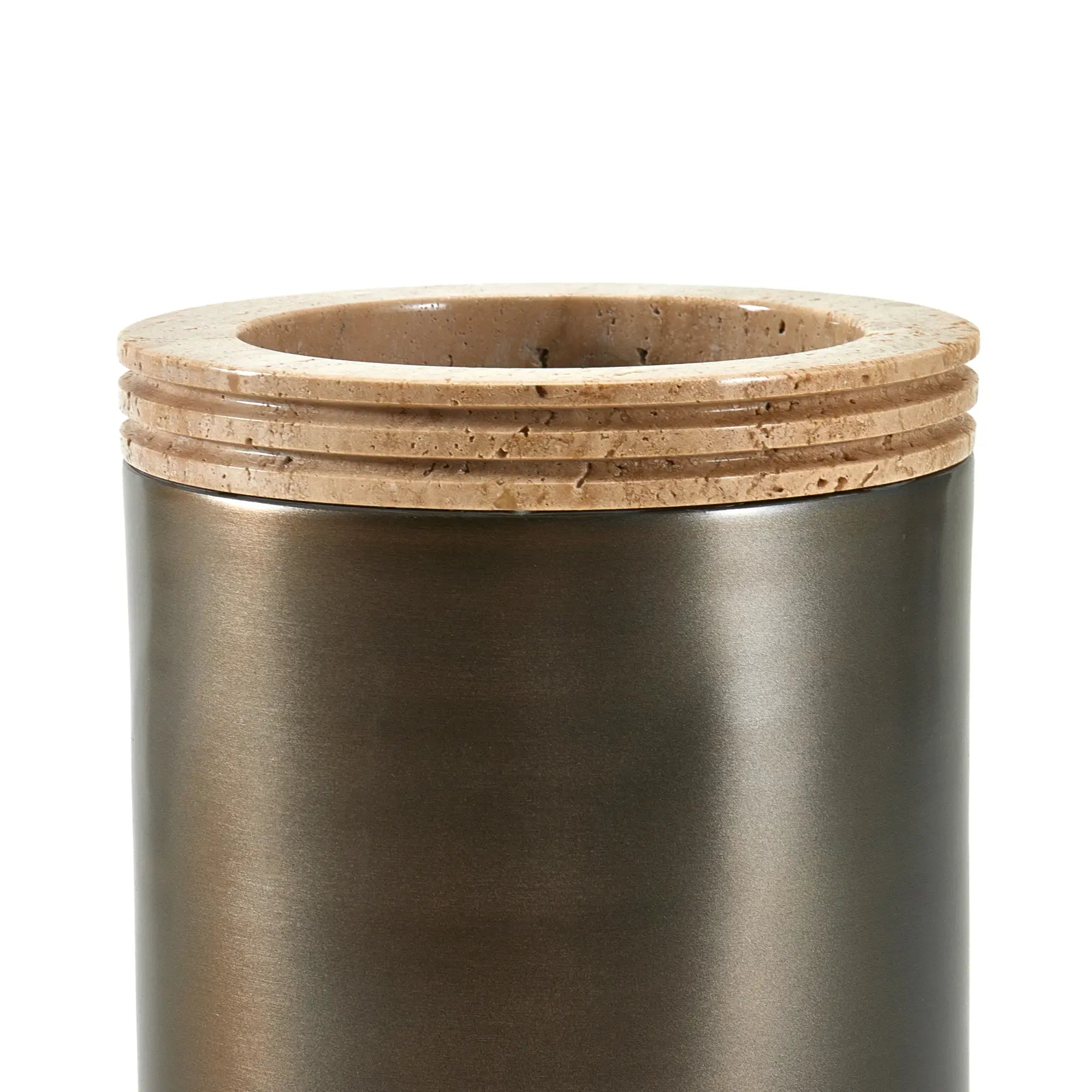 Dekovase - Bronzeoptik rund - Große Tischvase Trockenblumen-Vase Romano Edelstahl & Travertin, Beige & Bronze, gross und robust, vom stil Elegant & Antike
