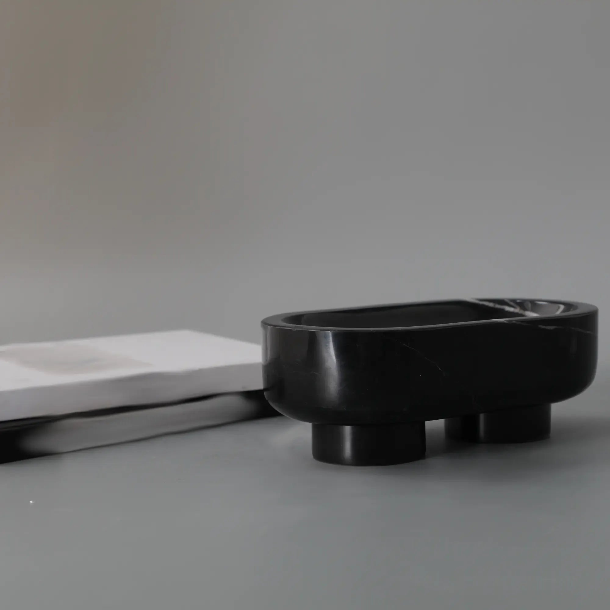 Tablett aus schwarzem Marmor, modernes Wohnaccessoire, skulpturales Design, luxuriöse Marmor-Dekoschale mit Standfuß, perfektes Geschenk für Designliebhaber oder zur Einweihung, hochwertig verarbeitetes Unikat.