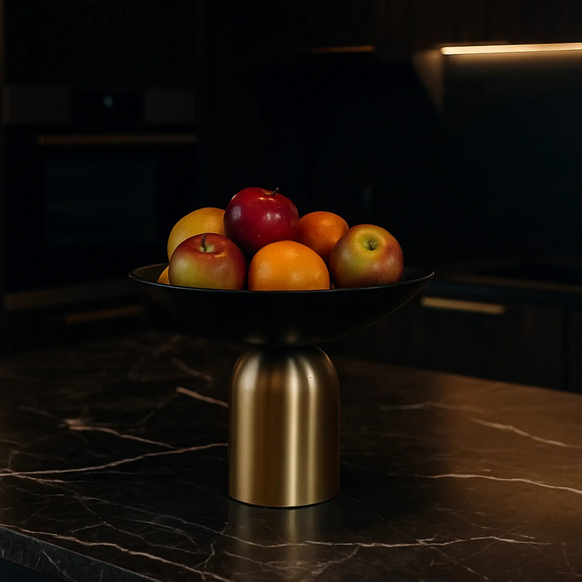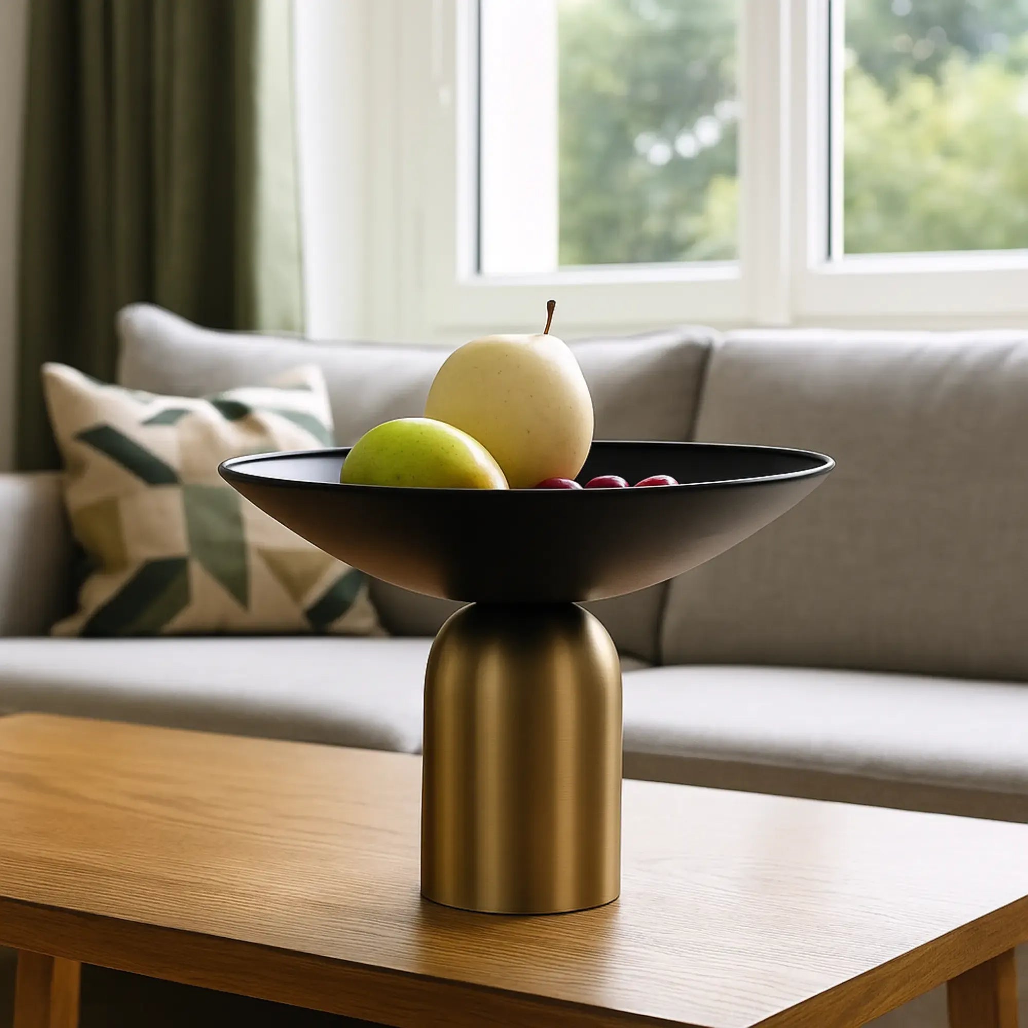 Schale: Aus feinem Edelstahl in mattem Schwarz – robust, stilvoll und modern.Gestell: Gefertigt aus hochwertigem Metall in Messingoptik, das mit seinem warmen Glanz einen edlen Kontrast setzt.