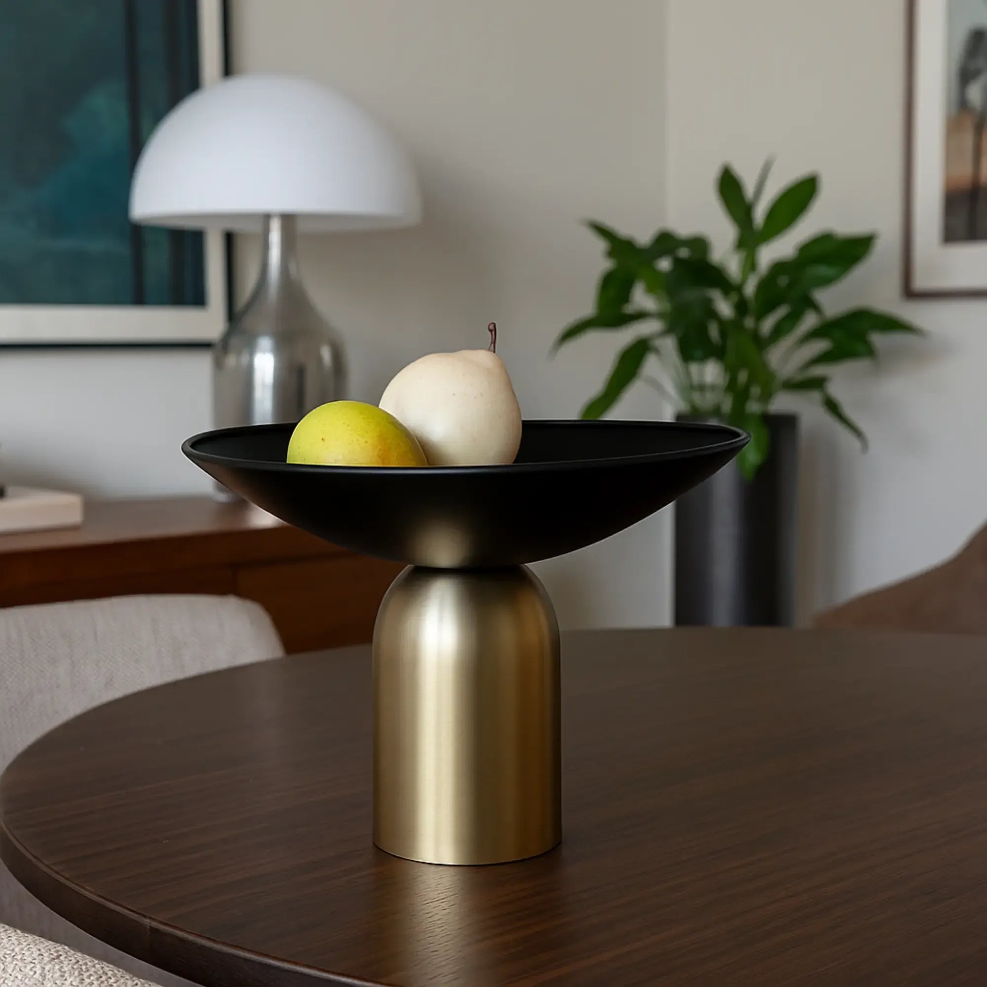 Die minimalistische Deko-Schale aus Edelstahl vereint modernes Design mit edler Ausstrahlung. Die mattschwarze Metallschale beeindruckt durch ihre klare Formensprache, während das gebürstete, messingfarbene Standgestell für einen eleganten Kontrast sorgt. Diese Design-Schale in Schwarz-Gold ist vielseitig einsetzbar – ob als Früchteschale, dekorative Ablage, Kerzenschale oder stilvolles Centerpiece. Dank ihrer sehr stabilen Konstruktion und großzügigen Form eignet sie sich ideal für den täglichen Einsatz sowie als Blickfang bei Designideen für verschiedene Feste oder saisonale Dekorationen. Sie passt perfekt in moderne Wohnräume, Flure, Esszimmer oder auf das Sideboard im Büro. Ihr zurückhaltender, zugleich hochwertiger Look macht sie zu einem zeitlosen Deko-Highlight, das sich sowohl in klassische als auch minimalistische Interieurs harmonisch einfügt. Eine stilvolle Wahl für alle, die elegantes Interior-Design mit Funktionalität verbinden möchten – auch als exklusives Geschenk in Schwarz-Gold ideal geeignet.