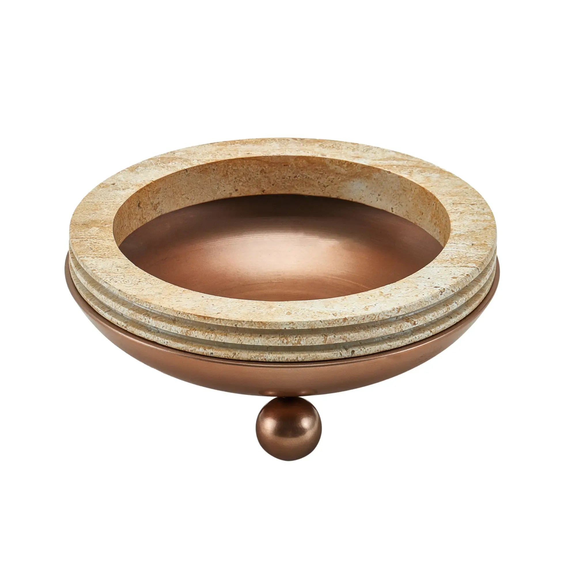 Die exklusive Designschale „Romano“ verbindet puristische Form mit edler Materialkomposition. Die Halbschale aus mattem Stahl in Antikbronze ruht auf drei kugelförmigen Füßen und erzeugt eine elegante, schwebende Optik. Der breite Rand aus beigem Kunstharz bildet einen spannenden Kontrast aus Struktur und Glätte – natürlich, massiv und stilvoll. Ob als Obstschale, Dekoschale, Schlüsselablage oder Tischschale – „Romano“ lässt sich vielseitig einsetzen und passt auf Sideboards, Esstische oder Konsolen. Besonders wirkungsvoll in Kombination mit Naturmaterialien, Trockenblumen, als Schale für Duftkerzen, Potpourri oder zur stilvollen Inszenierung von Wohnaccessoires. Diese Schale aus Travertin und Stahl begeistert Designliebhaber, die hochwertige Handarbeit, ästhetische Materialien und besondere Dekorationsideen für moderne Wohnräume schätzen. Auch als Geschenkidee für Gastgeber oder stilbewusste Menschen eine exklusive Wahl.