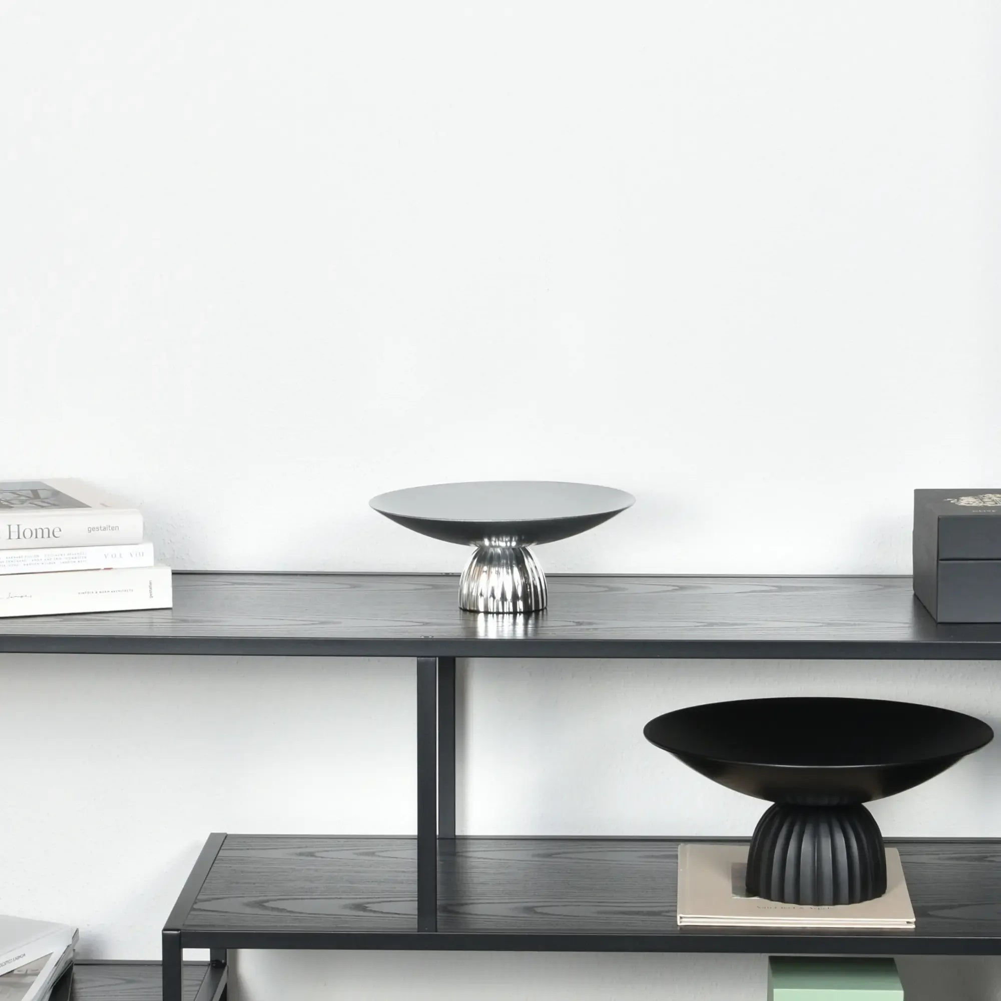 Gestell aus Premium-Kunststoff, handbemalt in edlem Bronzeton, Schwarz oder Silber mit Reliefstruktur in Kaktusform. Die Schale aus handbemaltem Stahl verleiht dem Objekt eine luxuriöse Ausstrahlung.