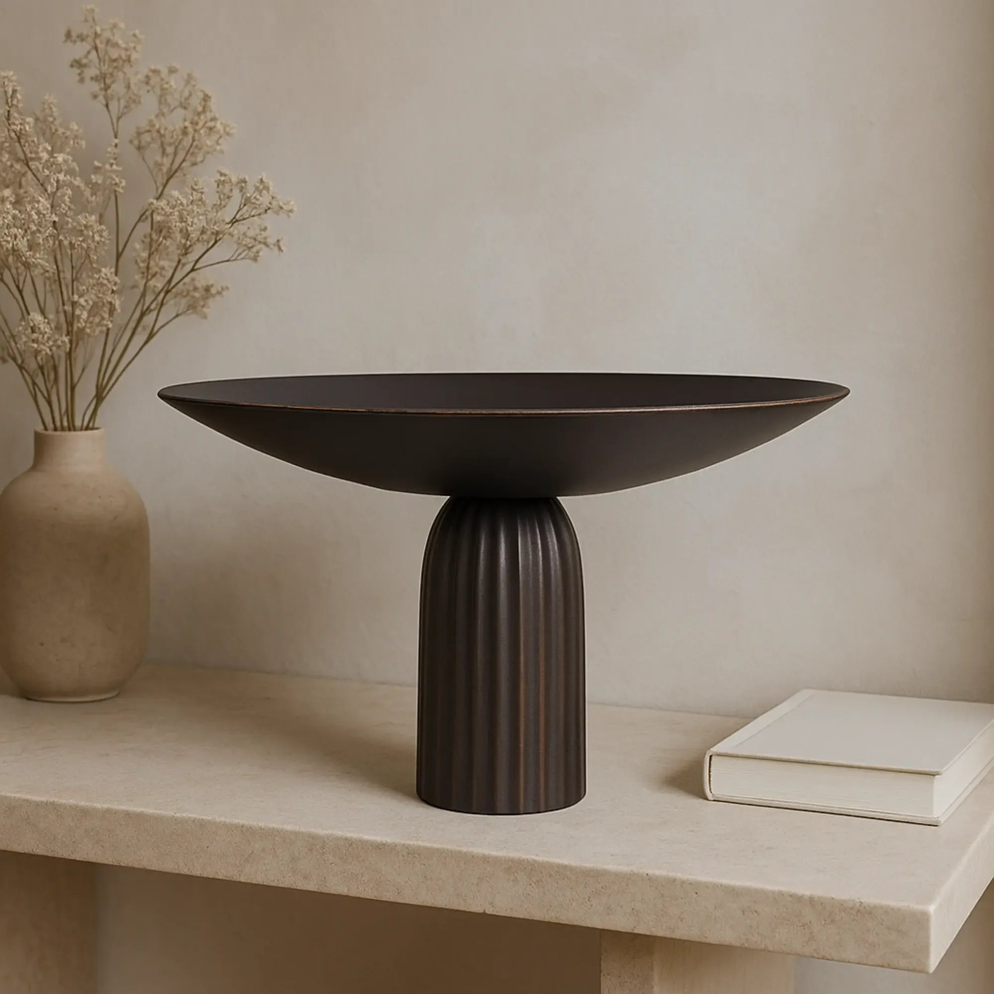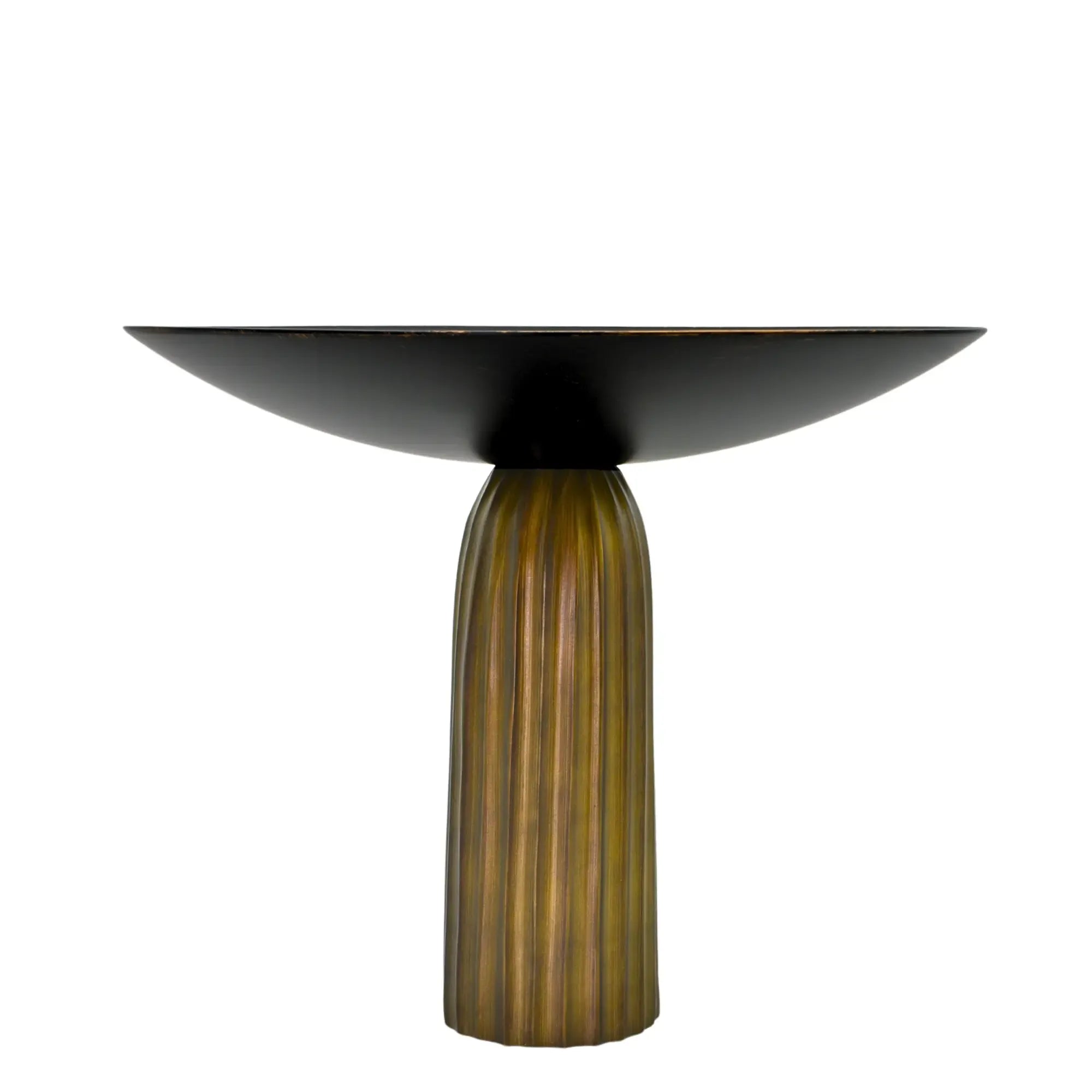 Modernes, skulpturales Design, inspiriert von organischen Kaktusformen. Der starke Kontrast aus schwarzer Schale und bronzefarbenem Fuß sorgt für eine ausdrucksstarke, elegante Wirkung.