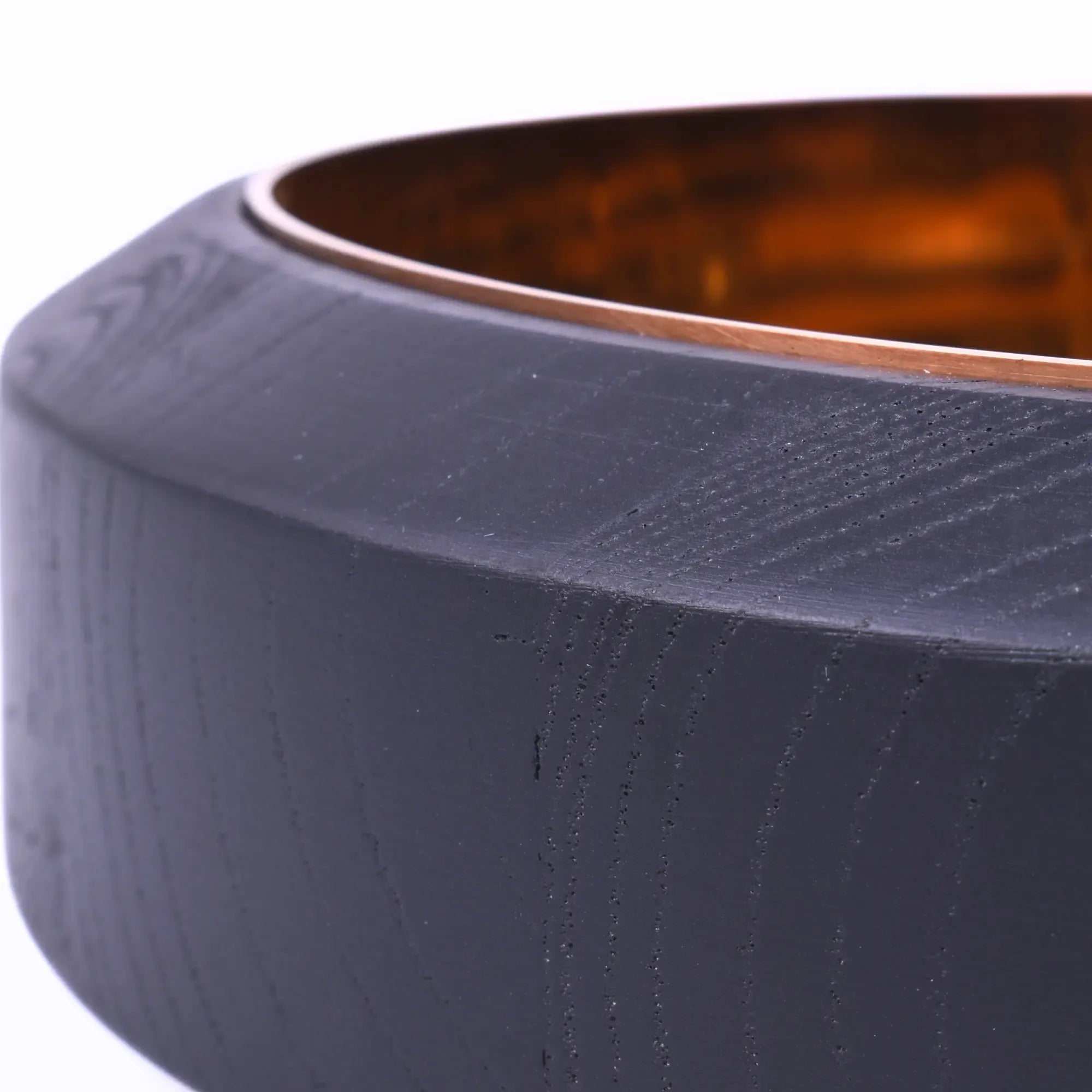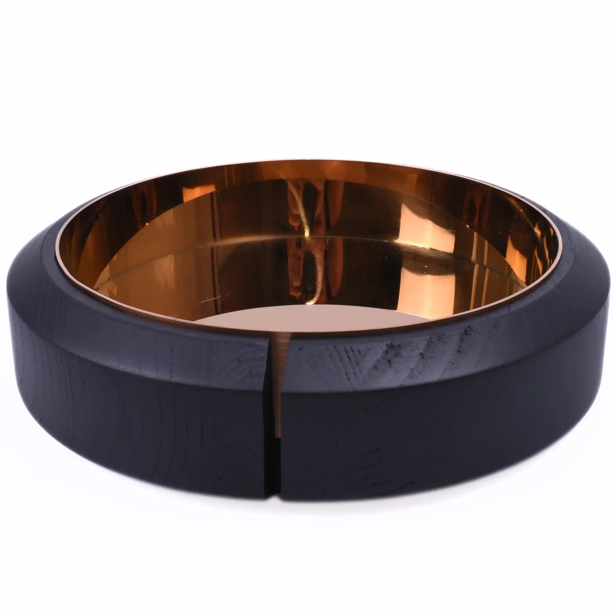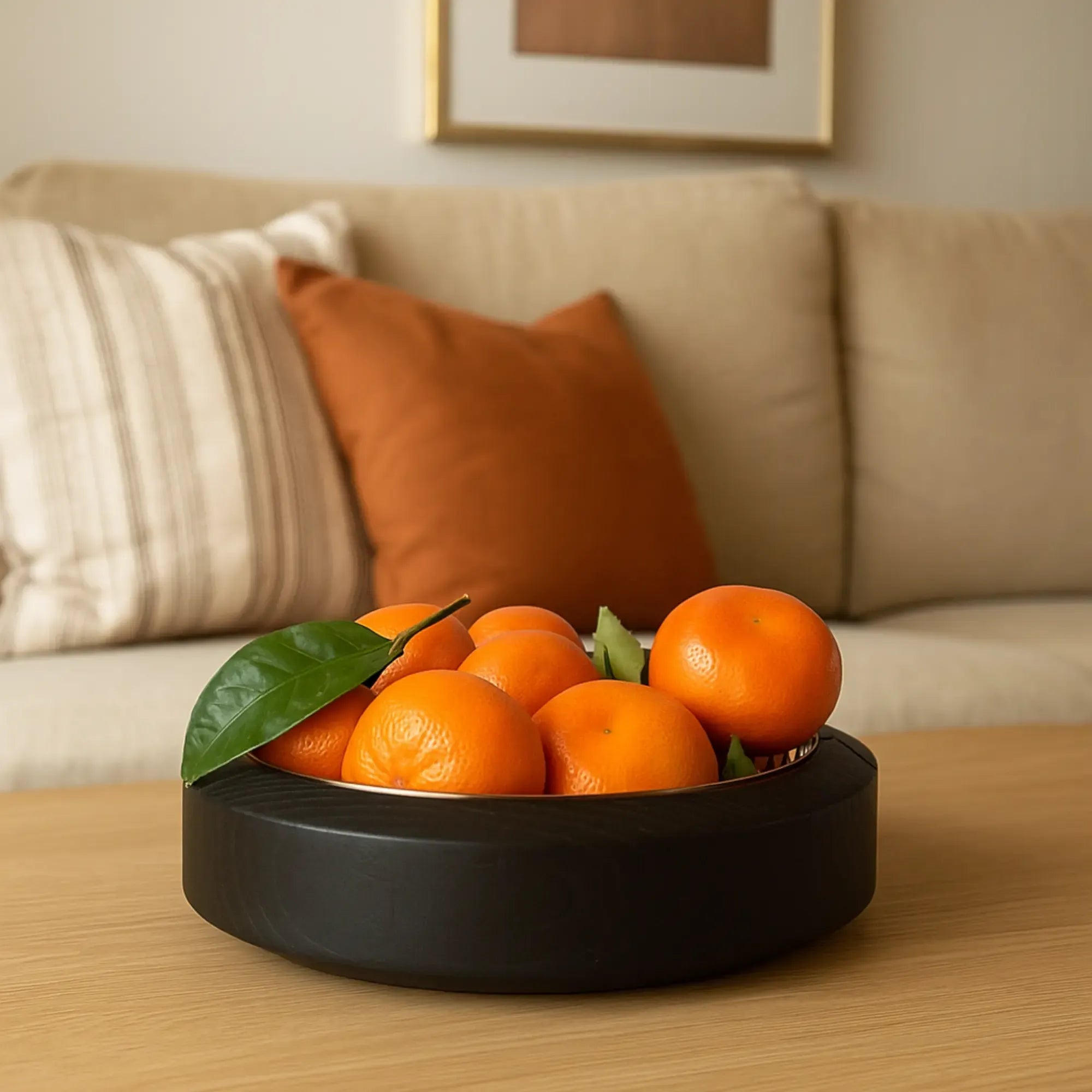 Die runde Schale aus massivem Holz in edler Wenge-Farbe kombiniert natürliche Eleganz mit einem luxuriösen Goldakzent im Inneren. Die matt-schwarze Außenseite trifft auf eine glänzend goldene Innenablage, wodurch ein stilvoller Kontrast entsteht – perfekt für Liebhaber von Minimalismus und Luxusdesign. Dank ihrer klaren Form ist sie ideal als Dekoschale, Kerzenschale, oder zum stilvollen Arrangieren von Schmuck, Schlüsseln oder Obst. Diese edle Schale hilft dabei, kreative Dekorationsideen umzusetzen und den eigenen Stil elegant zu unterstreichen. Ob auf dem Sideboard, im Wohnzimmer, Flur, Büro oder als Designobjekt auf einer Konsole – die Schale setzt in jedem Raum ein dezentes, aber elegantes Statement. Eine perfekte Wahl für alle, die moderne Wohnaccessoires, edle Materialien und zeitloses Interior-Design schätzen – auch als stilvolle Geschenkidee in Schwarz-Gold.