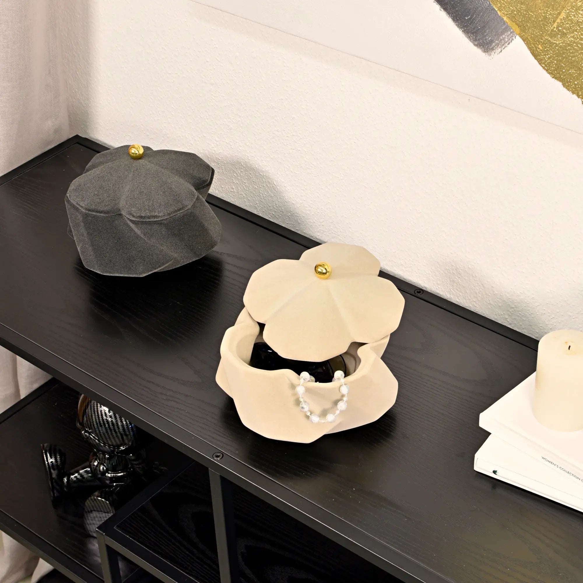 Schmuckkästchen - mit Deckel aus Samt - Blütenform Schmuckdose schöne Deko-Dose Velvet Bloom Samt, Beige & Dunkelgrau, gross und robust, vom stil Elegant & Modern
