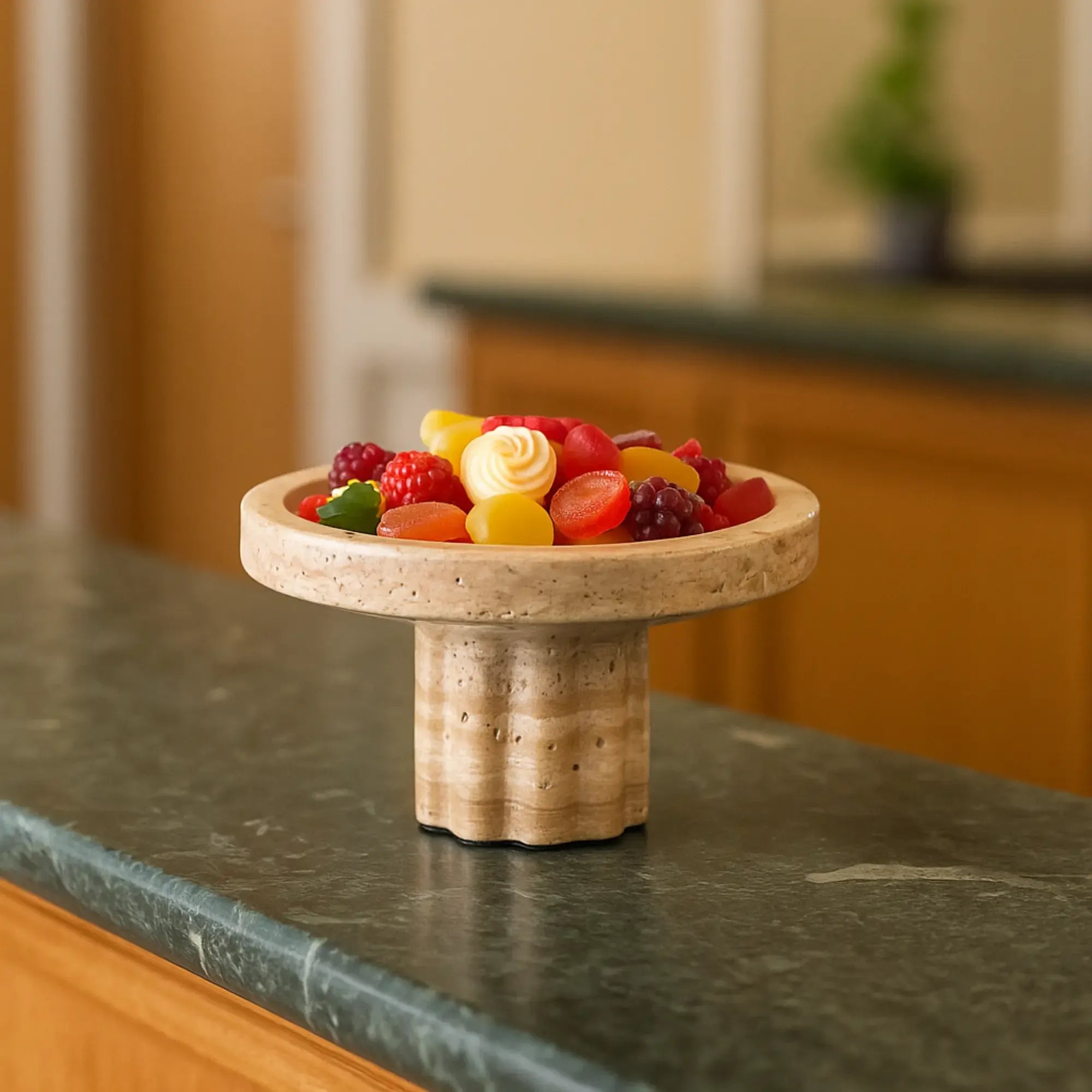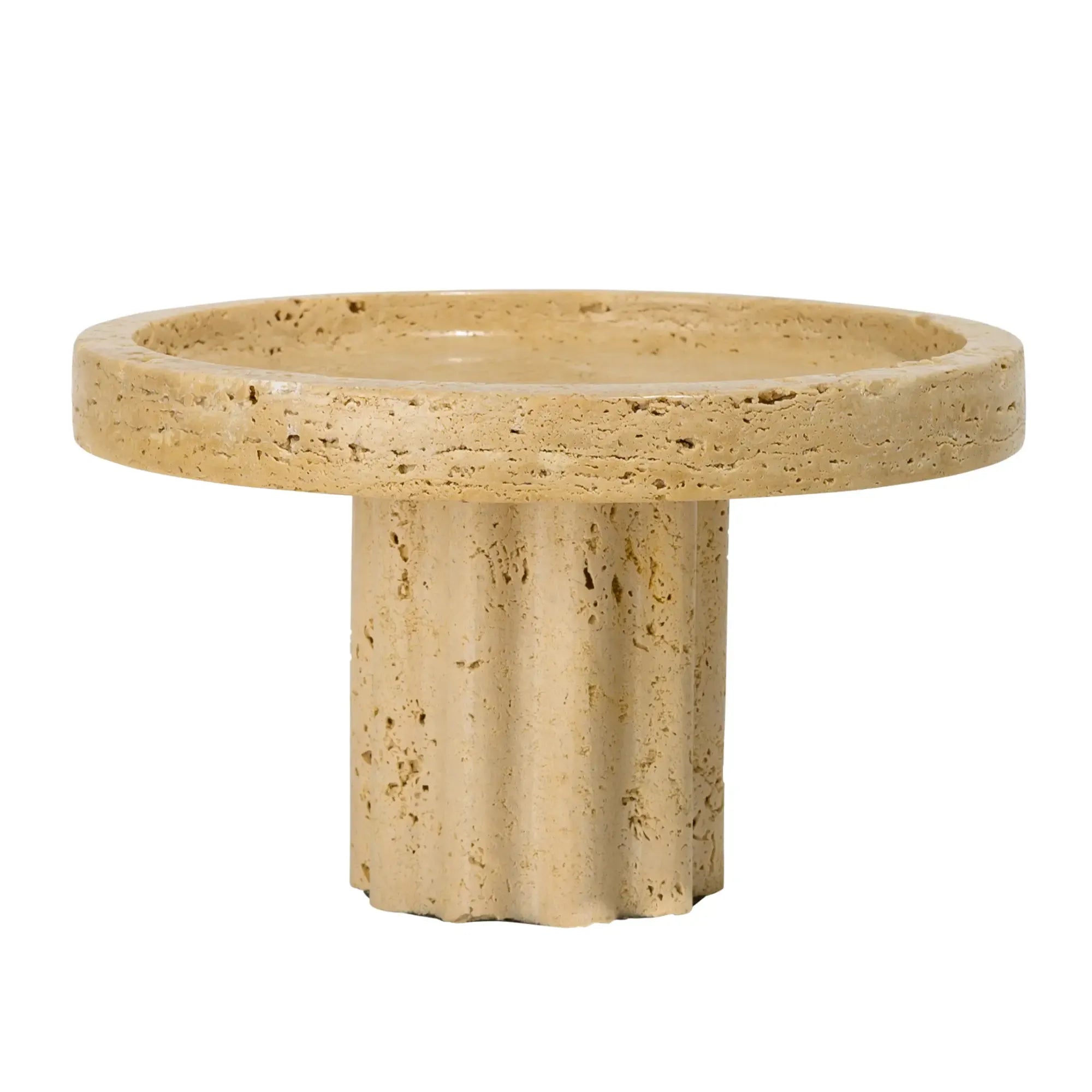 Travertin Dekoschale, naturstein Tortenplatte, römisches Designobjekt, mediterrane Schale, handgefertigte Sockelschale – ein wertiges Geschenk zur Einweihung oder für Liebhaber edler Naturmaterialien.