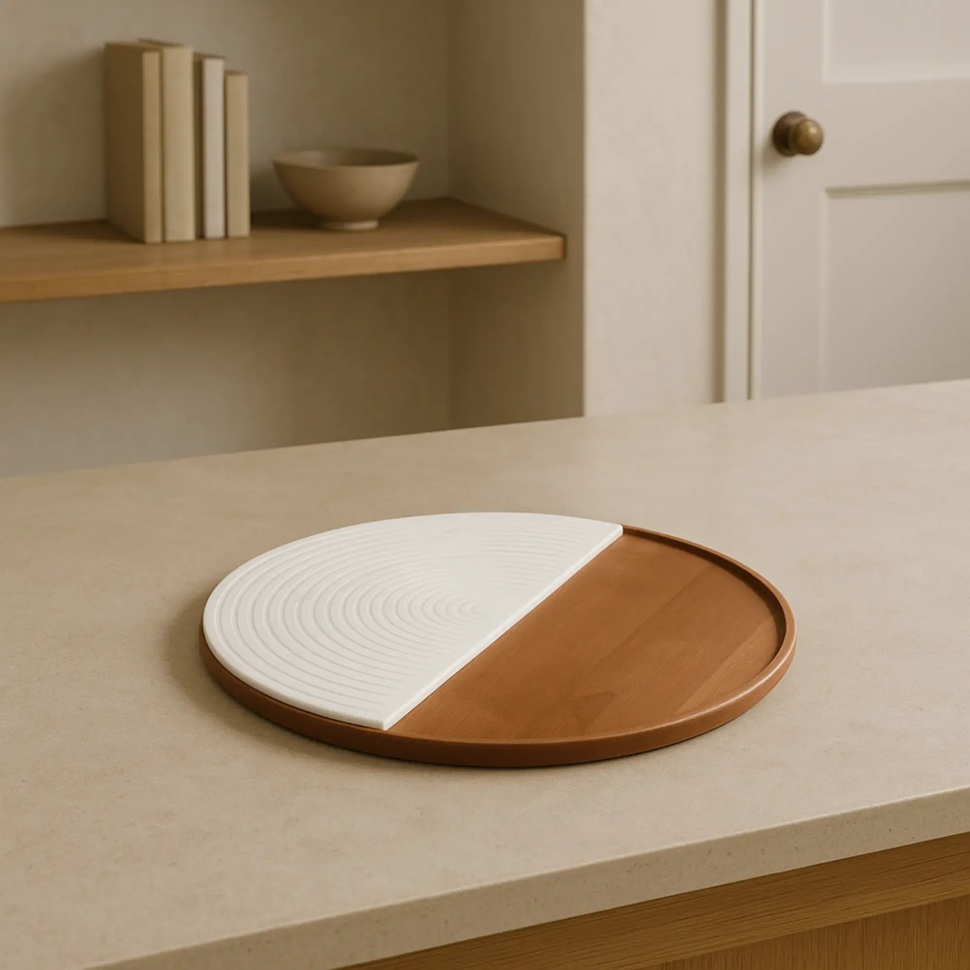 Andere Bezeichnungen und Eigenschaften: Rundes-Tablett, Serviertablett, Tablett, Holzdeko, Marmordeko, Küche, Wohnzimmer