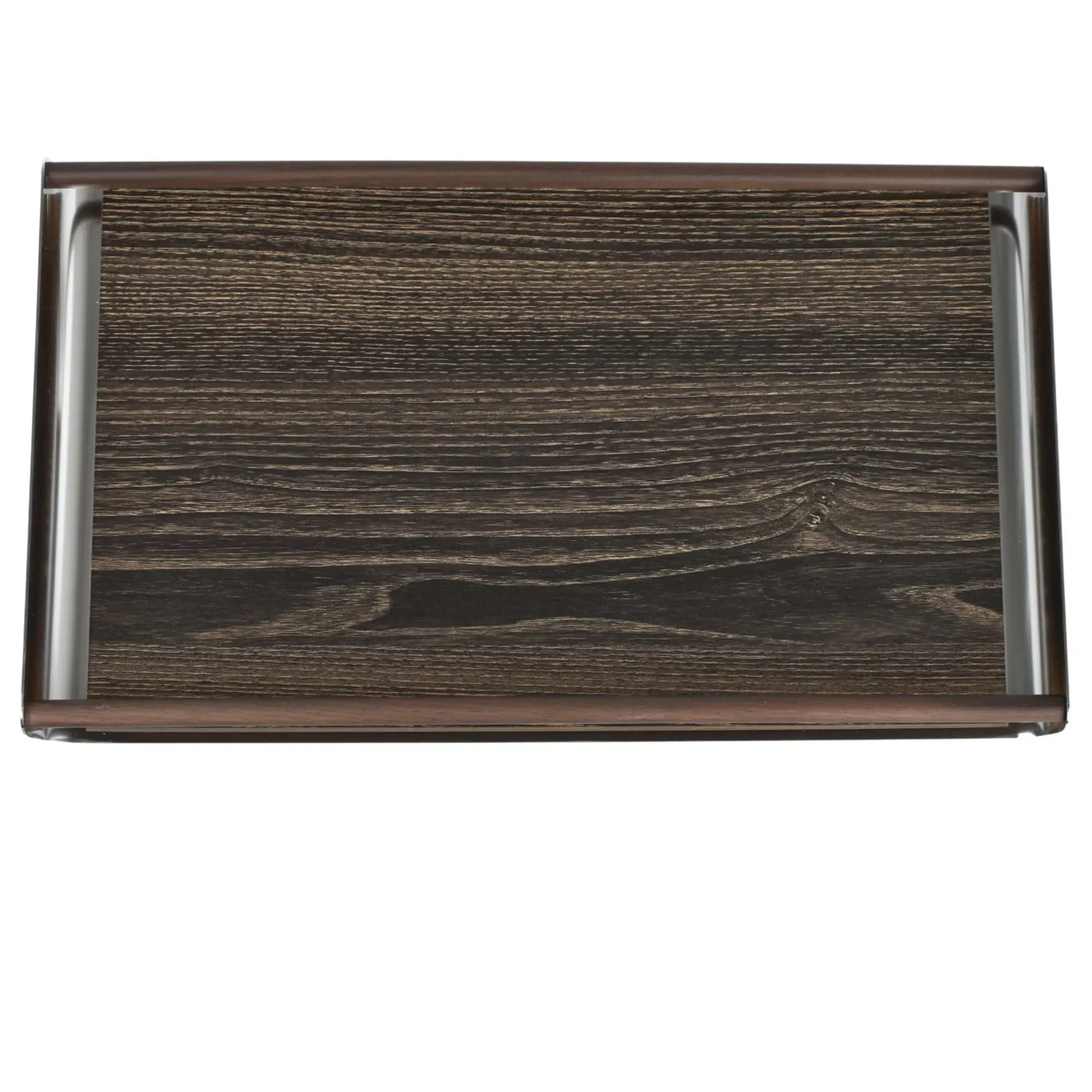 Serviertablett - rechteckig mit Holzgriffen - Holz-Edelstahltablett Deko-Tablett Holzmaserung Tray Perfecta Holz & Edelstahl, Grau & Silber & Braun, gross und robust, vom stil Zeitlos & Minimalistisch
