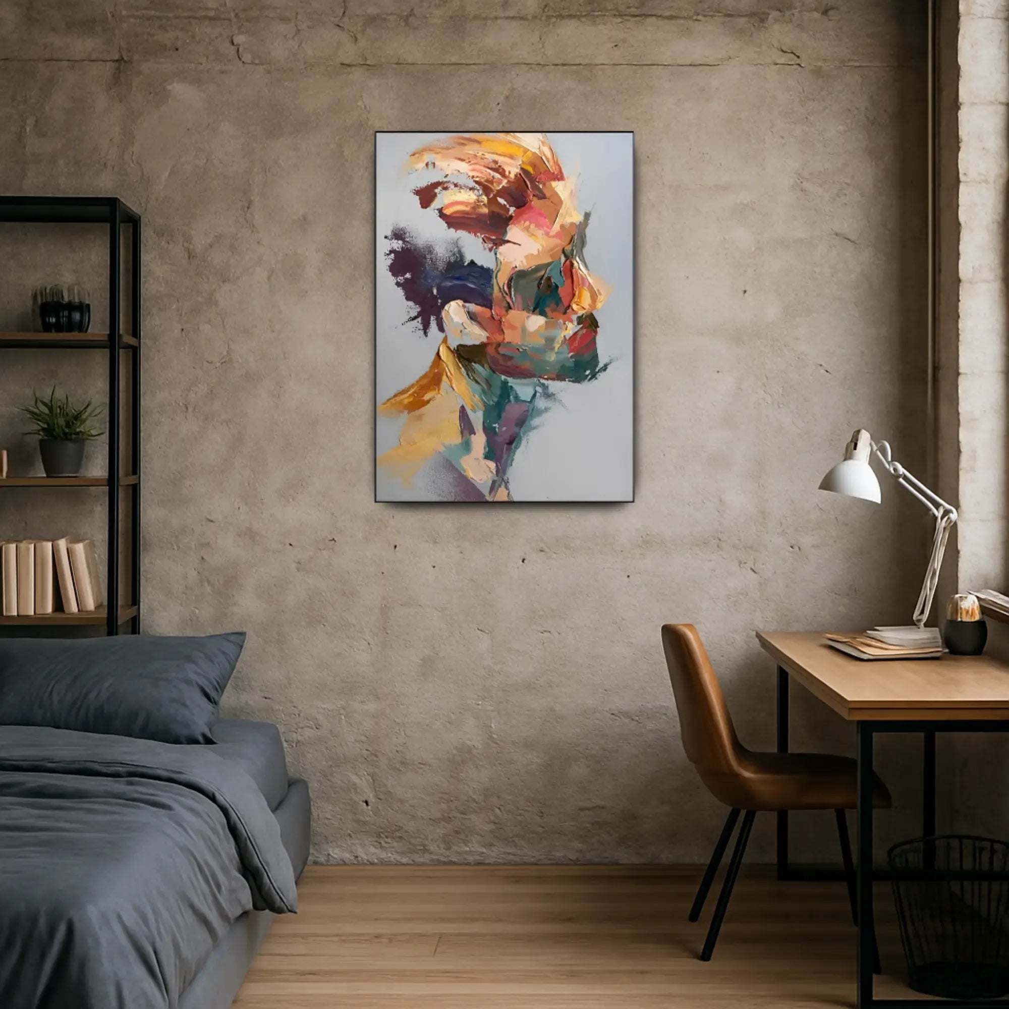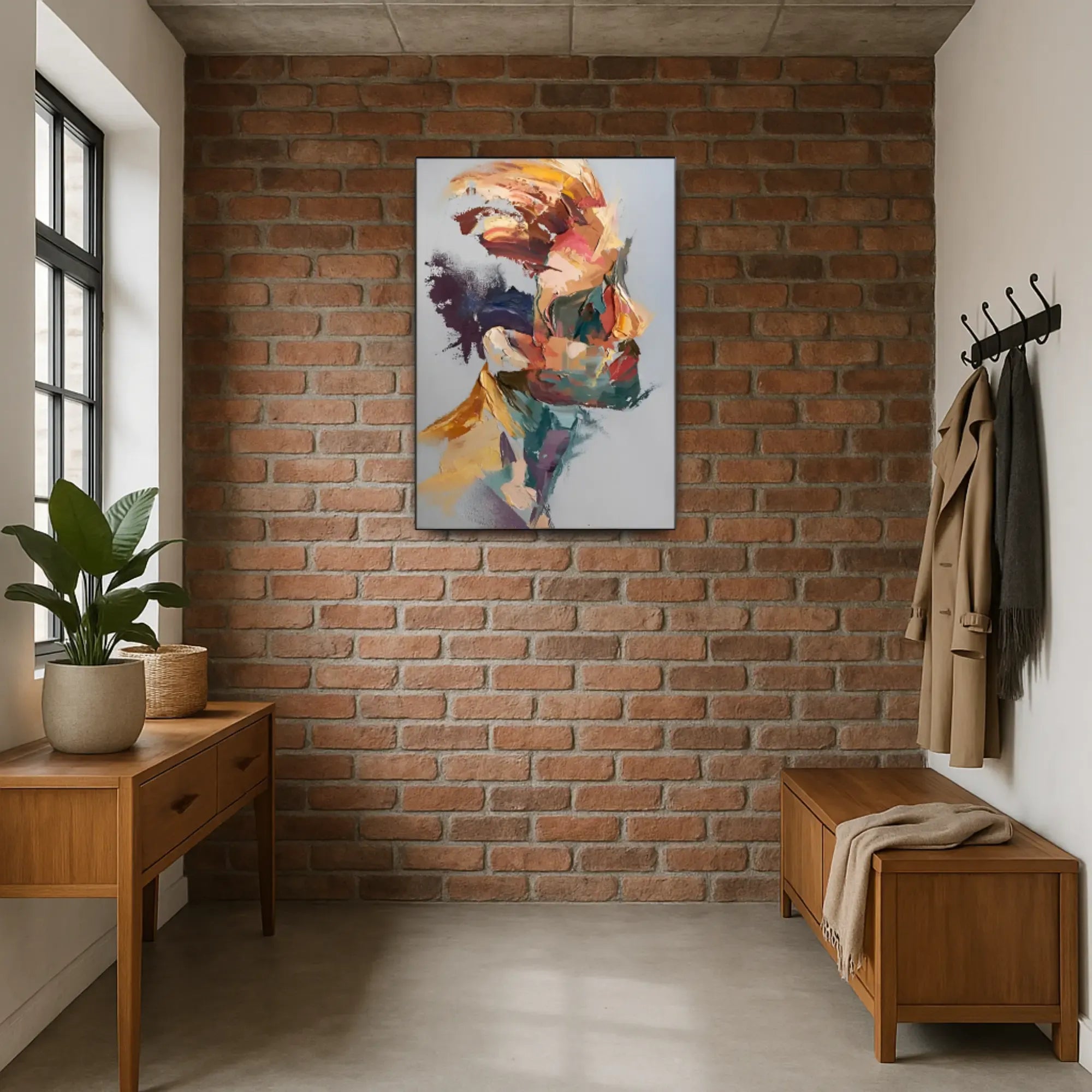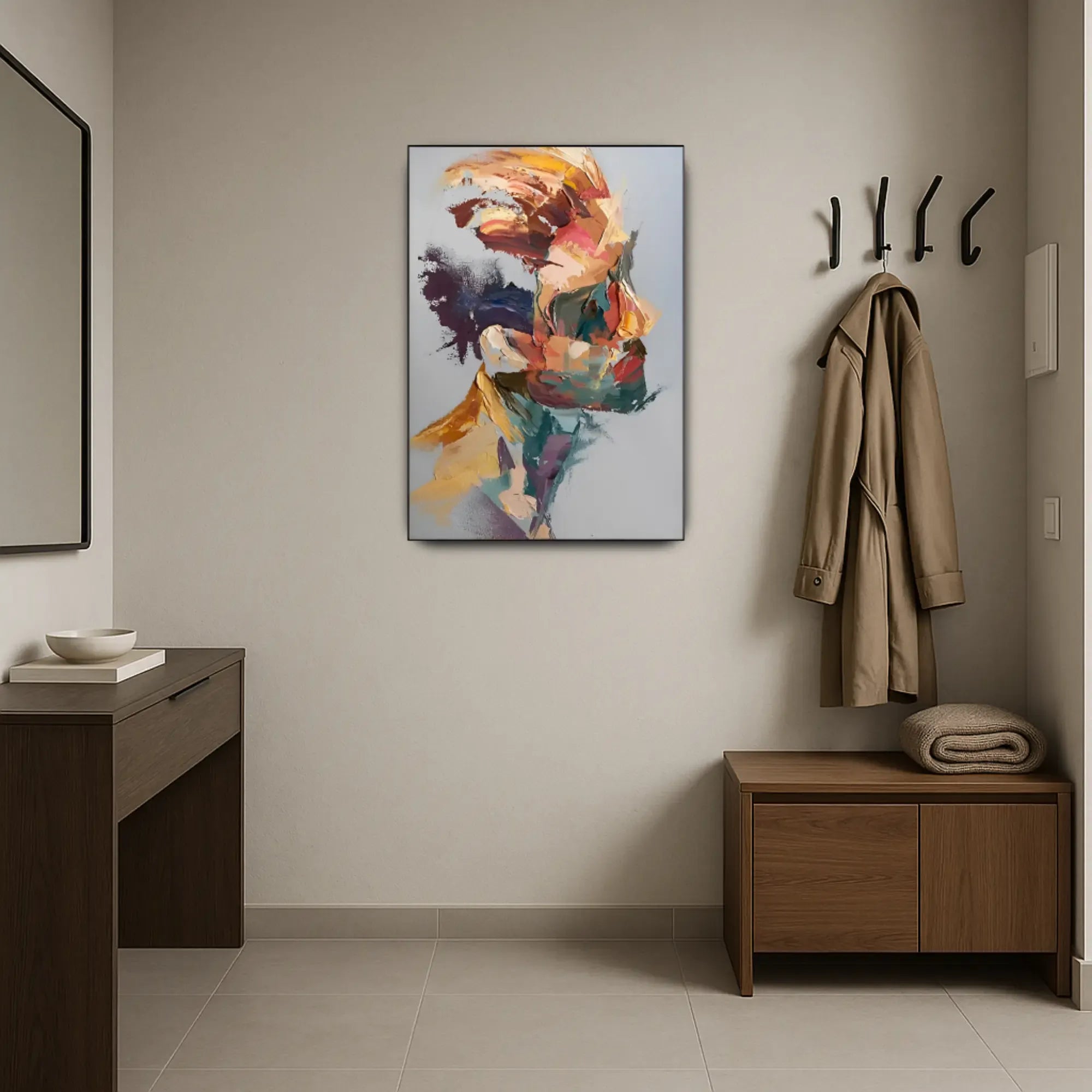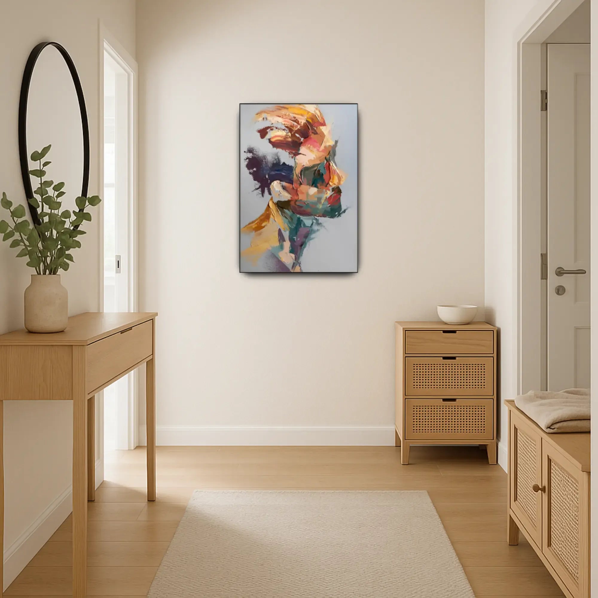 Bedeutung:„Innere Stimme“ ist kein klassisches Porträt – es ist ein Spiegel innerer Bewegtheit. Die Gesichtszüge brechen auf, verschwimmen, verbinden sich mit Farbe und Rhythmus. Jeder Pinselstrich trägt Gefühl, jeder Farbkontrast ein Gedankensplitter. Das Werk erzählt von Identität, Wandel und innerer Energie – kraftvoll, mutig, tief.