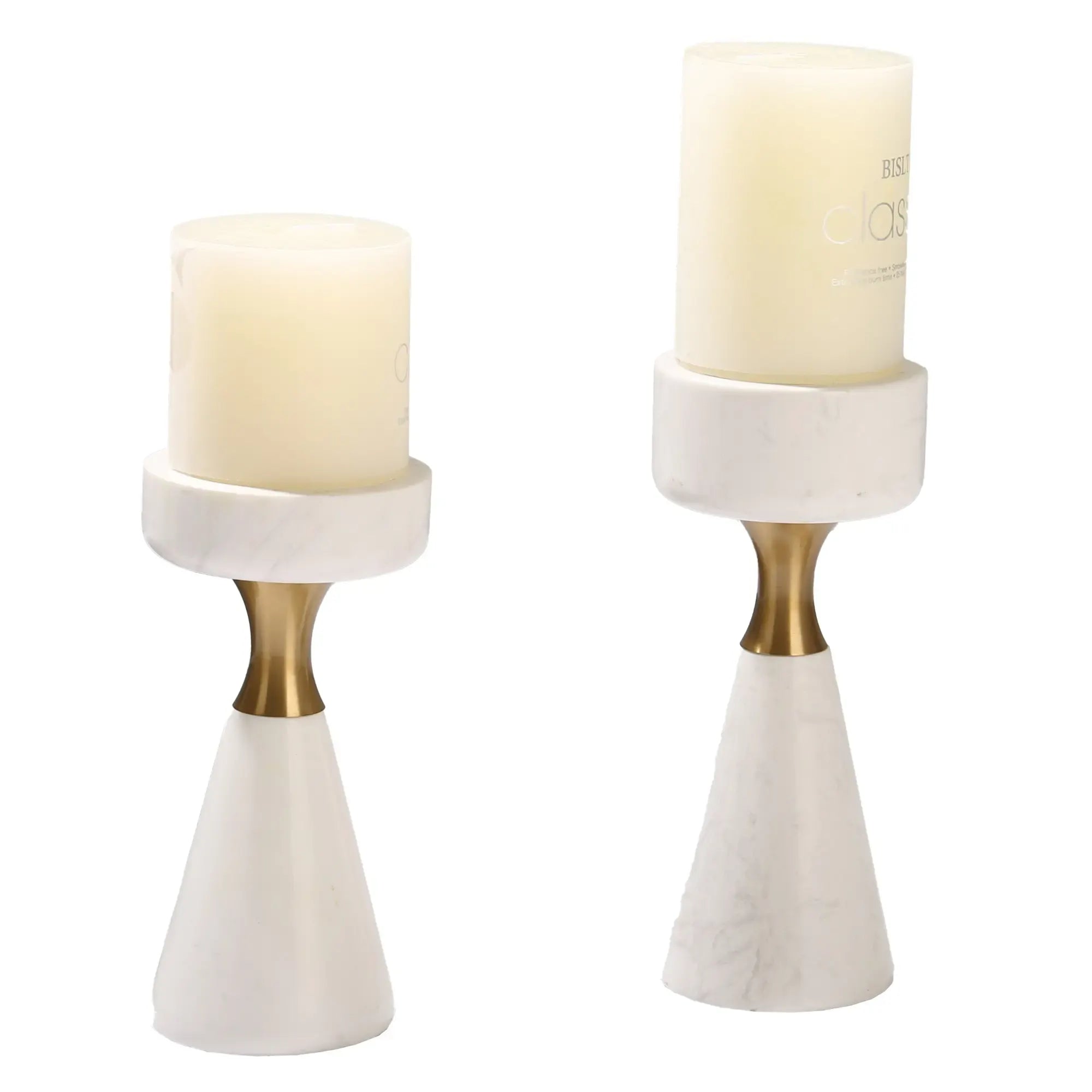 Kerzenständer - für Blockkerzen - Marmor-Kerzenhatler mit Goldakzent modern Tischdeko Lumière Aluminium & Marmor, Gold & Weiss, gross und robust, vom stil Elegant & Modern
