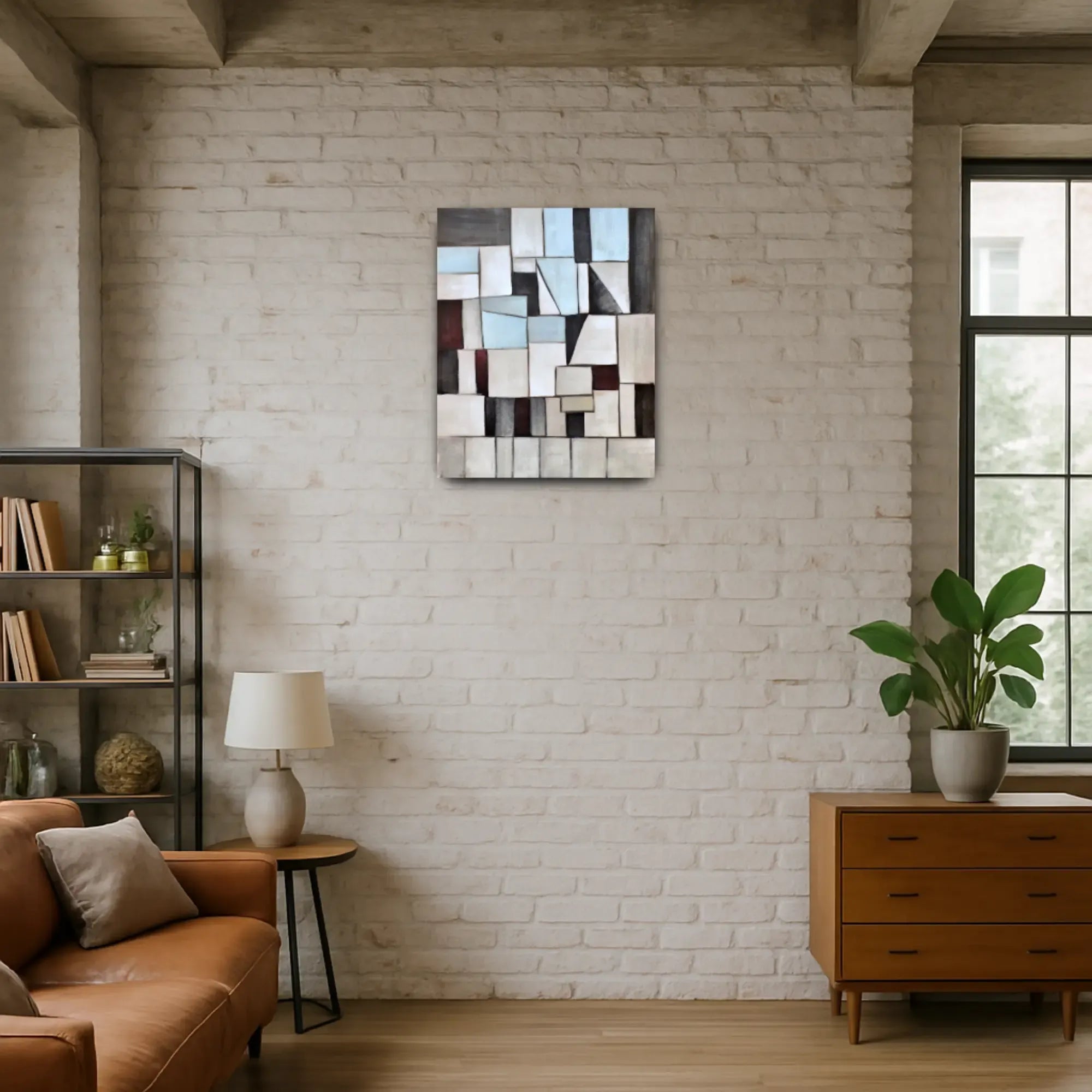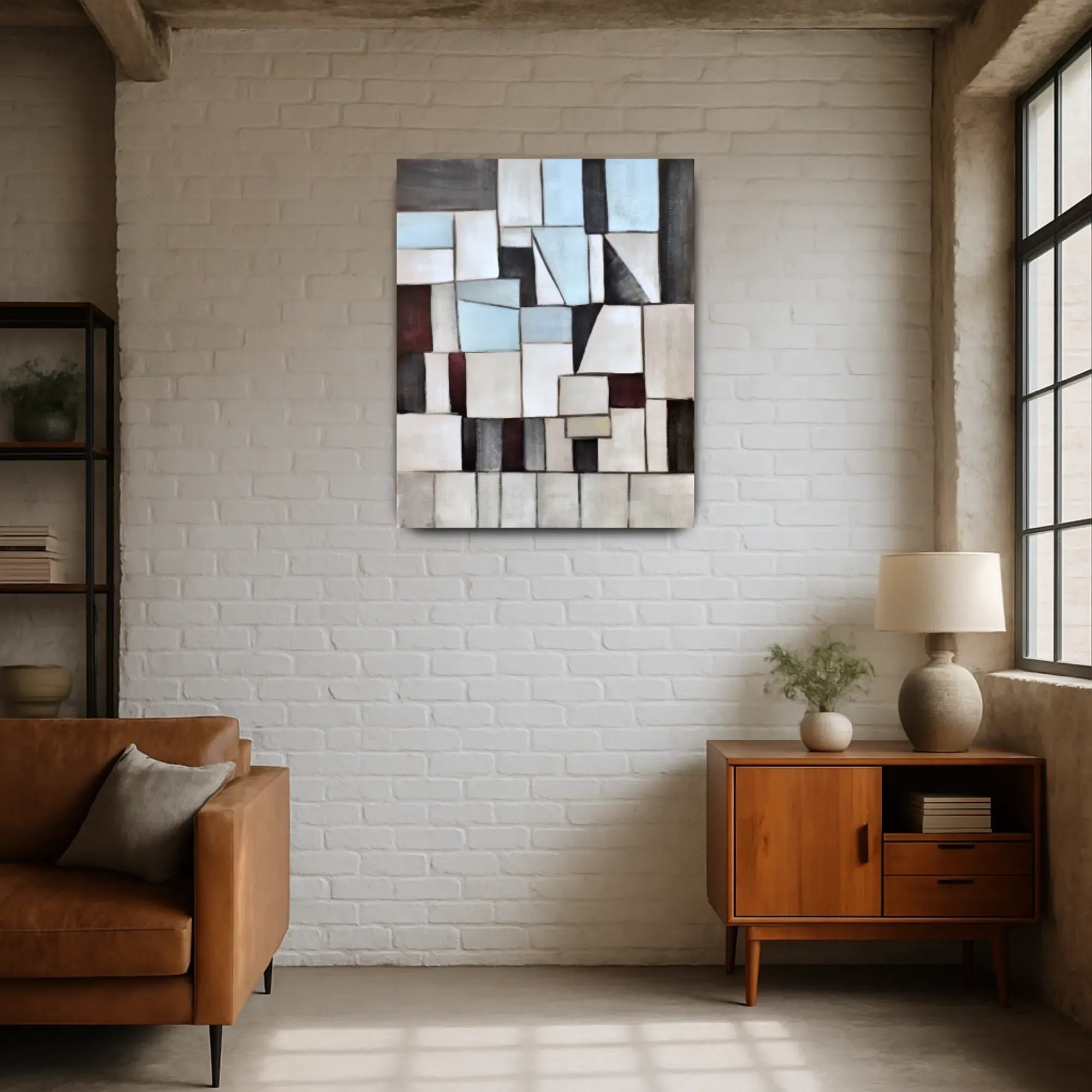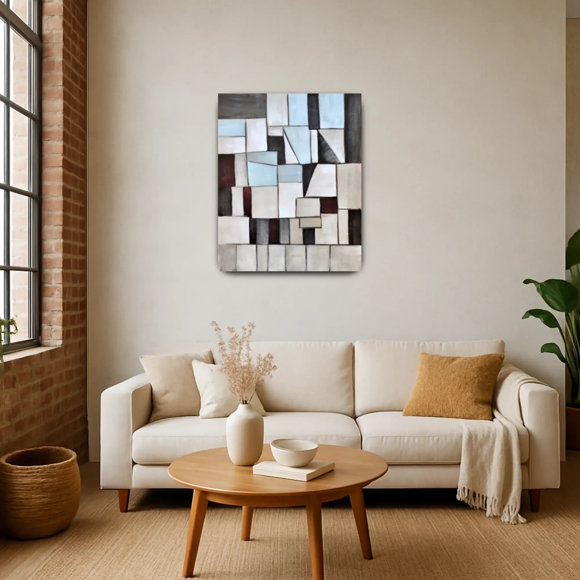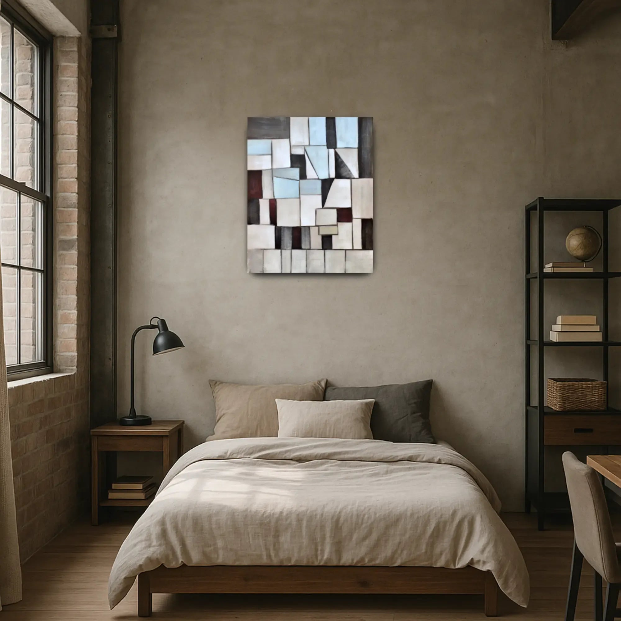 Bedeutung:Dieses Werk steht für Ordnung, Stille und Konzentration. Die klaren Formen wirken entschleunigend – als visueller Ruhepol in einem lauten Alltag. Gleichzeitig lassen sich in der Fläche Assoziationen zu Architektur, Erinnerung oder urbaner Struktur lesen. Ideal für minimalistische oder moderne Interieurs.