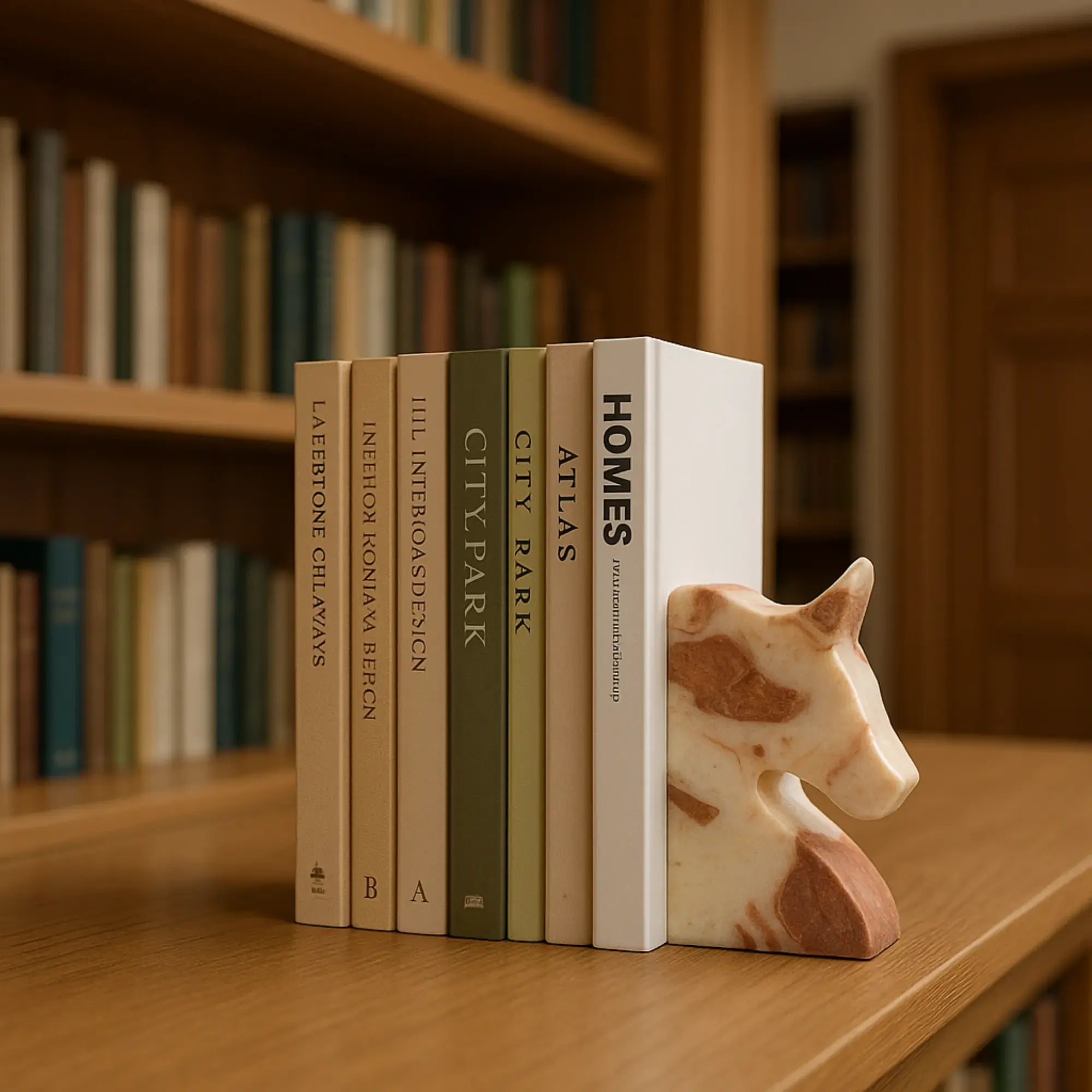 Kraftvoll und kultiviert: Dieses 2-teilige Buchhalter-Set interpretiert die Silhouette des Pferdes als moderne Skulptur. Die polierte Oberfläche und die klar geschnittenen Konturen bringen Ruhe und Präsenz in jedes Regal – ein Objekt, das Bücher schützt und zugleich Raumästhetik definiert.