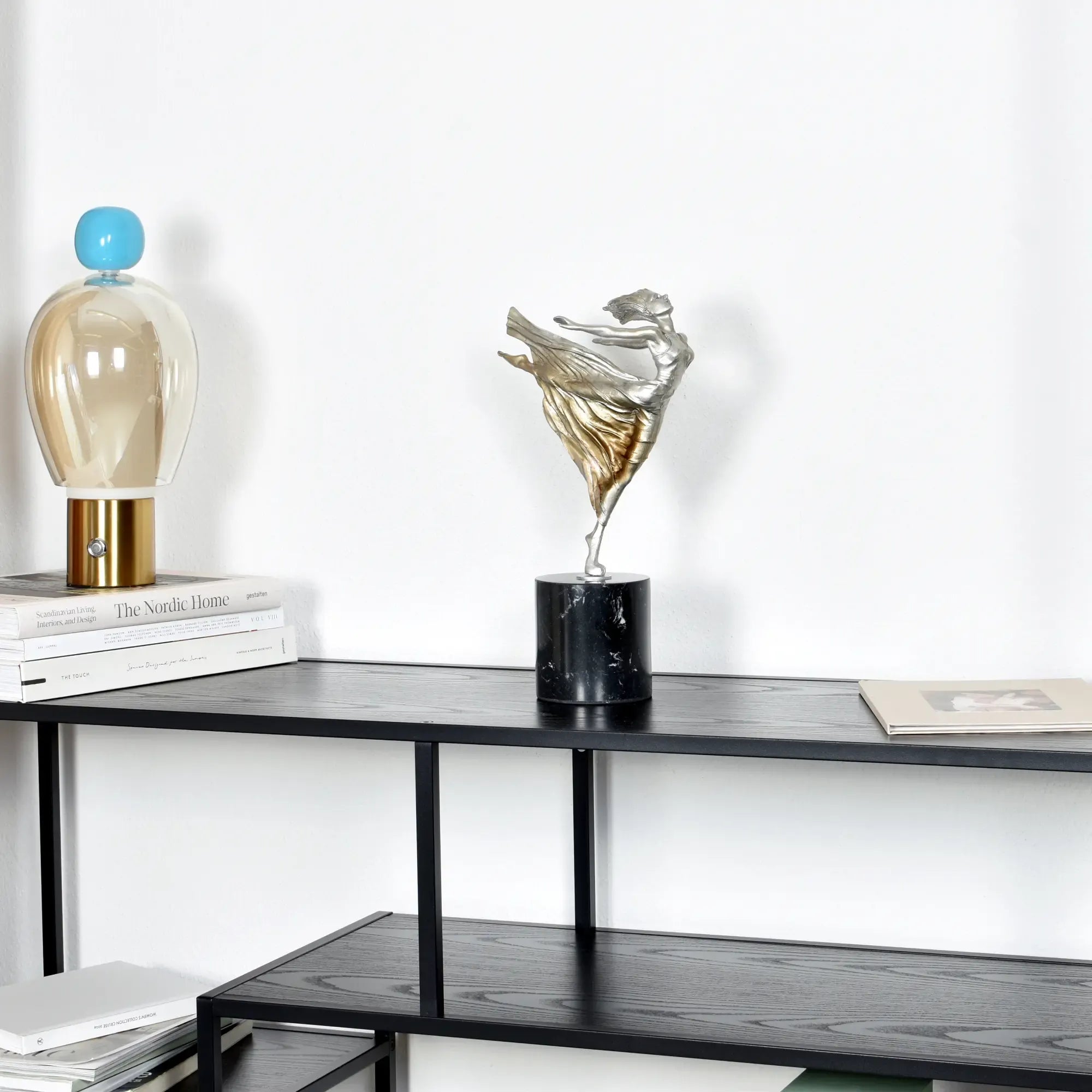 Metallskulptur, Tanzfigur, Ballerina Deko, Marmorsockel, Loft Deko, moderne Skulptur, Statement Piece, Premium Wohnaccessoire.