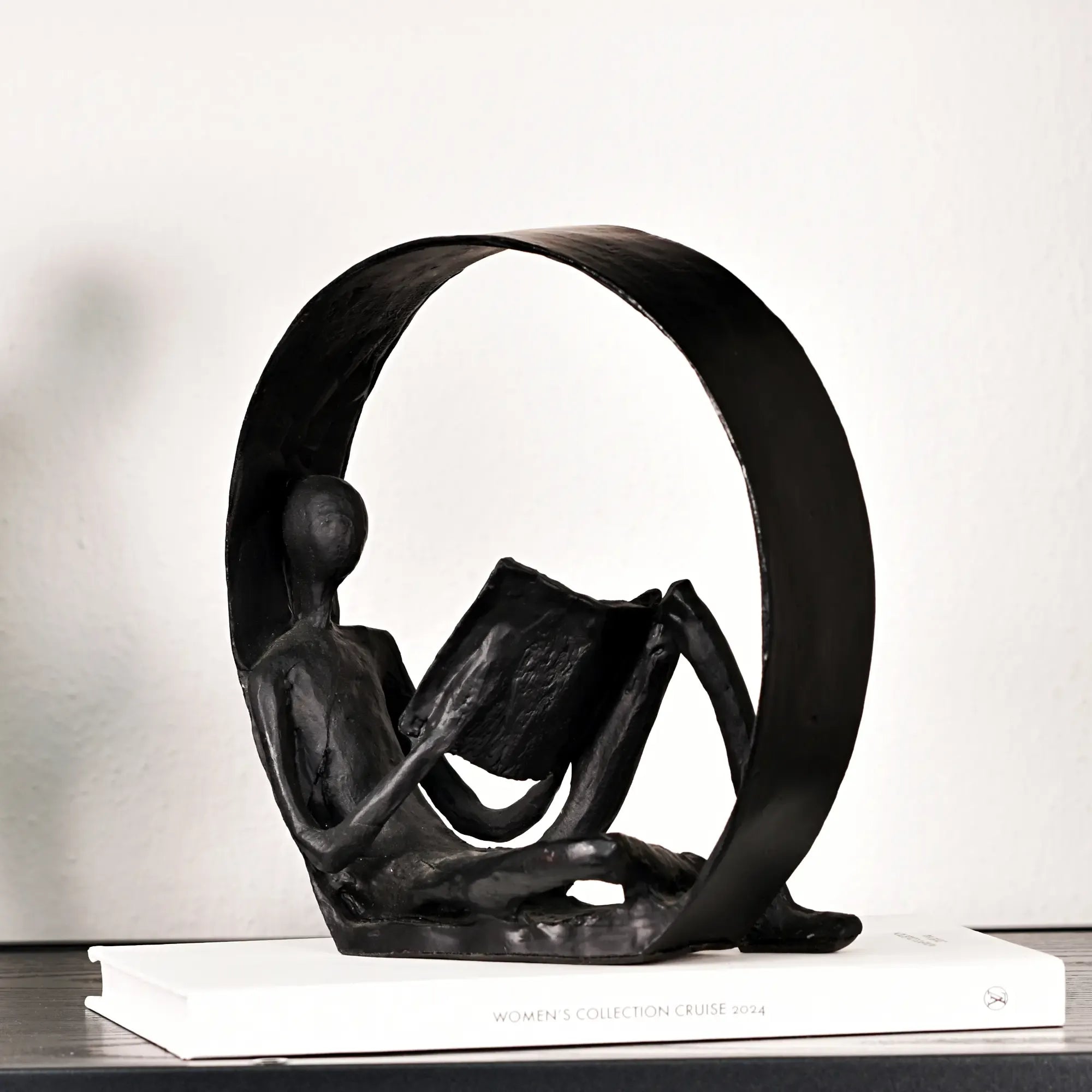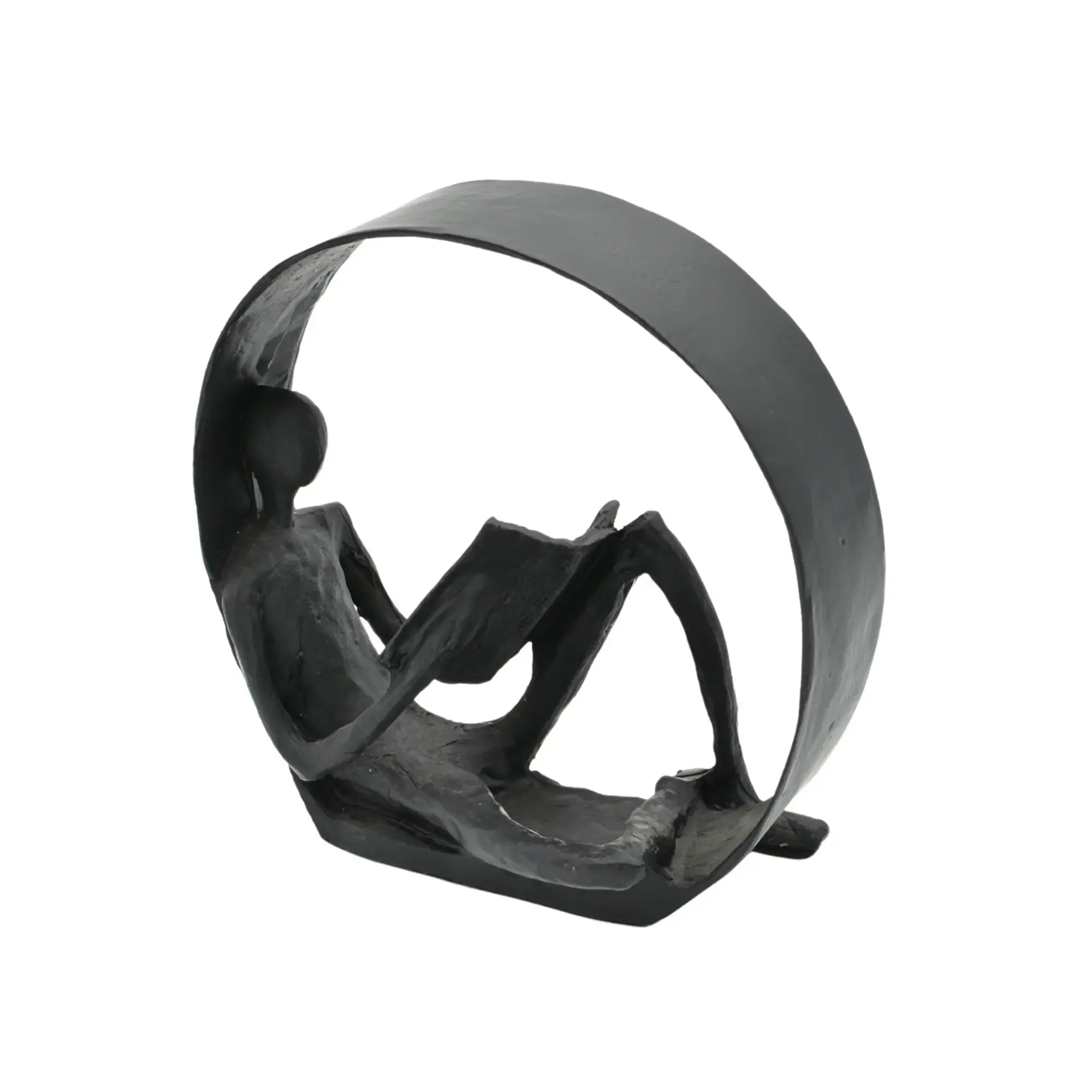 Dekofigur - Skulptur Puristische Kreisfigur Lesender im Ring Orbis Lectio Metall, Schwarzmatt, und robust, vom stil Modern & Minimalistisch & Industriell