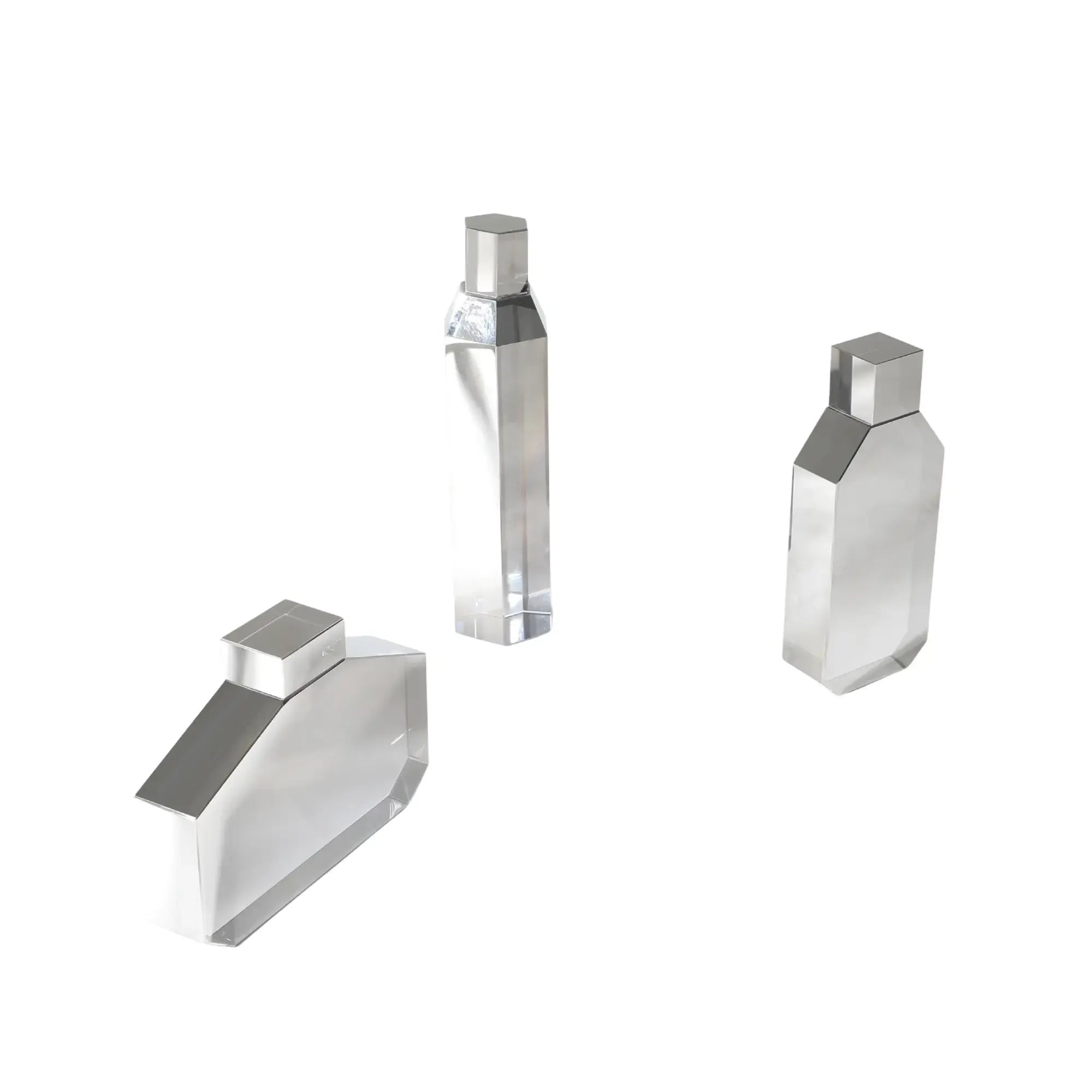 Kristallflasche Deko, Glasflakon Skulptur, Kristallobjekt modern, prismen Deko, luxuriöse Tischdekoration.