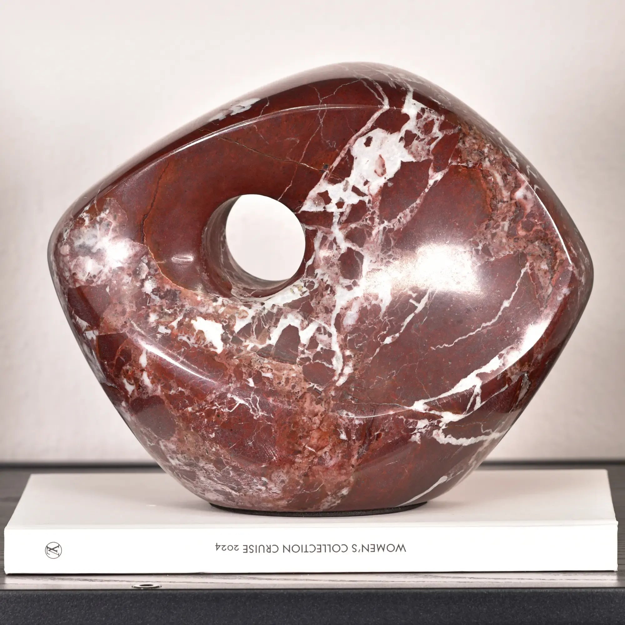 Dekoobjekt - Skulptur Zeitlose Marmorform Circulus Aeternum Marmor, Weiss & Rot, und robust, vom stil Modern & Zeitlos & Elegant