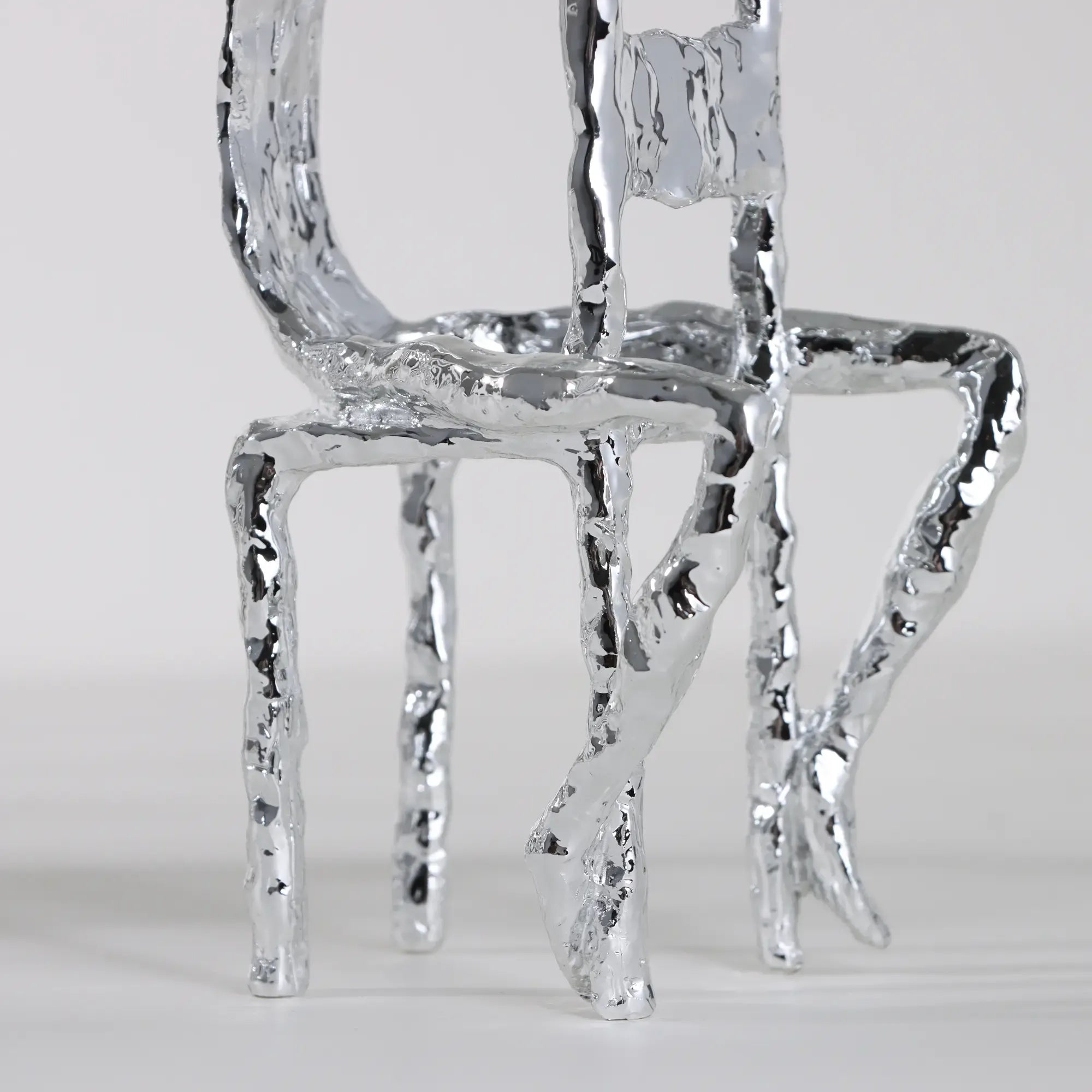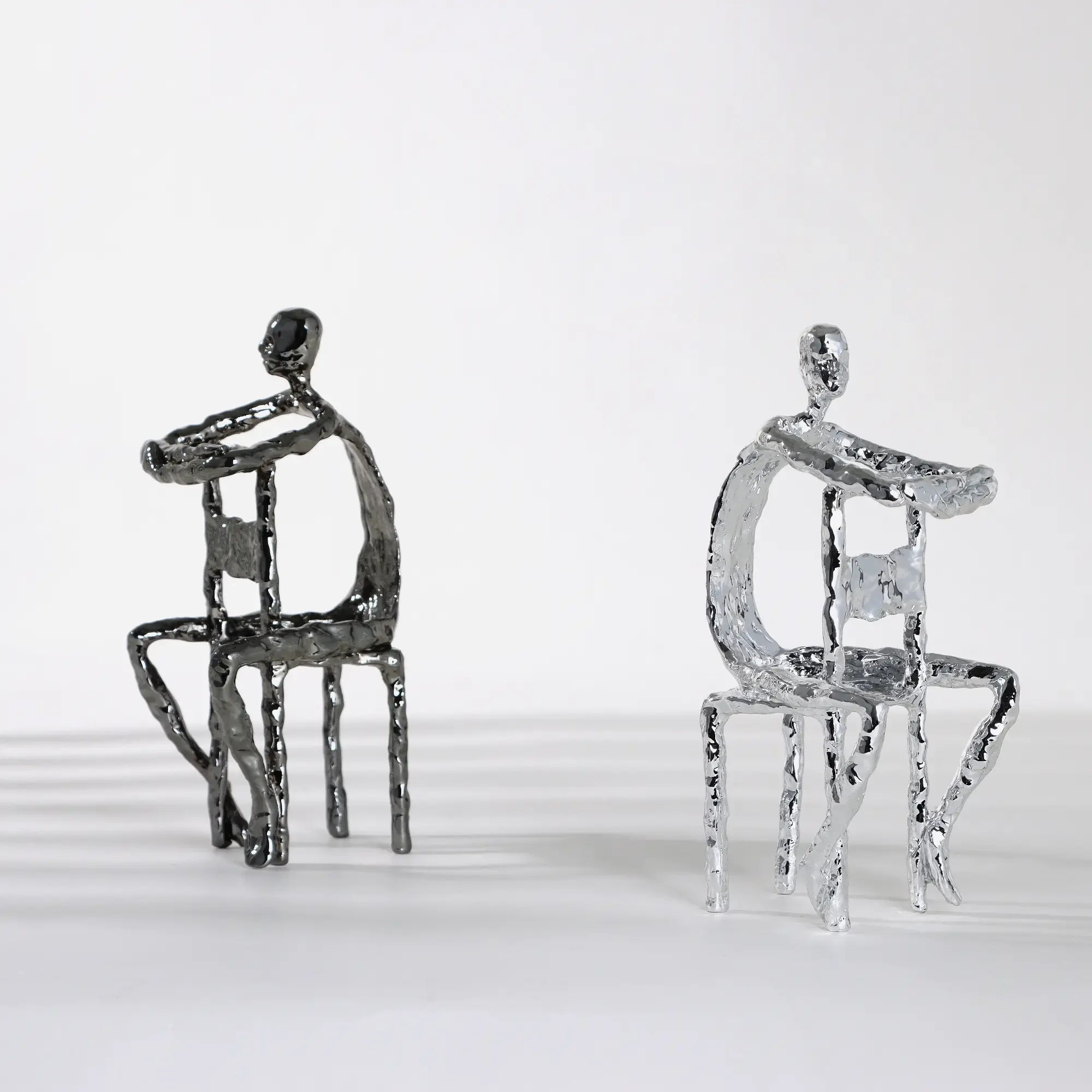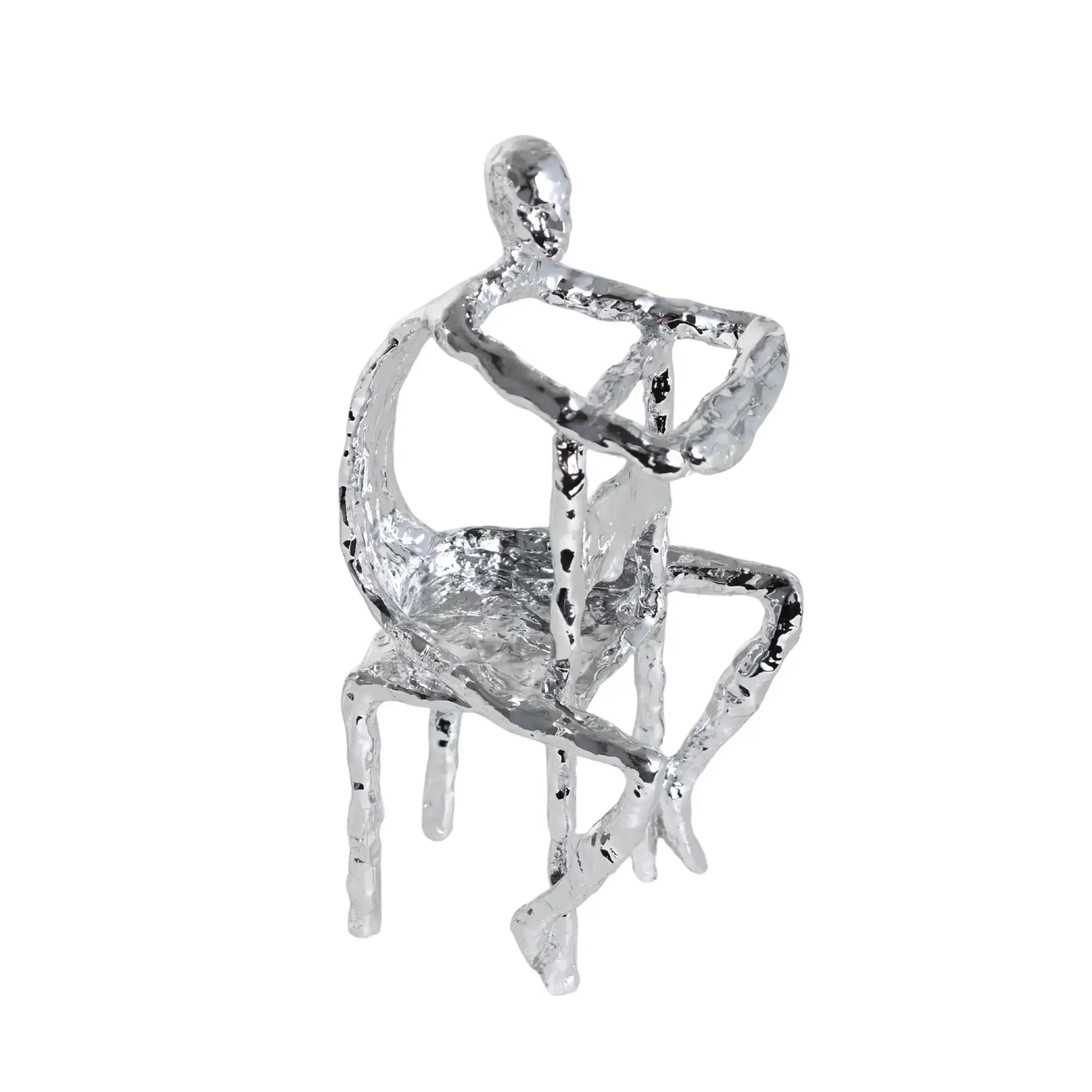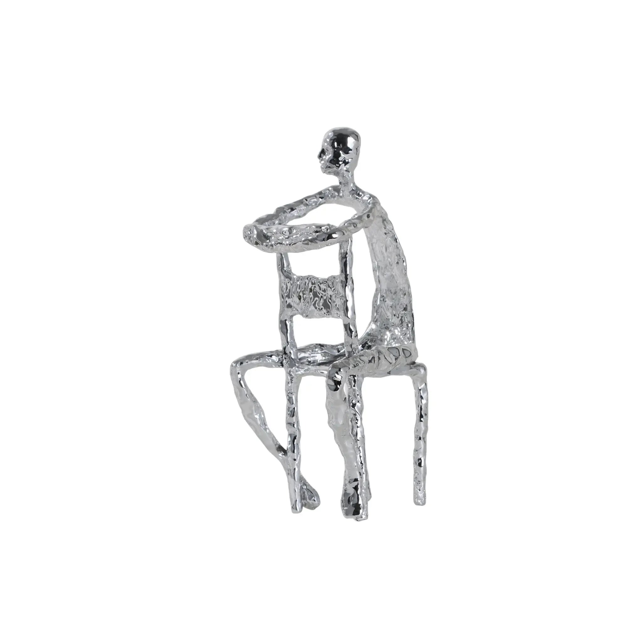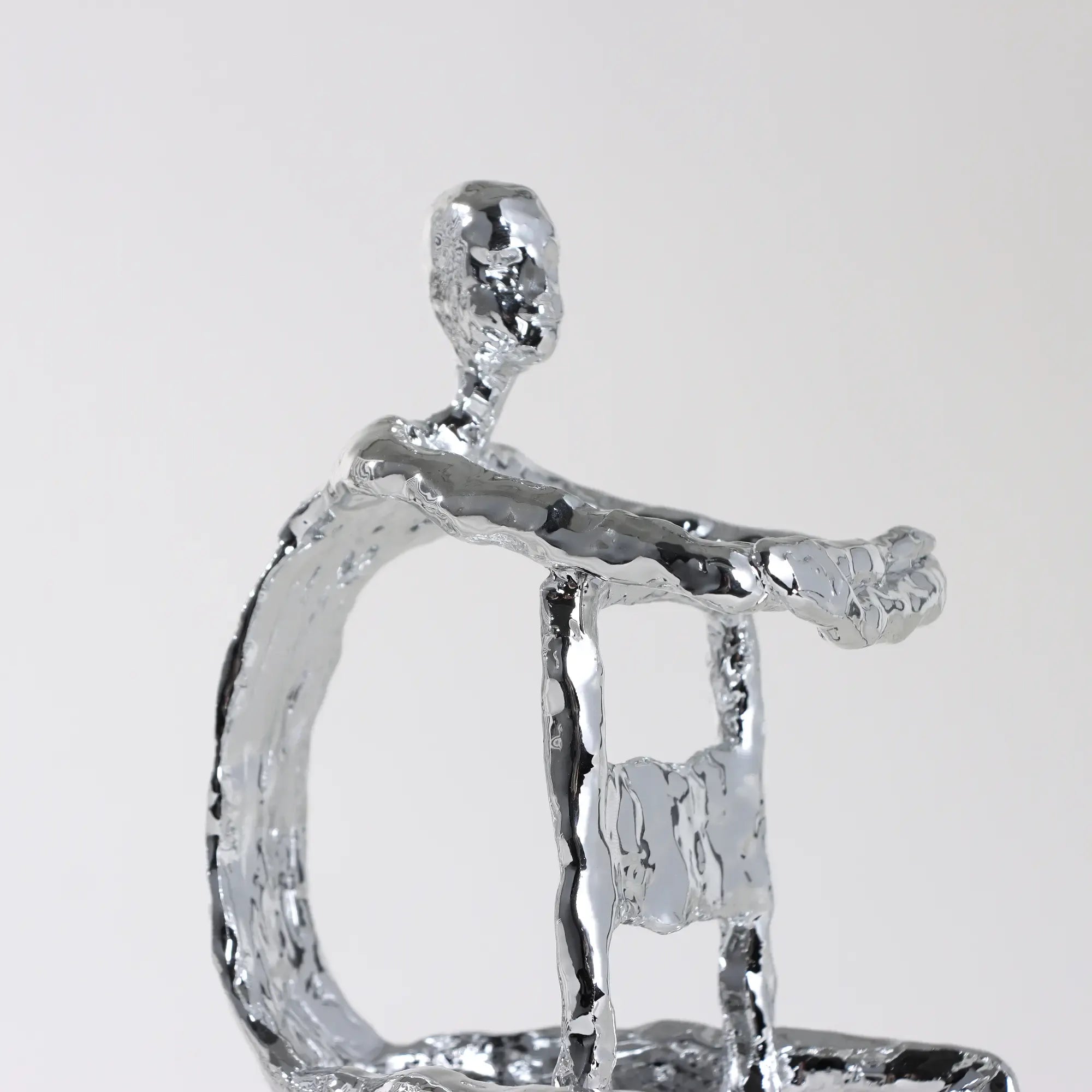 Dieses einzigartige Kunstwerk, aus hochglänzendem Aluminium gefertigt, verleiht jedem Raum eine moderne und nachdenkliche Note. Die abstrahierte Figur, die gedankenversunken auf einem verdrehten Stuhl sitzt, spiegelt eine tiefe Auseinandersetzung mit dem Leben wider. Ihre feinen, minimalistisch gestalteten Linien laden den Betrachter ein, über den inneren Dialog und die stille Reflexion nachzudenken. Diese nicht alltägliche Skulptur ist inspiriert von Rodins Denker und präsentiert sich in einer modernen, eleganten Interpretation – ideal für stilbewusste Innenräume.