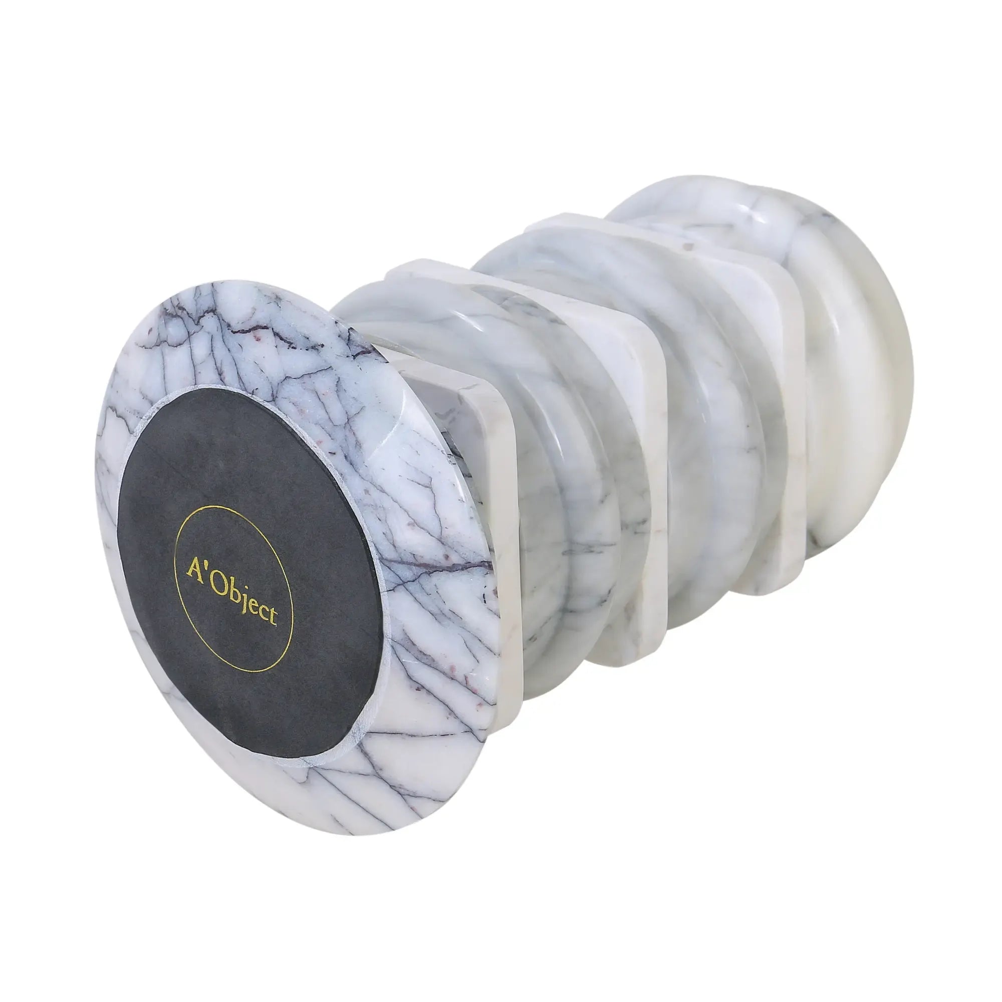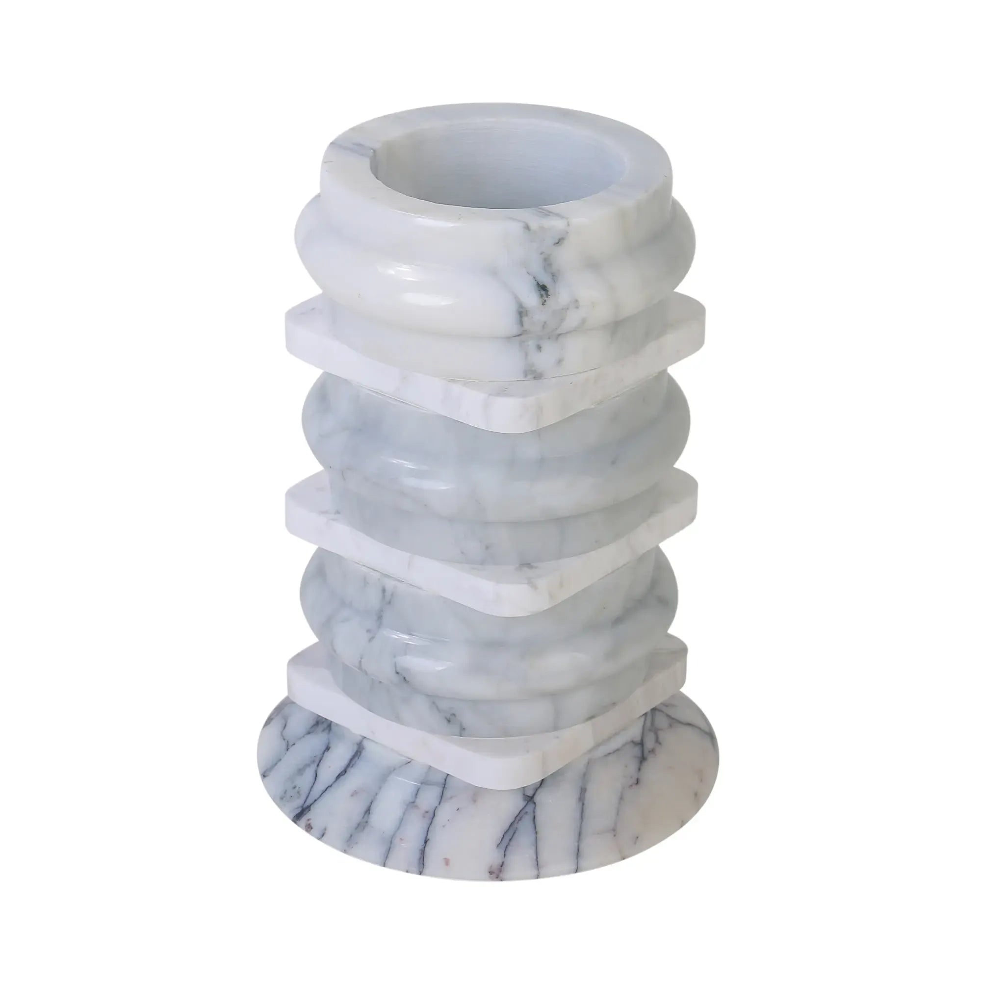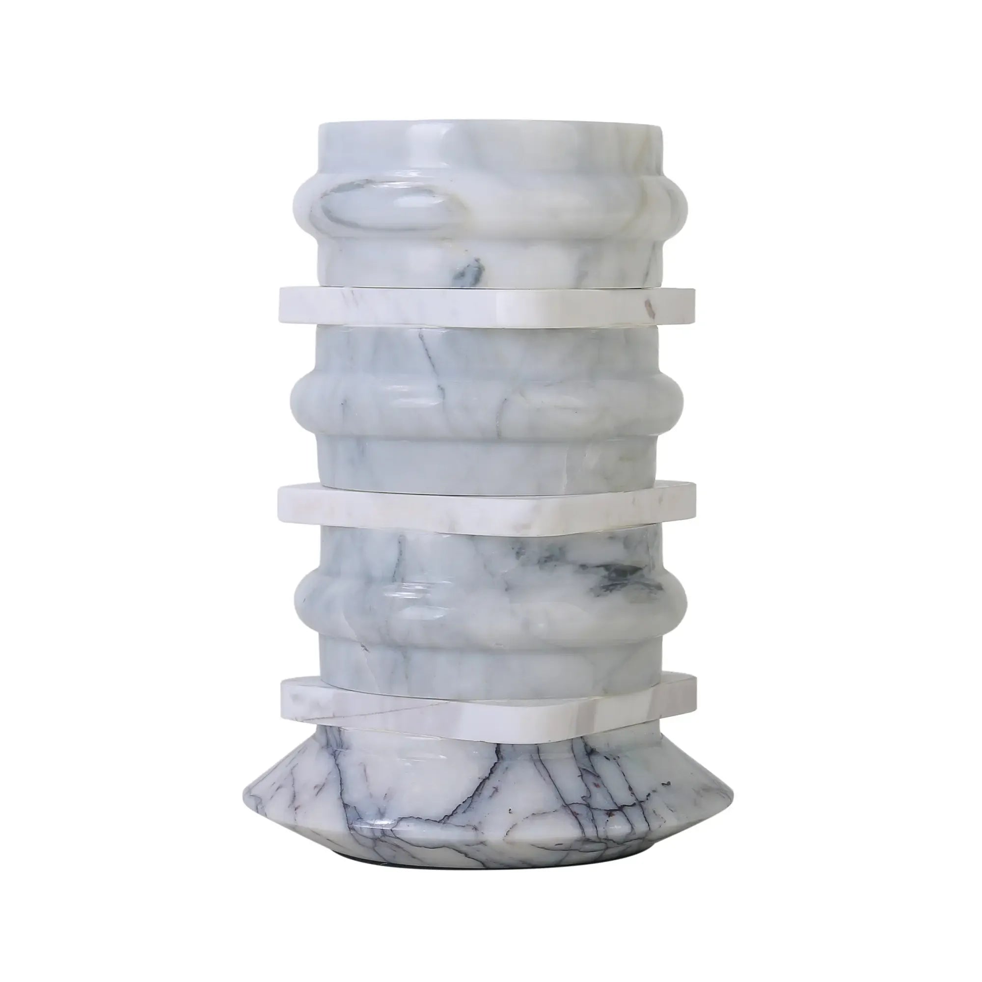 Handgefertigt aus mehreren Elementen echten weißen Marmors, mit zartgrauer Maserung – jedes Stück ein Unikat in Textur und Form.