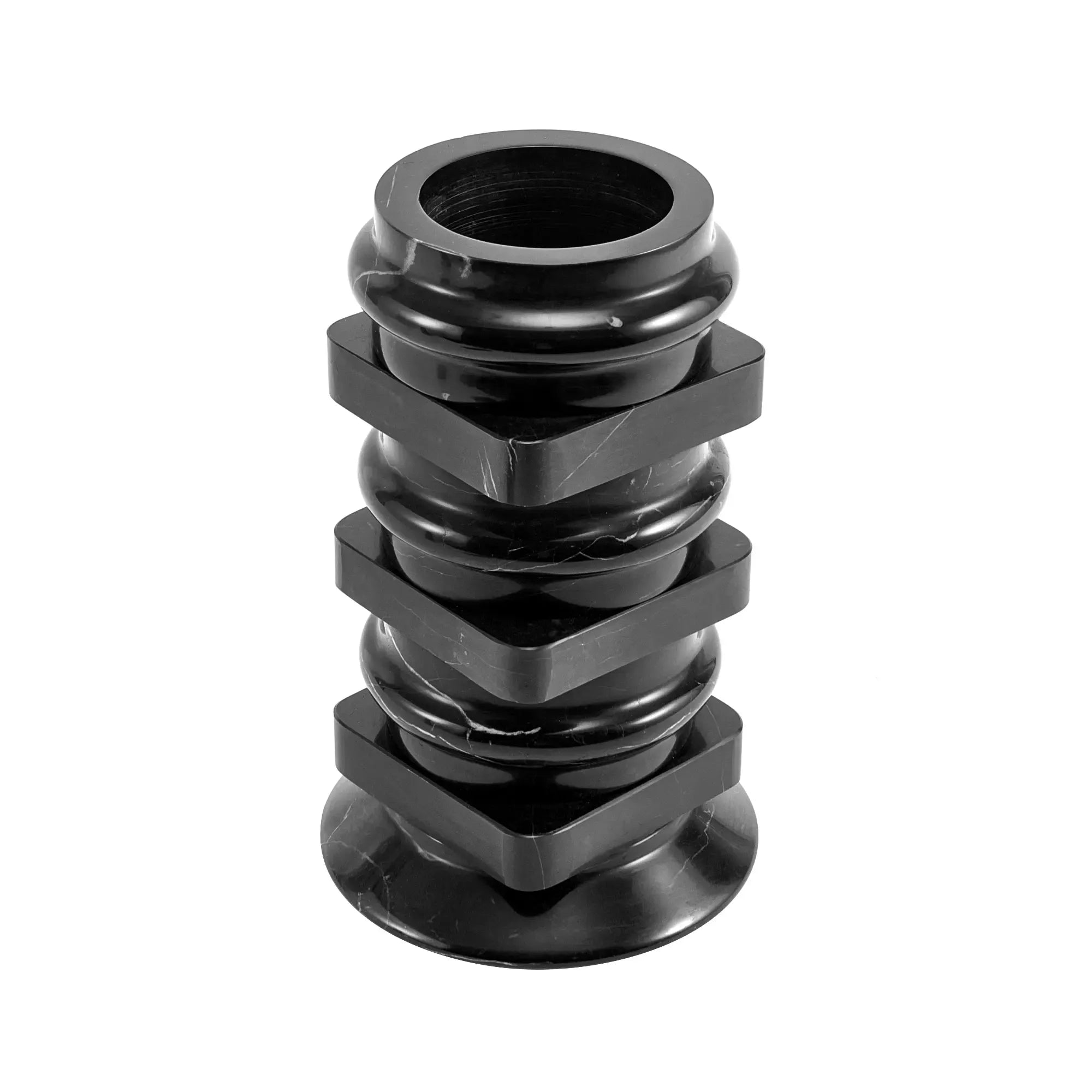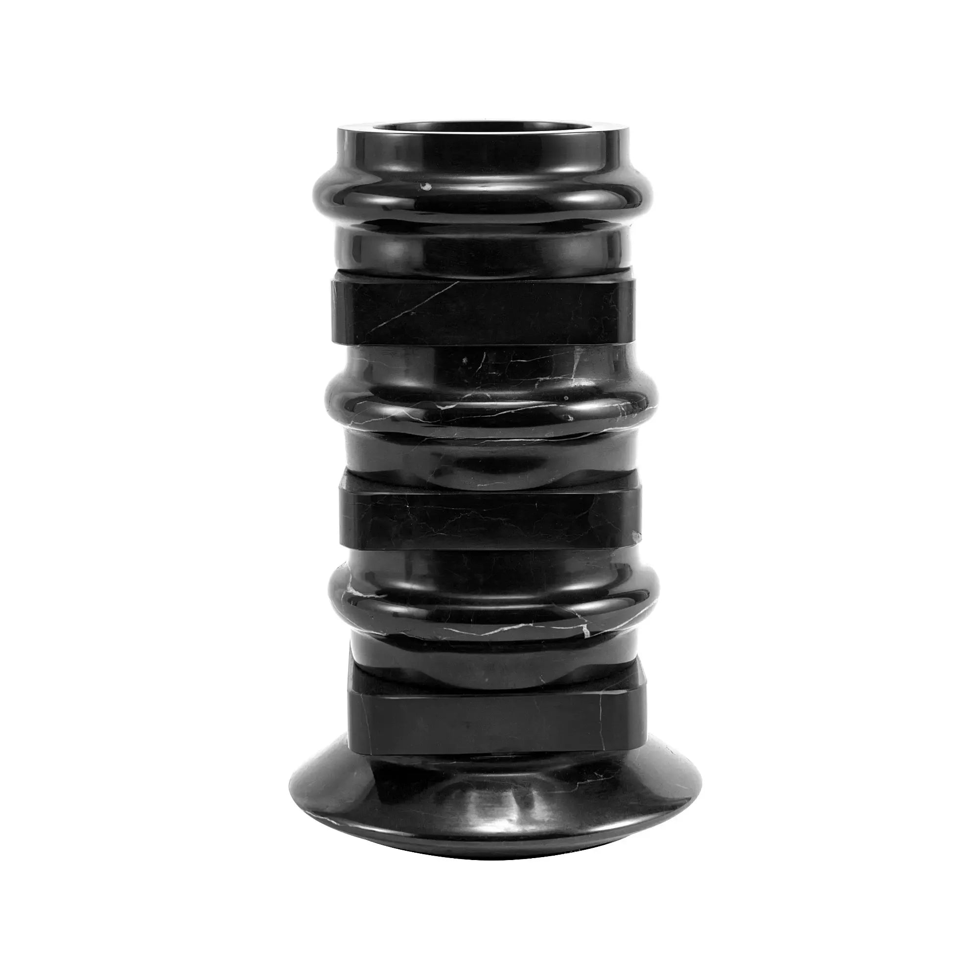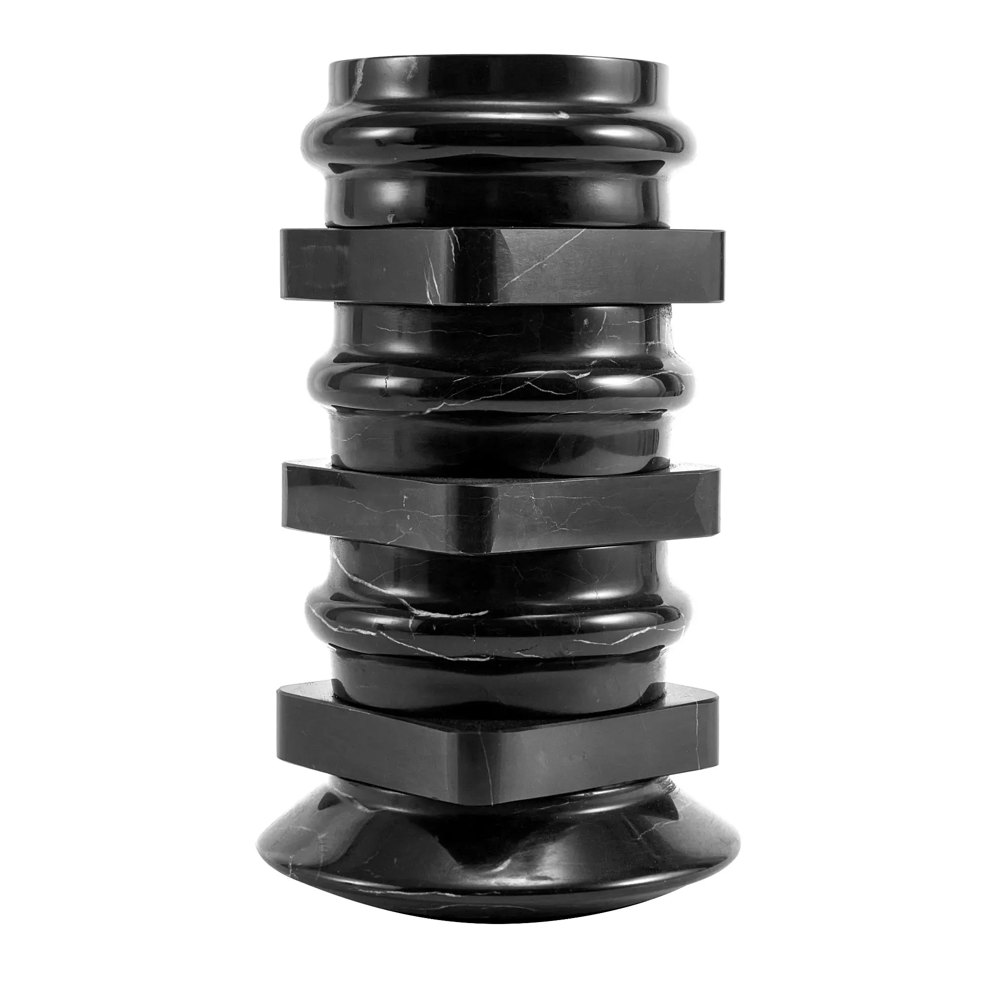 Marmorvase - mit Dekosäule - schwere runde Dekovase Fortaleza Marmor, Schwarz, gross und robust, vom stil Antike & Elegant