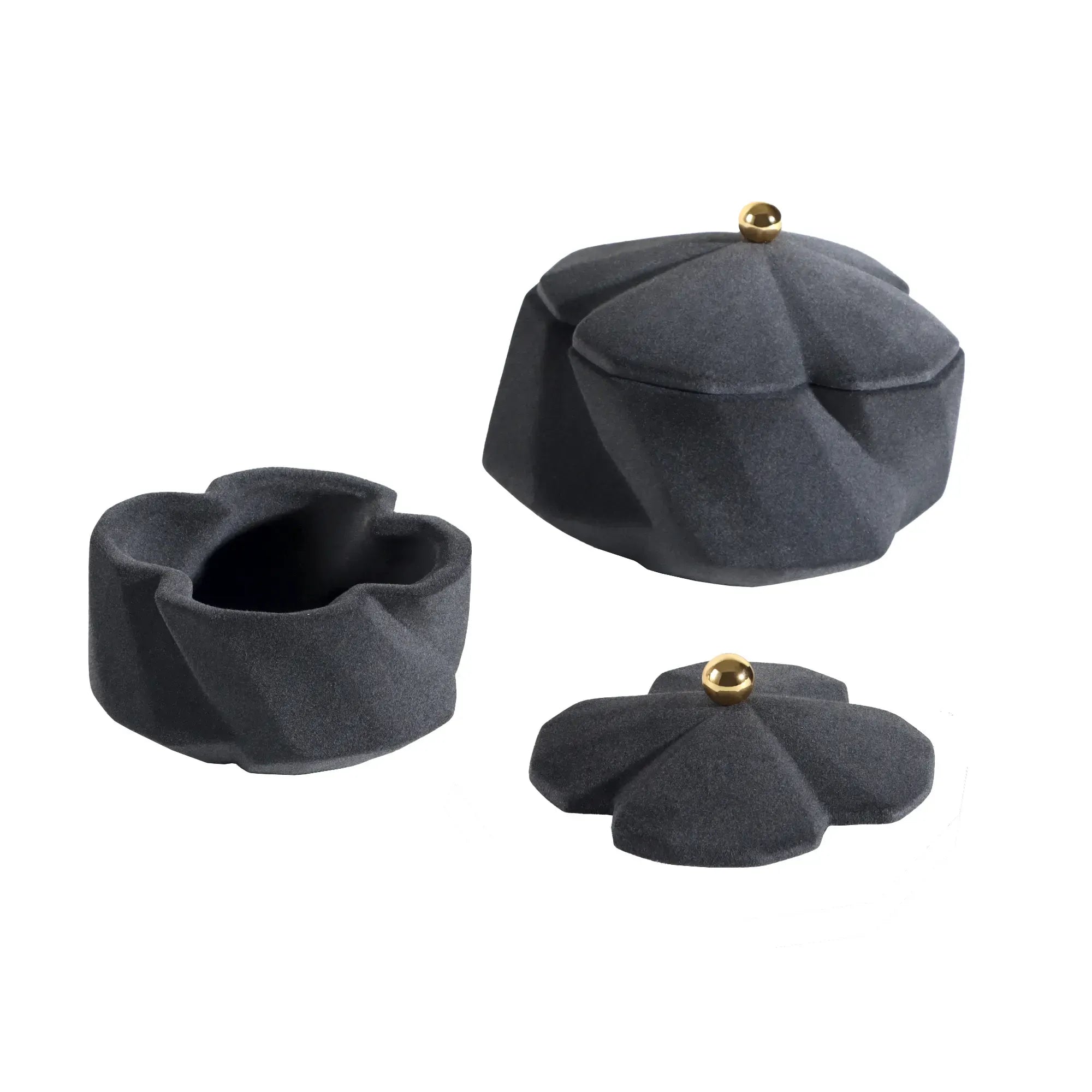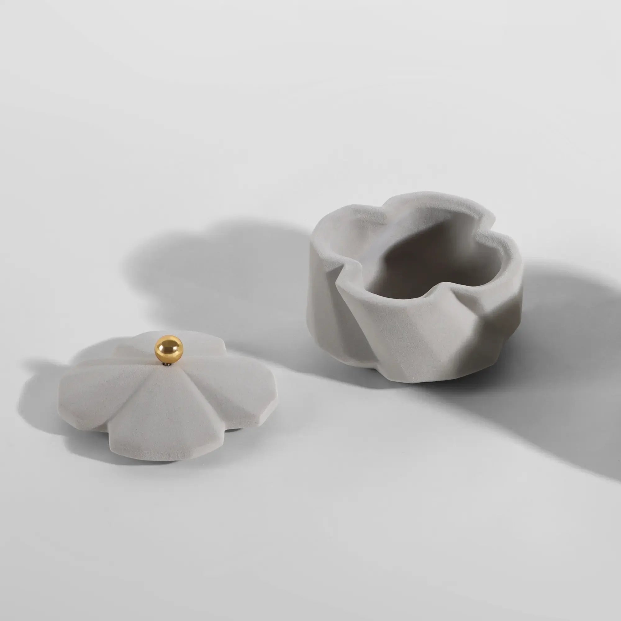 Schmuckkästchen - mit Deckel aus Samt - Blütenform Schmuckdose schöne Deko-Dose Velvet Bloom Samt, Dunkelgrau, gross und robust, vom stil Elegant & Modern