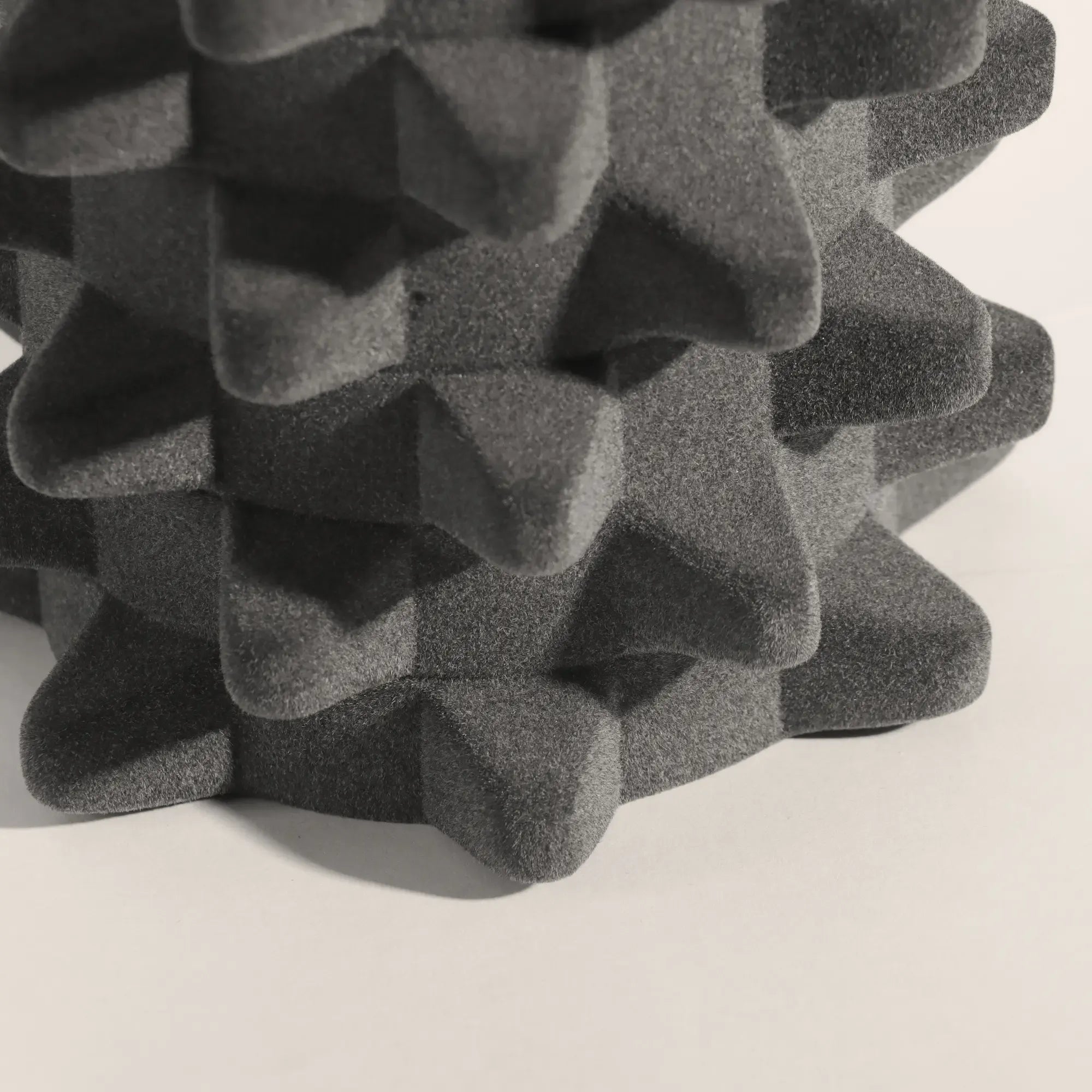 Dekovase - Designer Vase mit Struktur - Skulpturale Designvase mit Samtstruktur Velours Acantha Samt, Dunkelgrau, gross und robust, im Stil: Abstrakt, Modern, Elegant, Loft