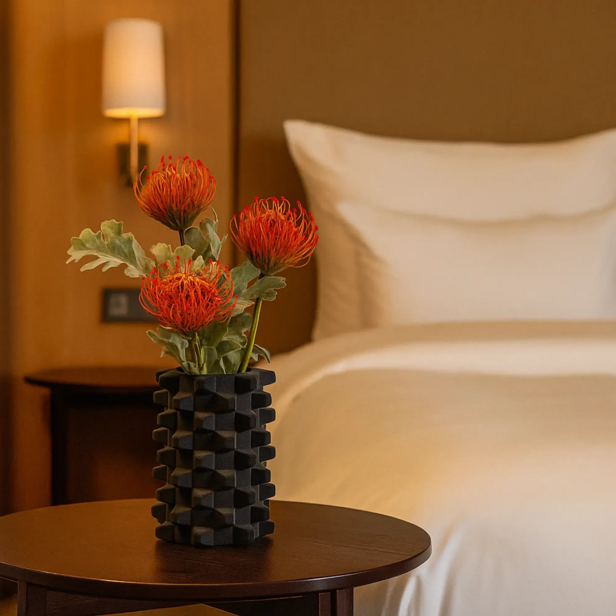 Dank ihrer klaren Geometrie harmoniert die Vase mit Beton, Holz, Metall und Naturstein gleichermaßen. Ob im Wohnzimmer, Eingangsbereich, Homeoffice oder Schlafzimmer – sie bringt Struktur in ruhige Interieurs und konturiert lebendige Räume mit einer reduzierten, künstlerischen Präsenz. Die samtige Oberfläche lädt zum Berühren ein, während die präzise Formensprache eine zeitlose Modernität ausstrahlt.