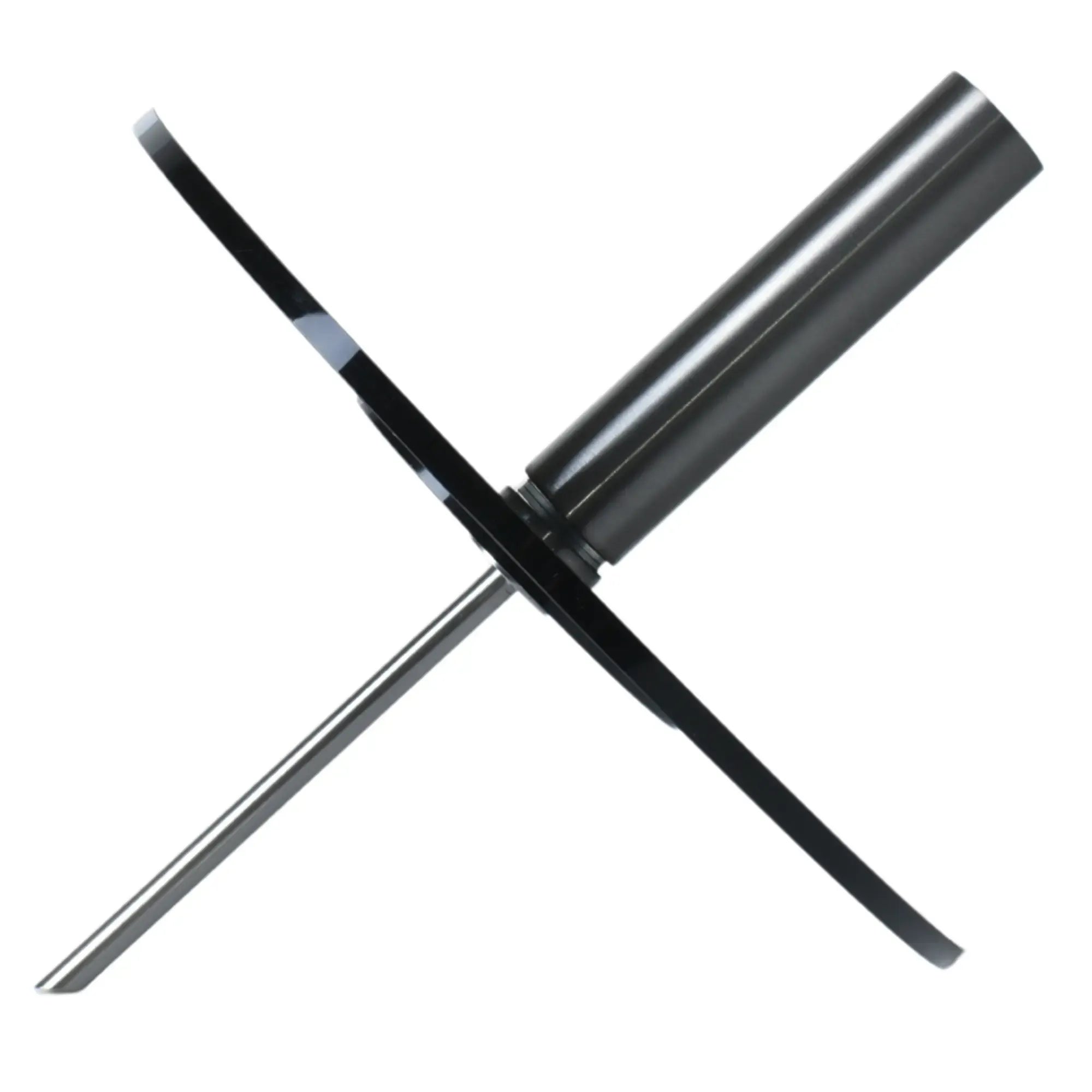 Hochwertiger Edelstahl kombiniert mit einem stabilen Metallfuß und edlem, halbtransparentem Rauchglas in Schwarz für eine futuristische Optik.