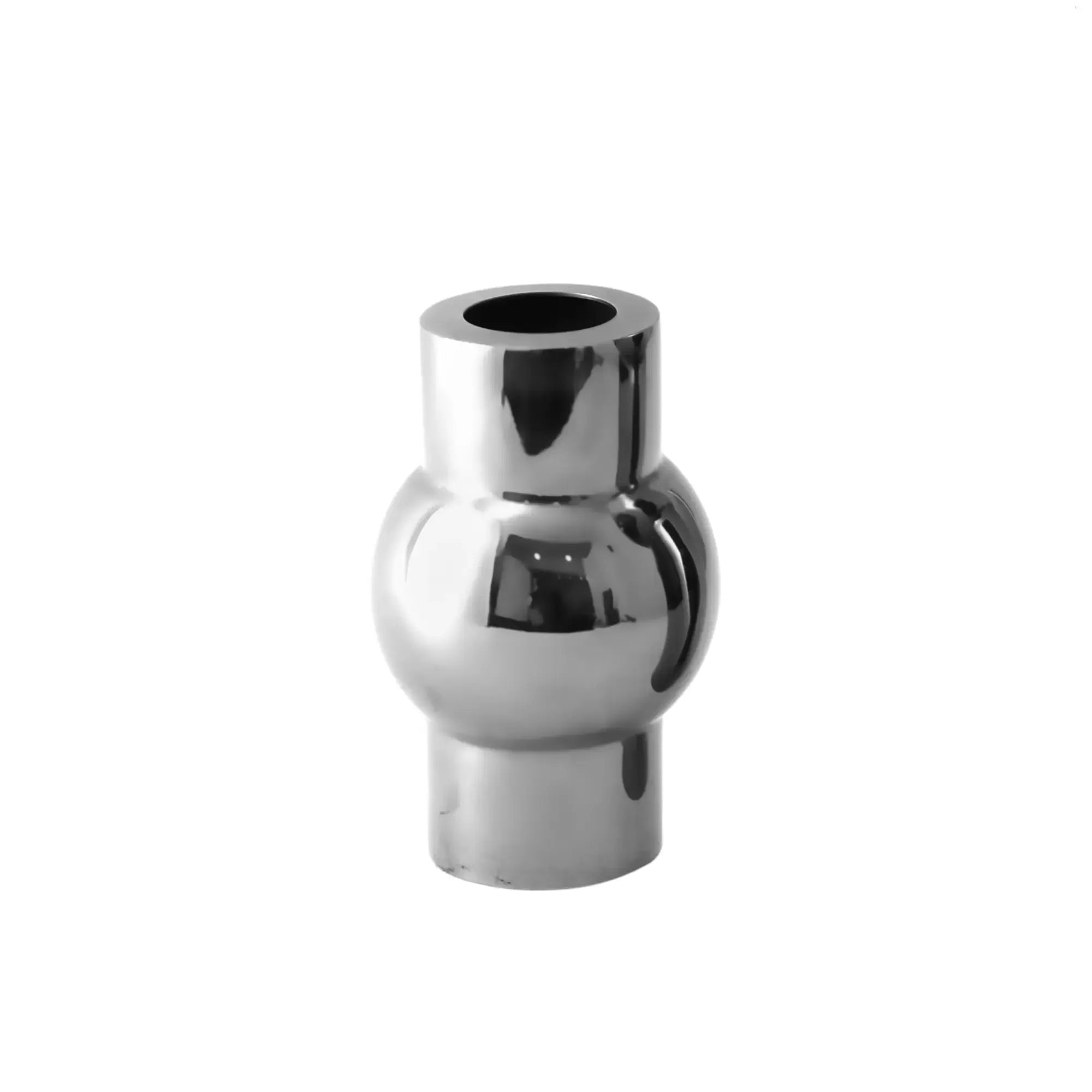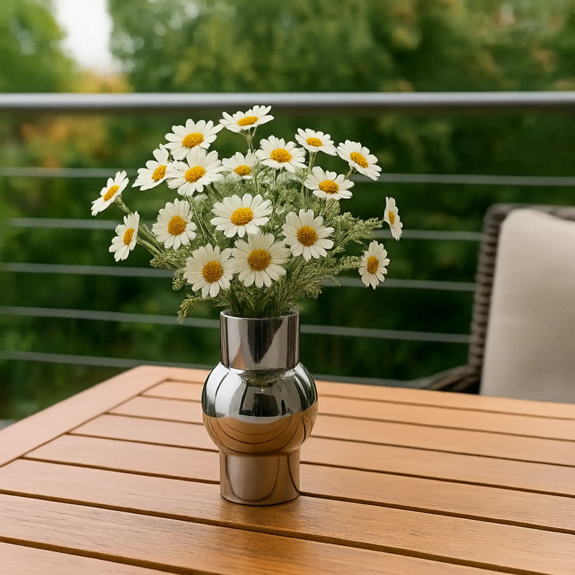 Die Reflective Arc ist eine stilvolle Vase aus hochglänzendem Edelstahl, die durch ihre moderne, skulpturale Form und reflektierende Oberfläche zum architektonischen Statement wird. Die Kombination aus zylindrischer Basis und kugelförmiger Mitte verleiht ihr eine luxuriöse Präsenz mit futuristischer Note. Ob für Echtblumen oder kunstvolle Trockenblumen-Arrangements, als Tischvase oder dekoratives Solostück – diese Designervase bietet unzählige Dekorationsmöglichkeiten und bringt Glanz in Regale, Bücherregale, Küchen oder moderne Wohnräume. Ihre spiegelnde Oberfläche fängt Licht effektvoll ein und setzt bewusst Akzente im Interieur. Ein besonderes Geschenk zur Einweihung oder für Designliebhaber:innen, das Stilbewusstsein und Materialästhetik vereint. Ein exklusives Objekt für alle, die klare Formen, glänzende Materialien und zeitgenössisches Design lieben.