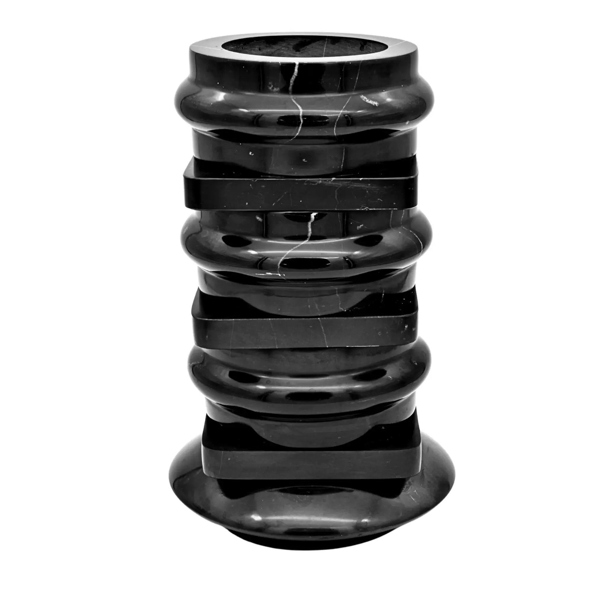 Marmorvase - hohe Steinvase - schwere runde Dekovase Fortaleza Marmor, Schwarz, gross und robust, im Stil: Antike, Elegant