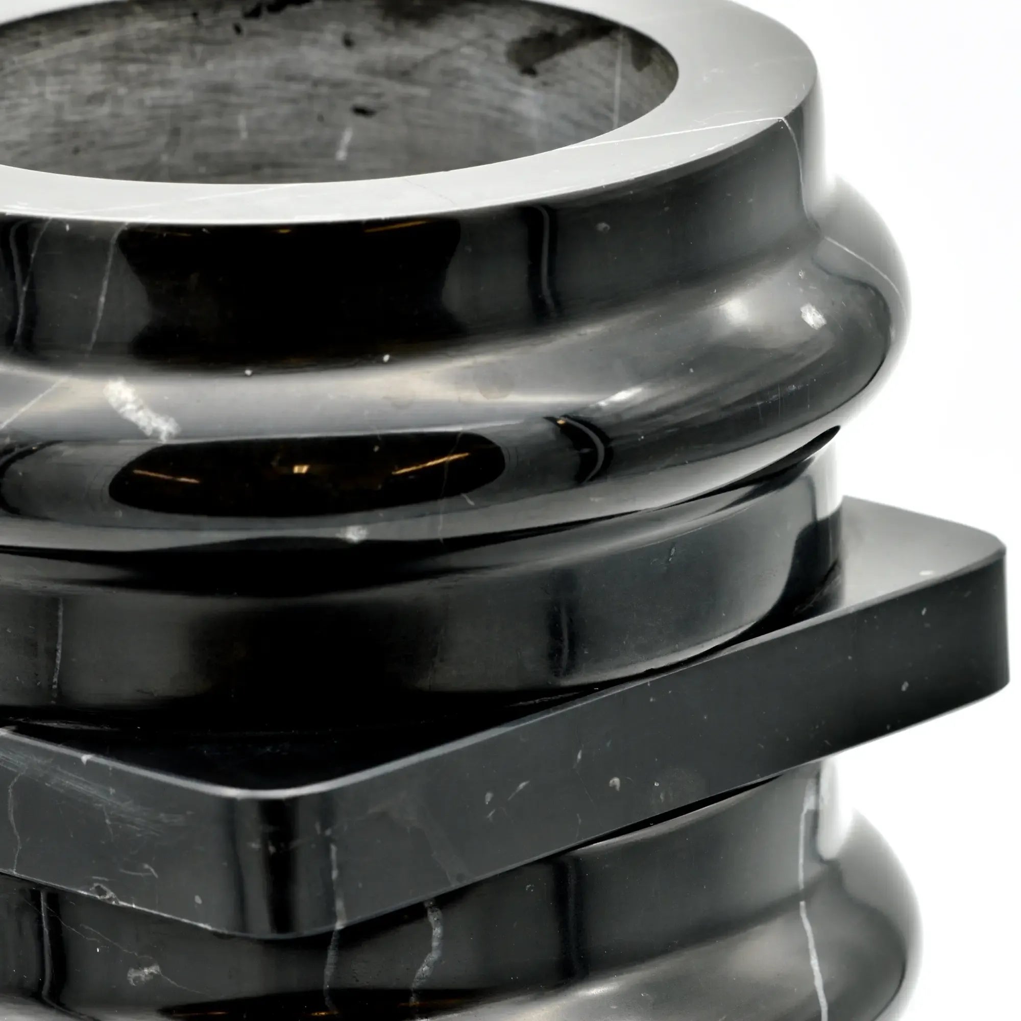 Gefertigt aus massivem schwarzem Marmor mit zarter weißer Aderung – jeder Block ein handverlesenes Einzelstück. Die hochwertige Verarbeitung sorgt für Langlebigkeit, Stabilität und ein natürliches Finish.