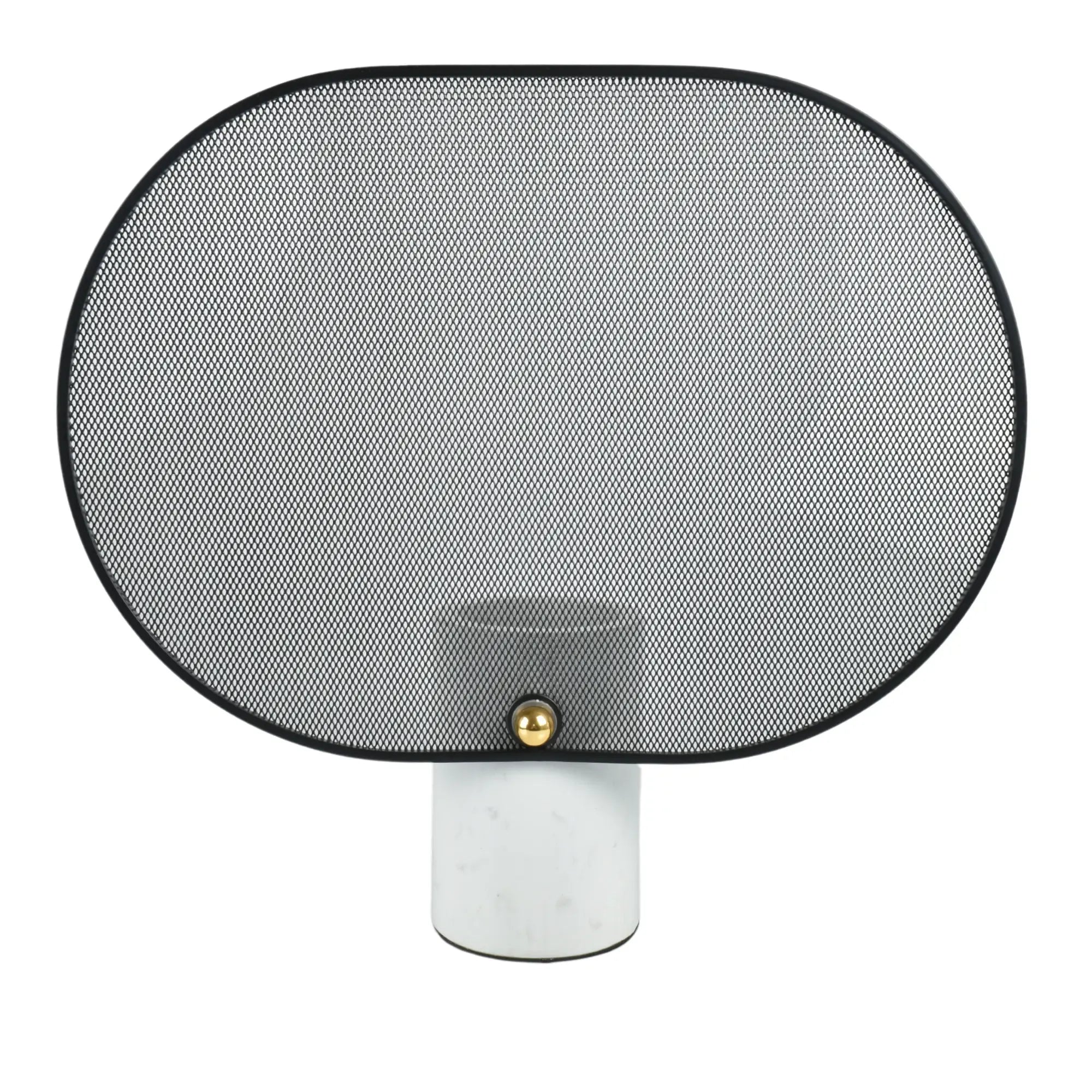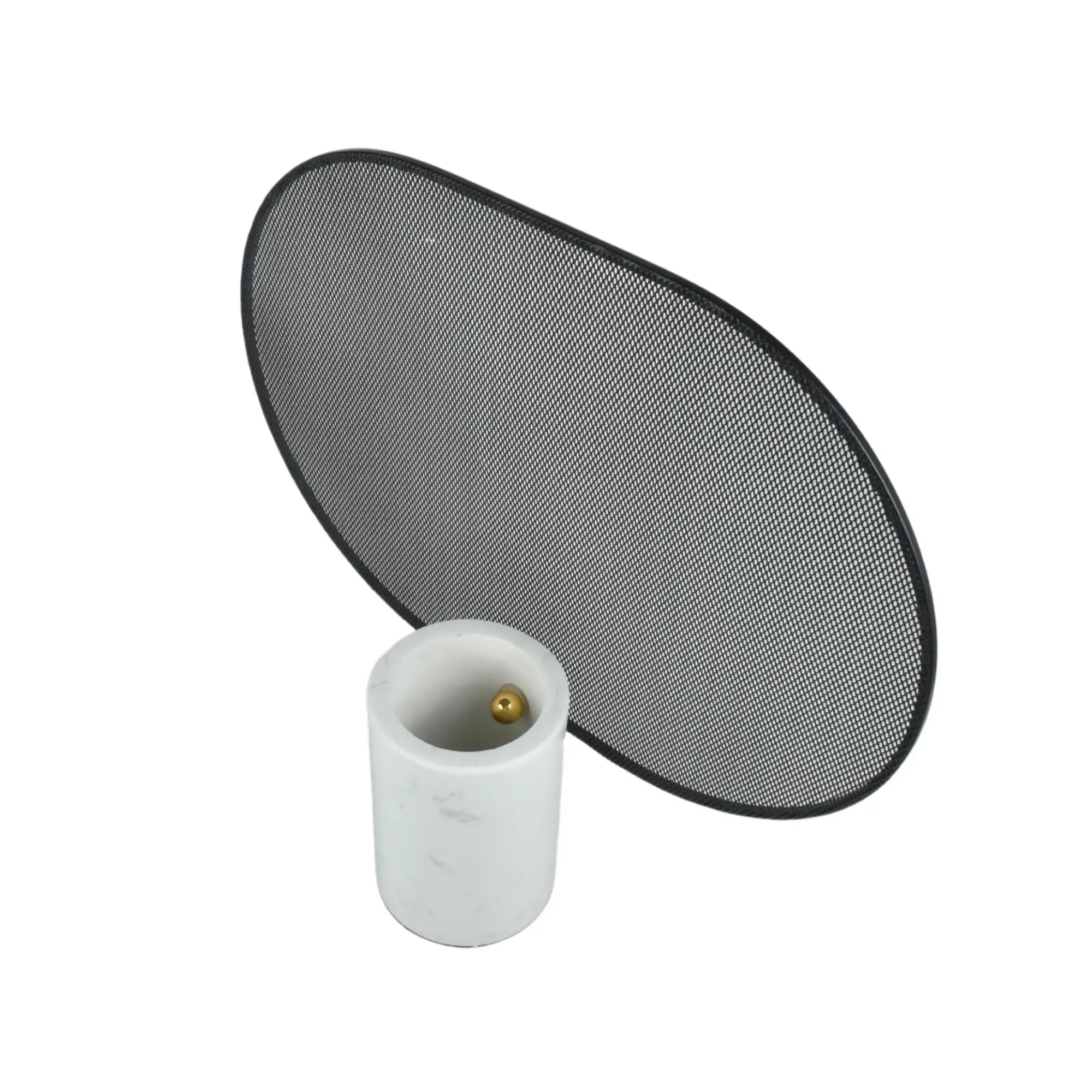 Gefertigt aus hochwertigem, massivem weißem Marmor mit natürlicher Maserung und einem fein perforierten Metallelement in Gitteroptik – modern, elegant und langlebig.