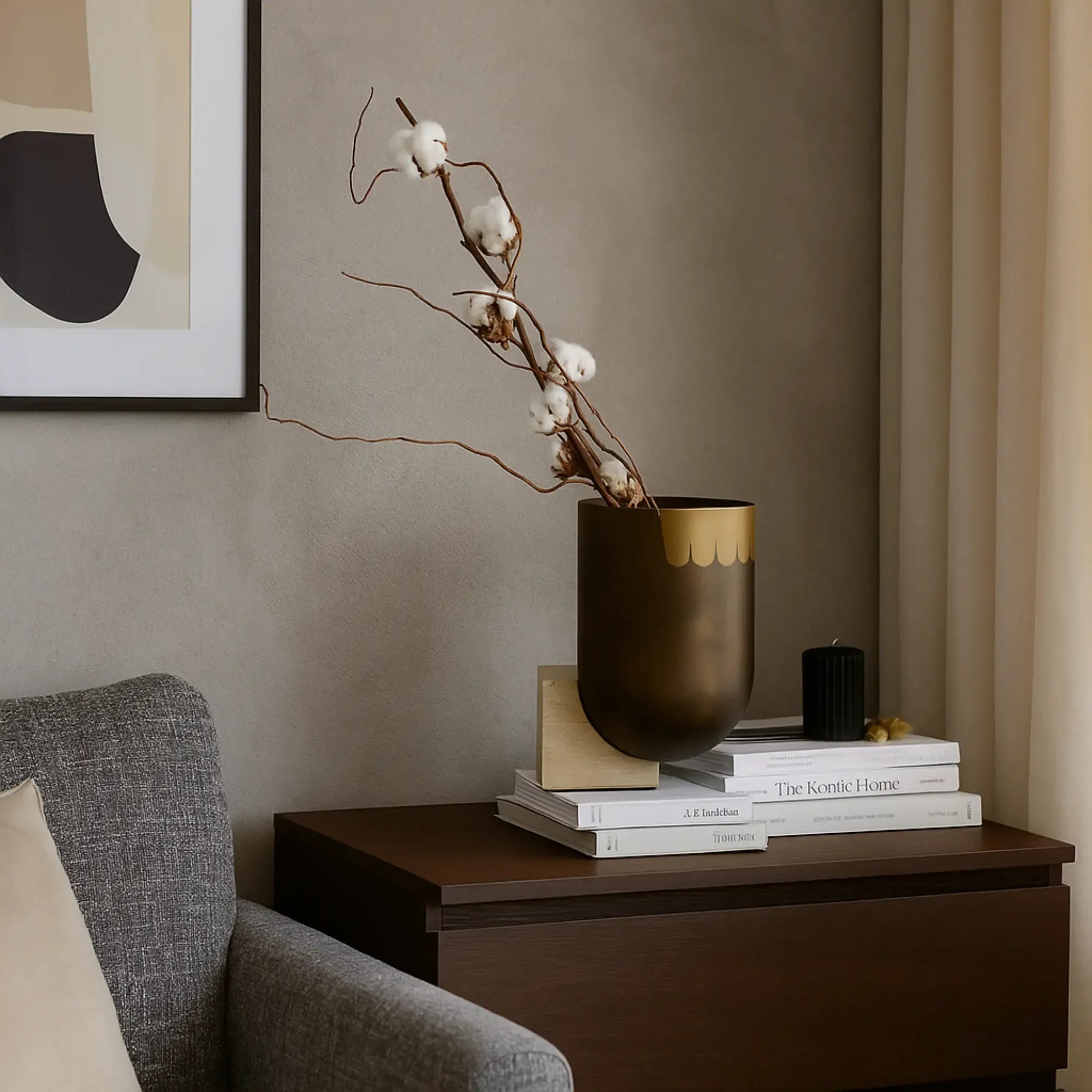 Vaso Romano verbindet skulpturale Präsenz mit edlen Materialien: Der klare, zylindrische Korpus aus handbemaltem Stahl in edler Antikbronze-Optik ruht auf einem massiven Travertinsockel – ein stilvoller Kontrast aus kühler Geometrie und natürlicher Struktur. Diese moderne Tischvase überzeugt durch ihr minimalistisches Design und fungiert wahlweise als Dekovase, Gefäß oder skulpturales Dekoobjekt. Sie eignet sich hervorragend für Echtblumen, Trockenzweige oder als puristisches Kunstobjekt – und bietet vielfältige Dekorationsideen für Fensterbank, Tisch, Regal oder Küche. Als Ergänzung zur Standschale Romano oder kombiniert mit weiteren Produkten der Romano Kollektion entsteht ein harmonisches Ensemble. Auch als stilvoller Solitär in Hotels, Arztpraxen oder Empfangsbereichen zieht Vaso Romano alle Blicke auf sich. Ein edles, funktionales Unikat für moderne Wohnräume, Galerien oder stilvolle Büros – und zugleich ein hochwertiges Einweihungsgeschenk für Designliebhaber mit Sinn für klare Formen und natürliche Materialien.