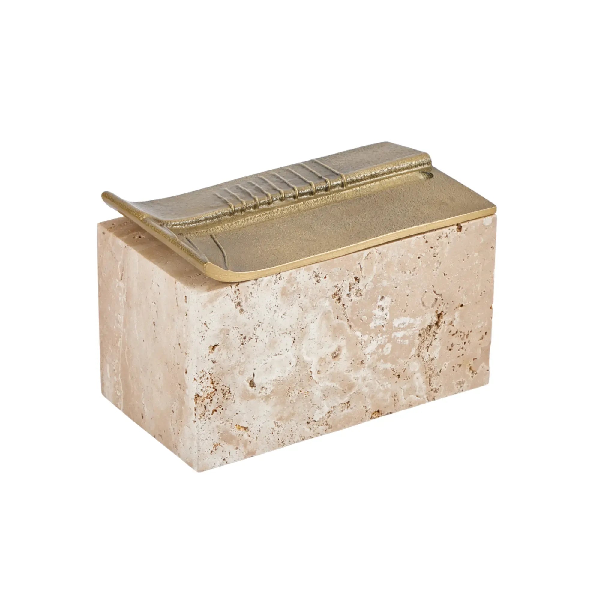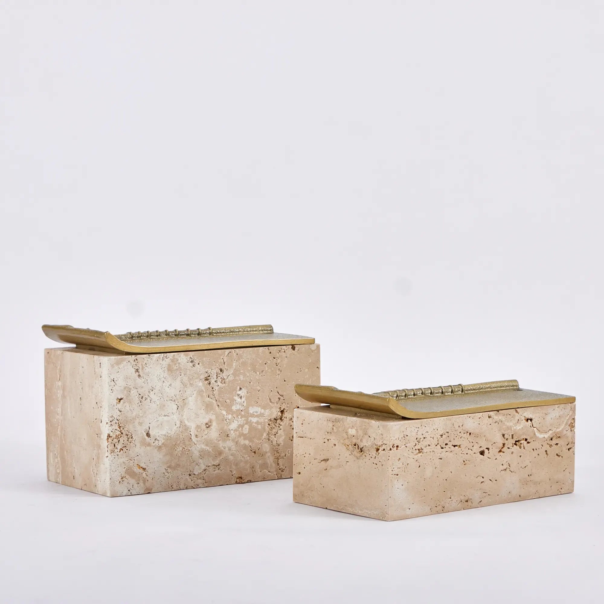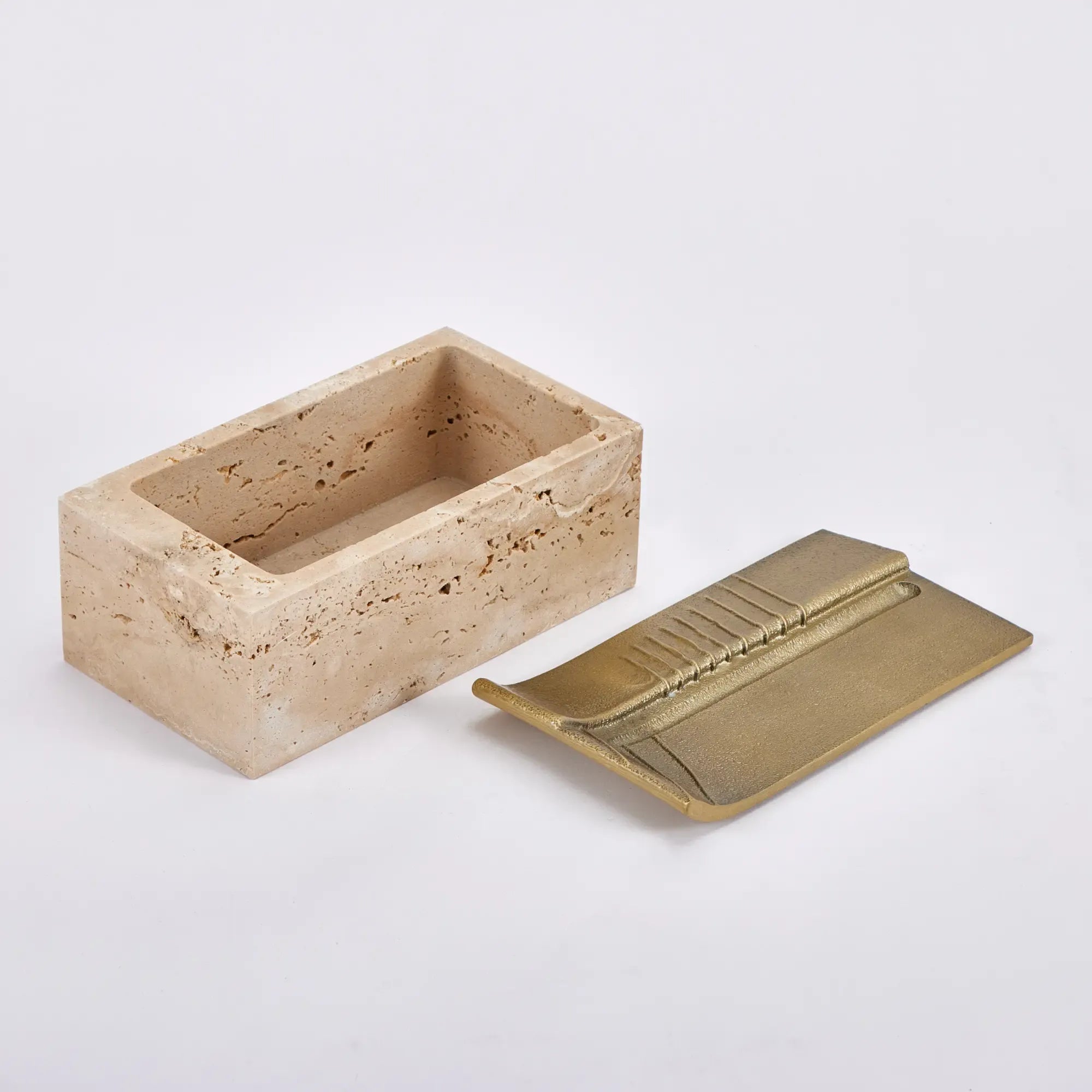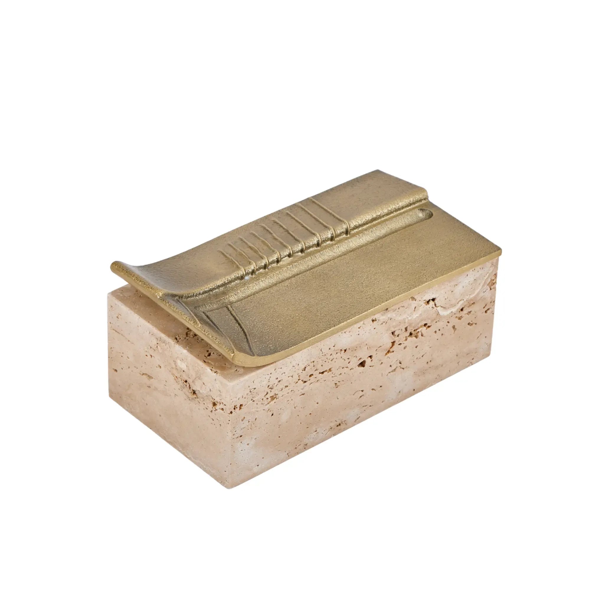 Aufbewahrungsbox - Arca Antiquum Edelstahl & Travertin, Gold & Beige, gross und robust, vom stil Elegant & Minimalistisch & Zeitlos