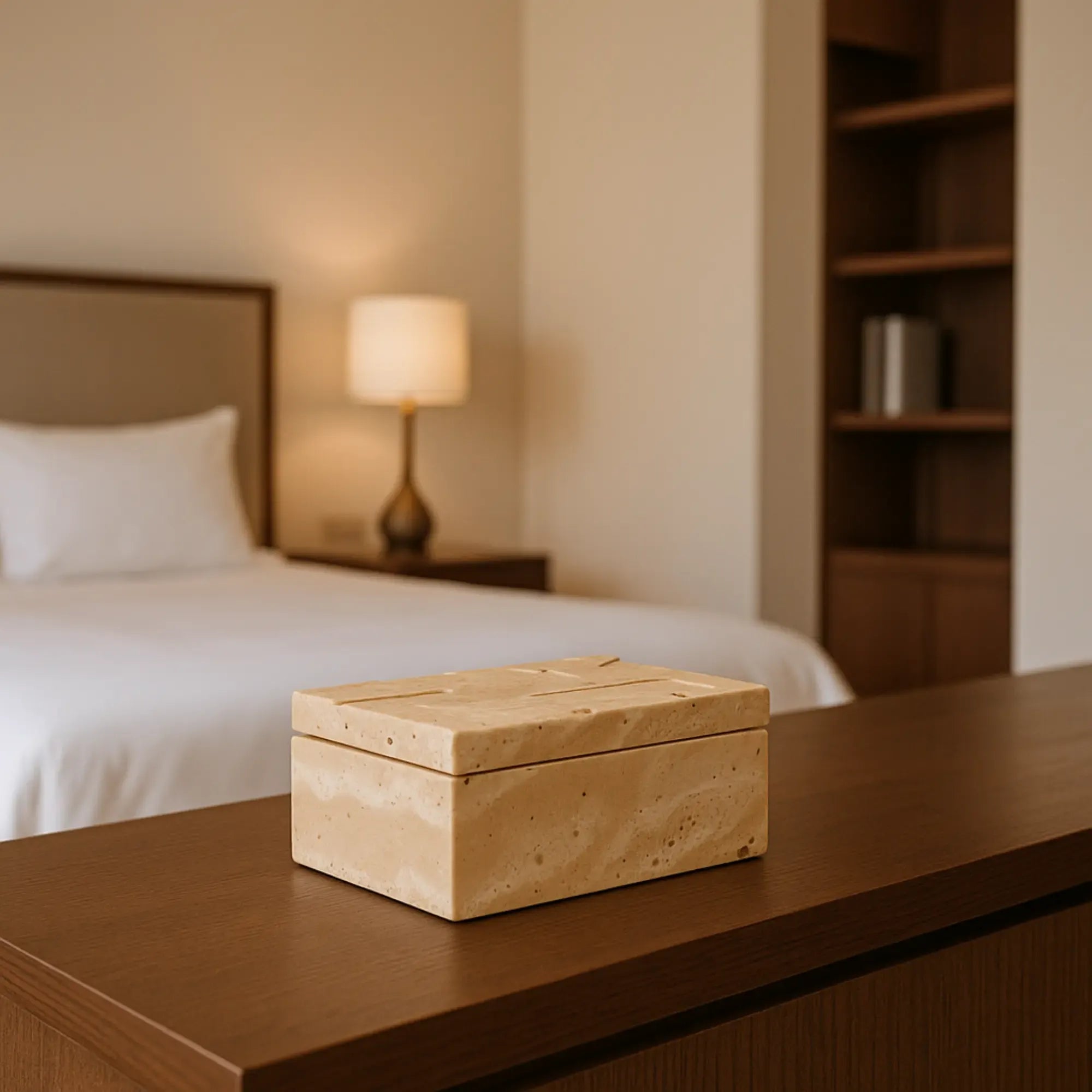 Andere Bezeichnungen und Eigenschaften: Aufbewahrungsbox, Schmuckaufbewahrung, Ablagebox, Aufbewahrung, Travertin, Baddeko, Schlafzimmer, Wellness