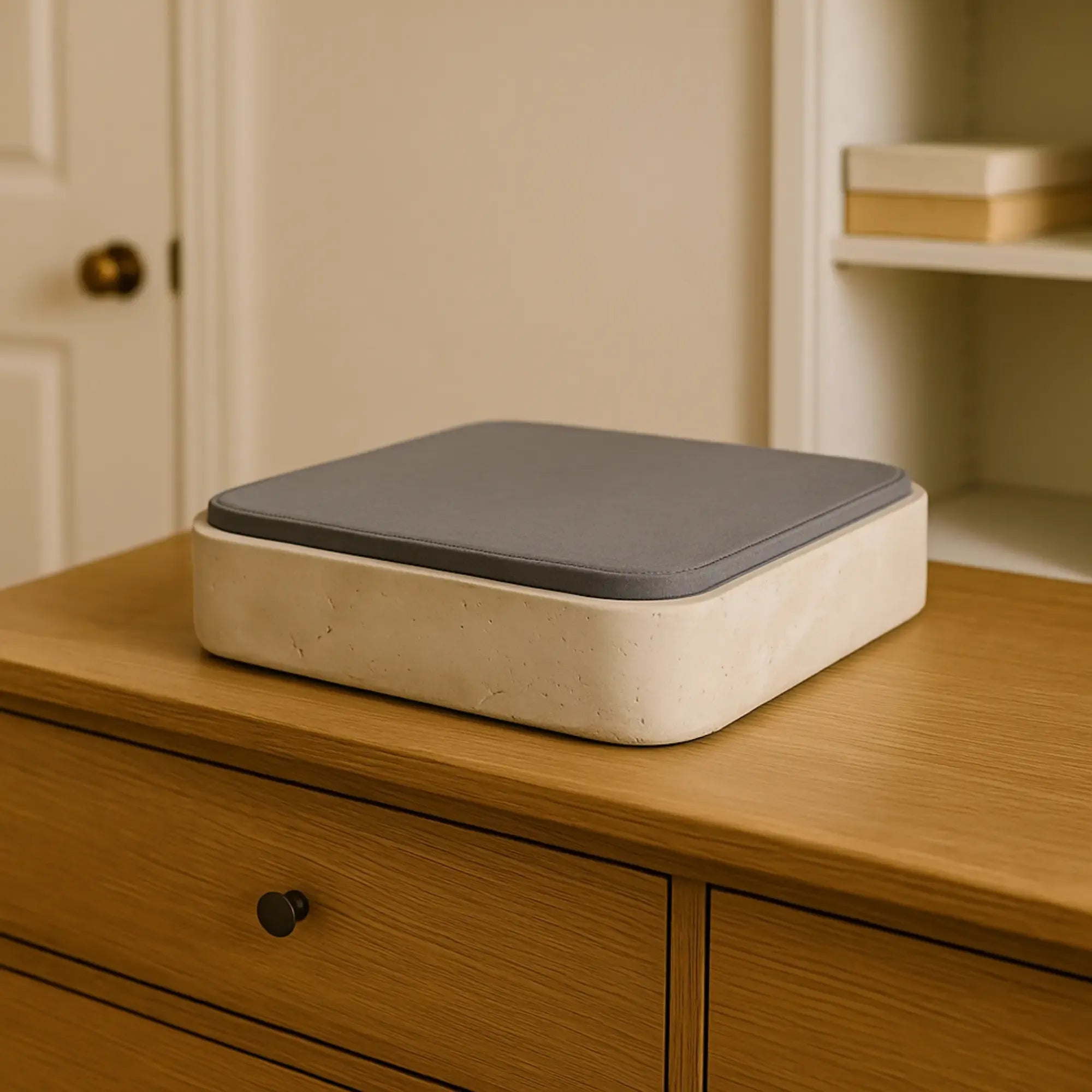 Die Linea Luxe Square Box vereint natürliche Eleganz und moderne Funktionalität in einem luxuriösen Designstück. Aus massivem Travertin handgefertigt, strahlt sie zeitlose Raffinesse aus. Der Deckel und Innenboden sind mit hochwertigem Leder in warmem Terrakotta oder Grau ausgekleidet – optional auch in einer weiteren Farbvariante erhältlich. Erhältlich in zwei Größen – einzeln oder im stilvollen Set kombinierbar – eignet sich die schwere Natursteinbox perfekt zur stilvollen Aufbewahrung von Schmuck, Schlüsseln oder Kosmetik. Ob als edle Dekoablage, Designbox oder elegantes Accessoire im Badezimmer – die Linea Luxe bringt Struktur und Stil in jeden Raum. Ein besonders beliebtes Geschenk zur Einweihung, ideal auch für Hotels, Spa-Bereiche, Empfangszonen oder das stilbewusste Homeoffice.