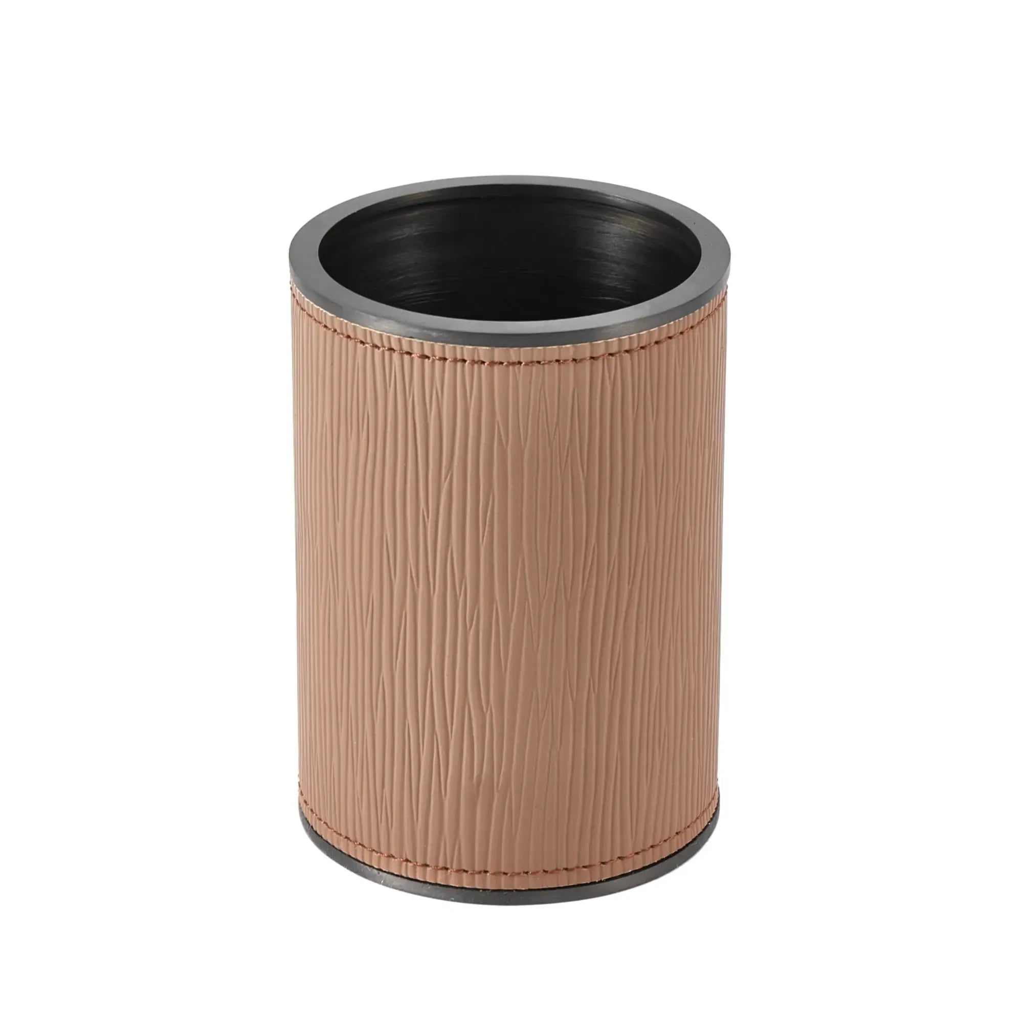 Das luxus Badset Eleganza Bath kombiniert edles Design mit praktischer Funktionalität. Bestehend aus Seifenspender, Zahnputzbecher, Aufbewahrungsbox und passendem Tablett, überzeugt dieses Set durch seine feine Lederstruktur und den matten Edelstahl-Akzent. Die weiche, griffige Oberfläche sorgt für eine angenehme Haptik und ein hochwertiges Gefühl bei jeder Nutzung. Ideal für stilvolle Badezimmer, in denen Design und Alltag perfekt miteinander verschmelzen. Auch als Geschenk zur Einweihung ein echtes Highlight.