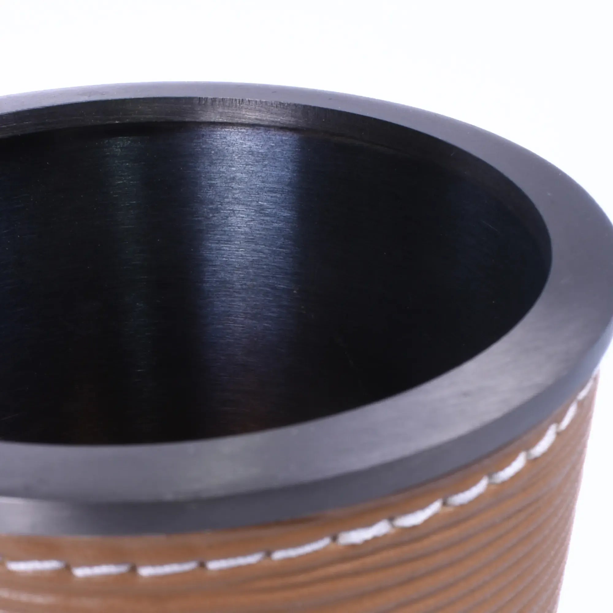 Hochwertiges strukturiertes Leder in feiner Maserung trifft auf robusten Edelstahl für langlebige Eleganz.