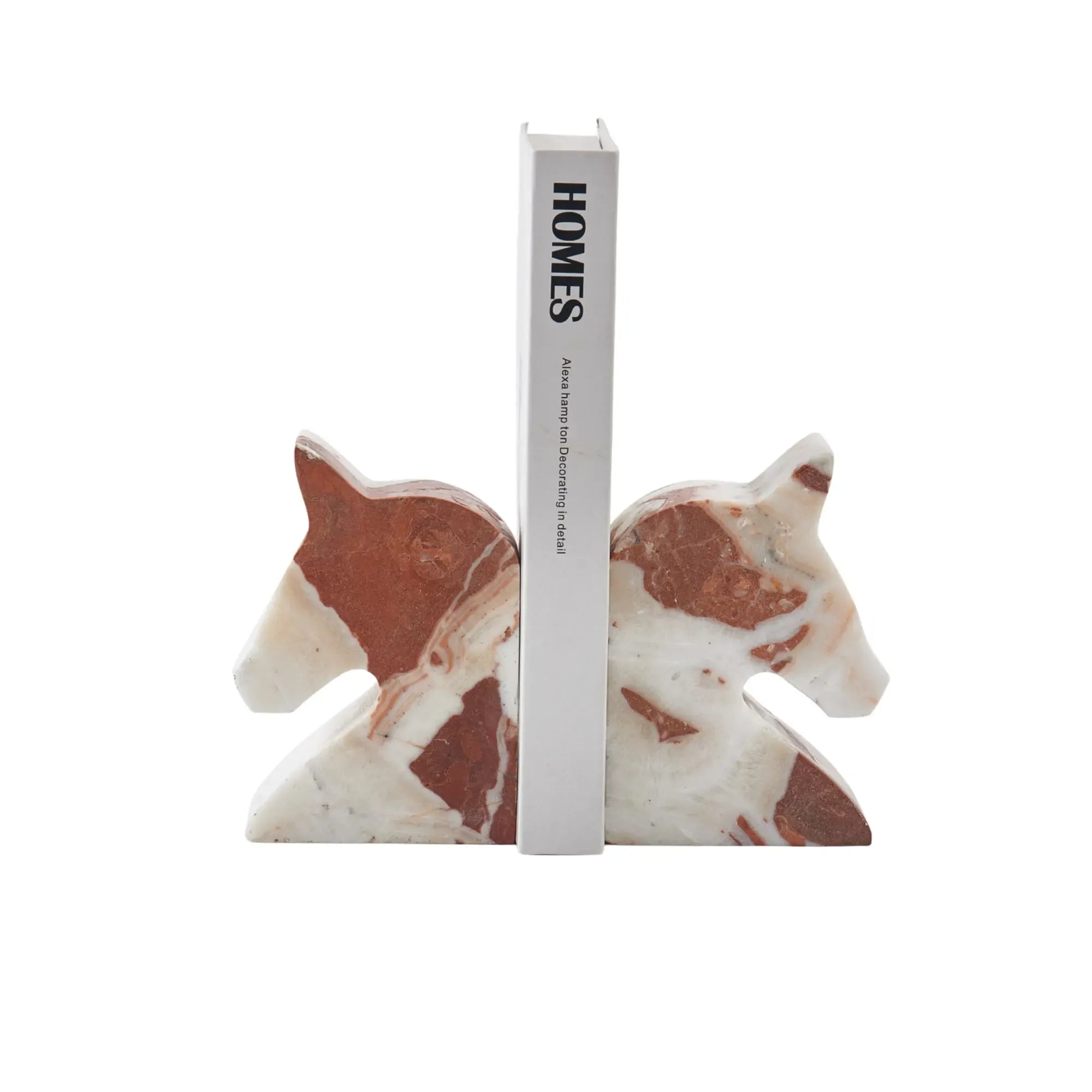Buchstützen Pferd; Pferdekopf Buchhalter; Designer-Buchstützen; schwere Regalstützen; Marmorbuchstütze Optik; elegantes Bücherregal-Accessoire.