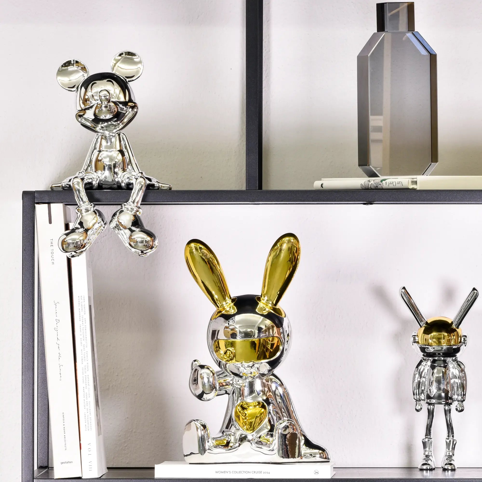 Cartoonfigur - Skulptur spiegelpolierte Hasenfigur – Cartoon Dekofigur – Pop-Art Dekoobjekt Lapin Aurum Kunstharz, Silber & Gold, gross und robust, im Stil: Abstrakt, Popart, Cartoon, Modern