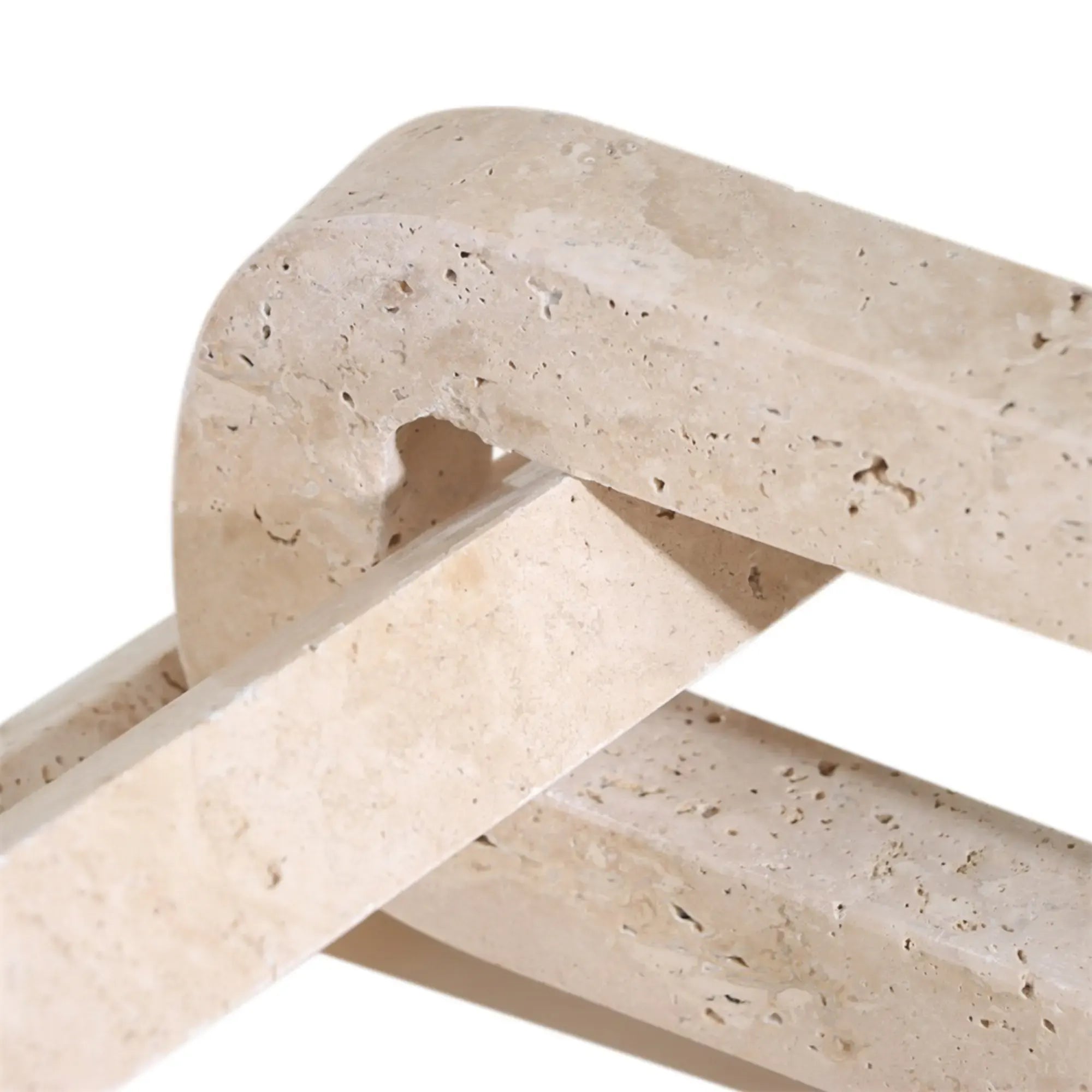 Die Dekorationskette „Certeza“ aus echtem beigefarbenem Travertin verbindet modernes Design mit zeitloser Ästhetik. Drei rechteckige Kettenglieder aus Naturstein sind fest miteinander verbunden und bilden eine skulpturale Einheit mit architektonischem Charakter. Dank ihres besonders schweren Gewichts und der großzügigen Form eignet sich „Certeza“ hervorragend als Regalfüller, Tischdeko, auf Sideboards oder sogar als Buchstütze. Die Oberfläche mit natürlicher Maserung und Porenstruktur unterstreicht die Einzigartigkeit jedes Stücks. Ob im Wohnzimmer, Homeoffice oder in der Bibliothek – diese Travertin-Gliederkette ist ein echtes Statement-Piece, das Ruhe, Stärke und Struktur in jeden Raum bringt. Ideal kombinierbar mit Empor, Rona, Vase Argos oder Schale Argos für ein harmonisches Gesamtbild. Auch als Geschenkidee zur Einweihung oder für Architektur- und Designliebhaber ist „Certeza“ ein außergewöhnliches und stilvolles Objekt mit bleibendem Eindruck.