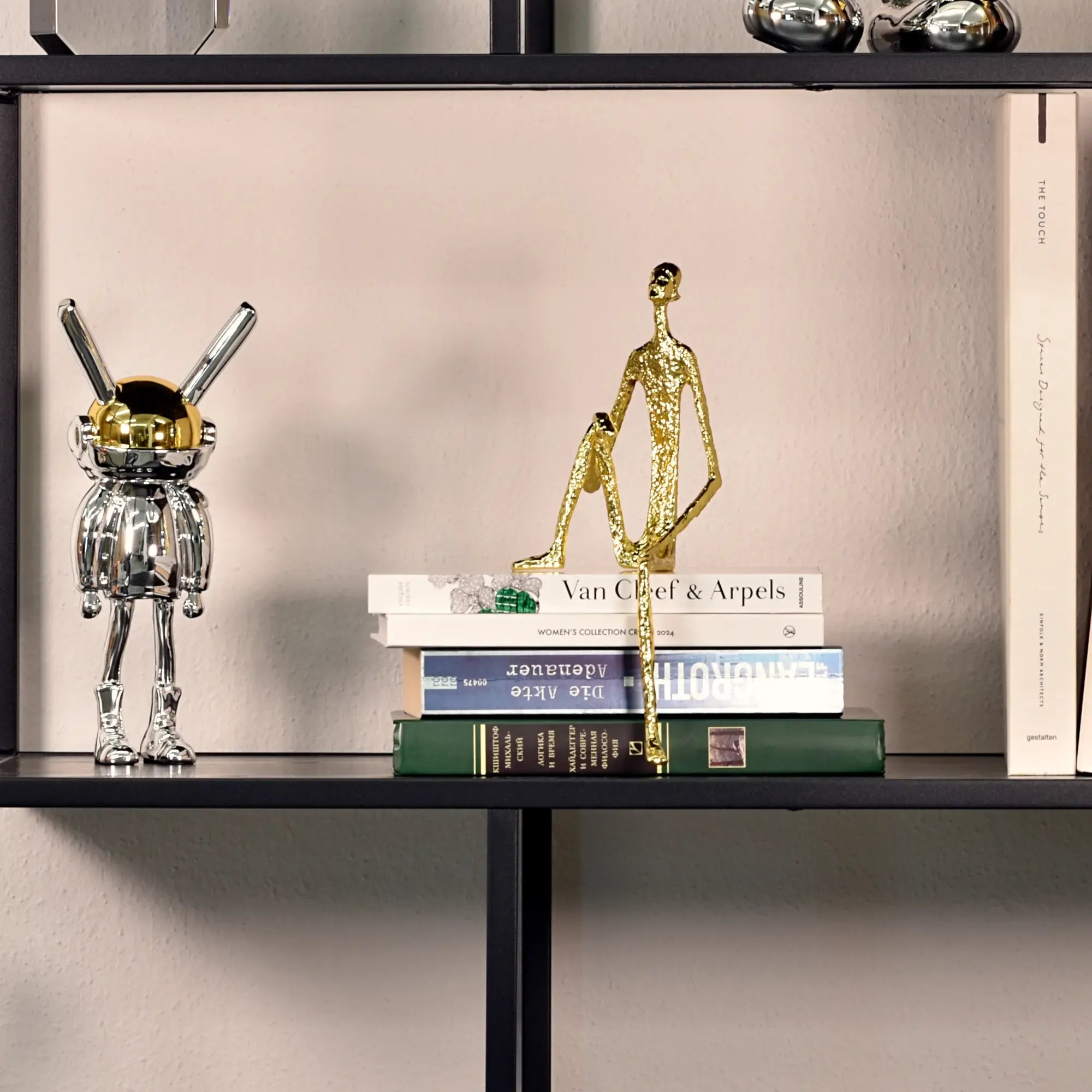 Andere Bezeichnungen und Eigenschaften: Dekofigur, Dekoobjekt, Dekoskulptur, Menschfigur, Bücherregal, Wohnzimmer, Denkerfigur, Golddeko, Aluminiumdeko