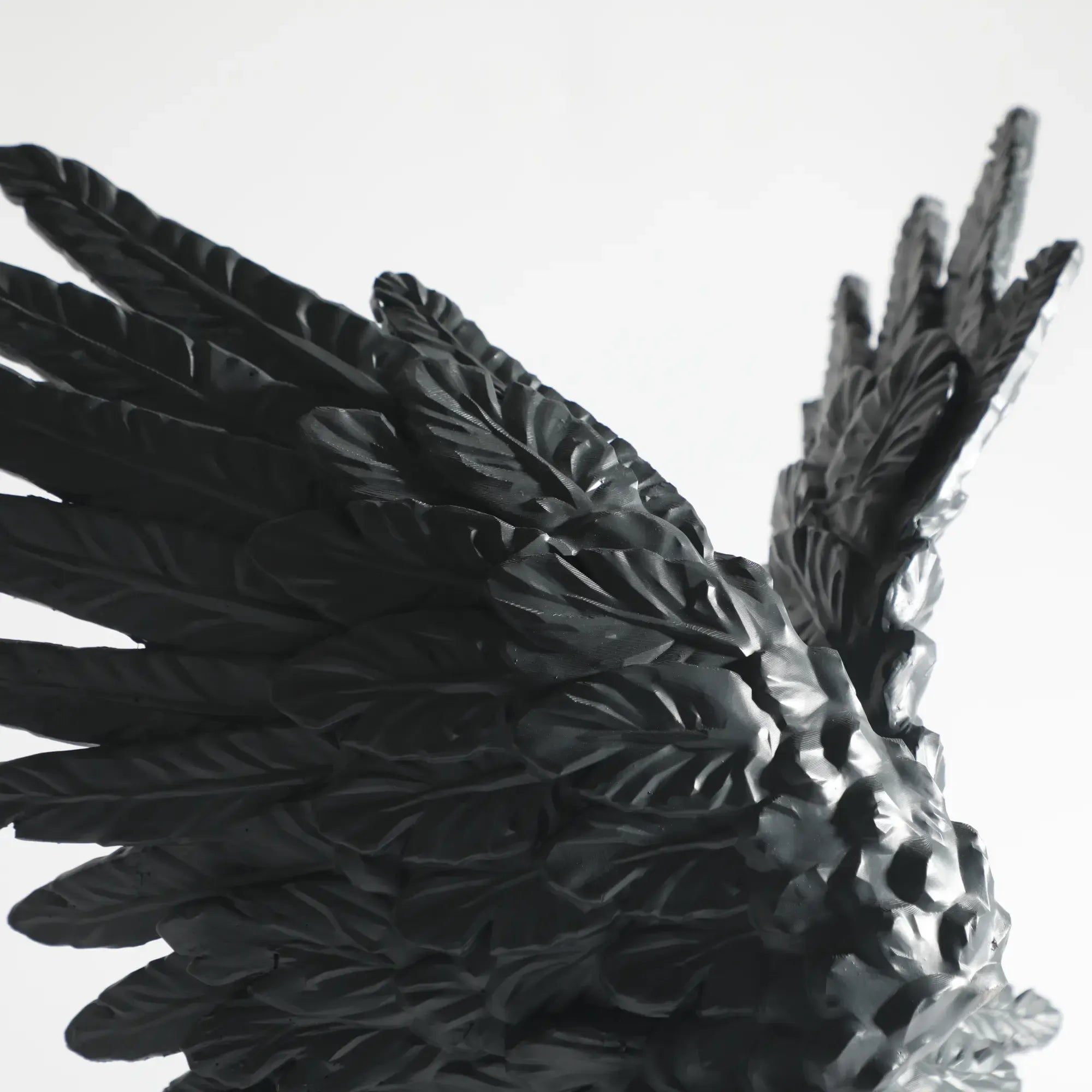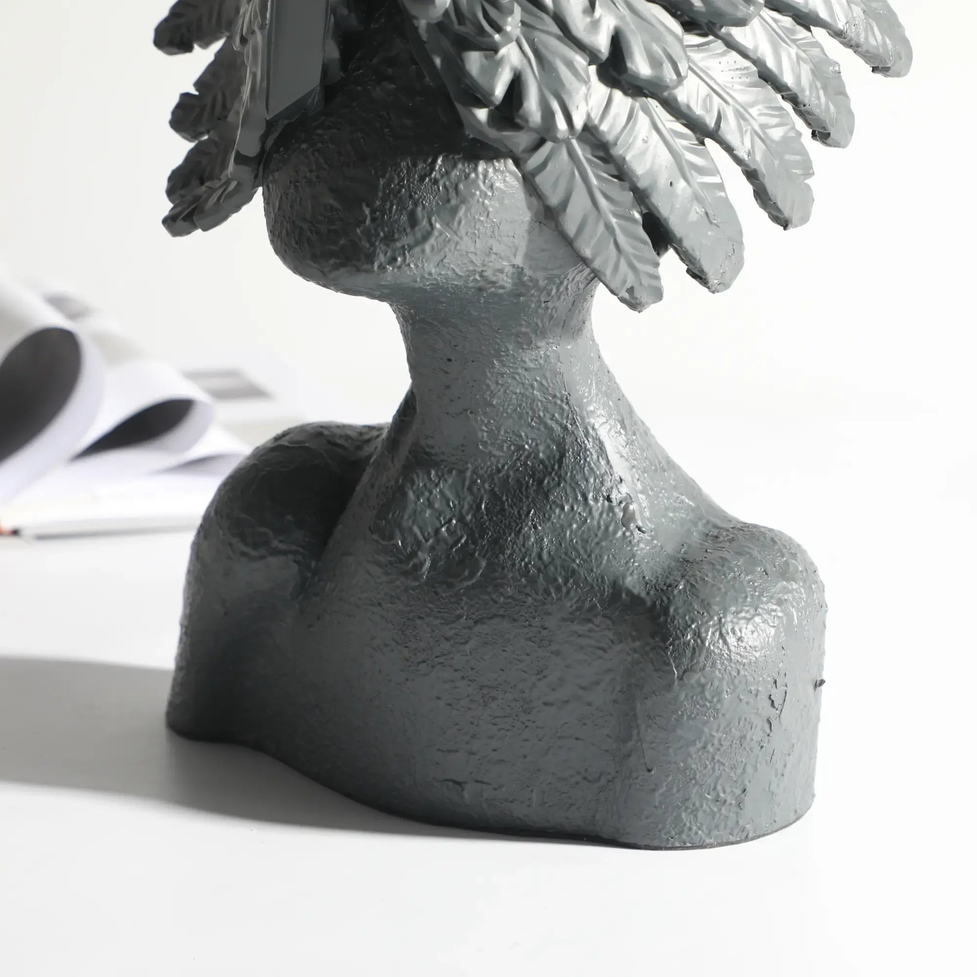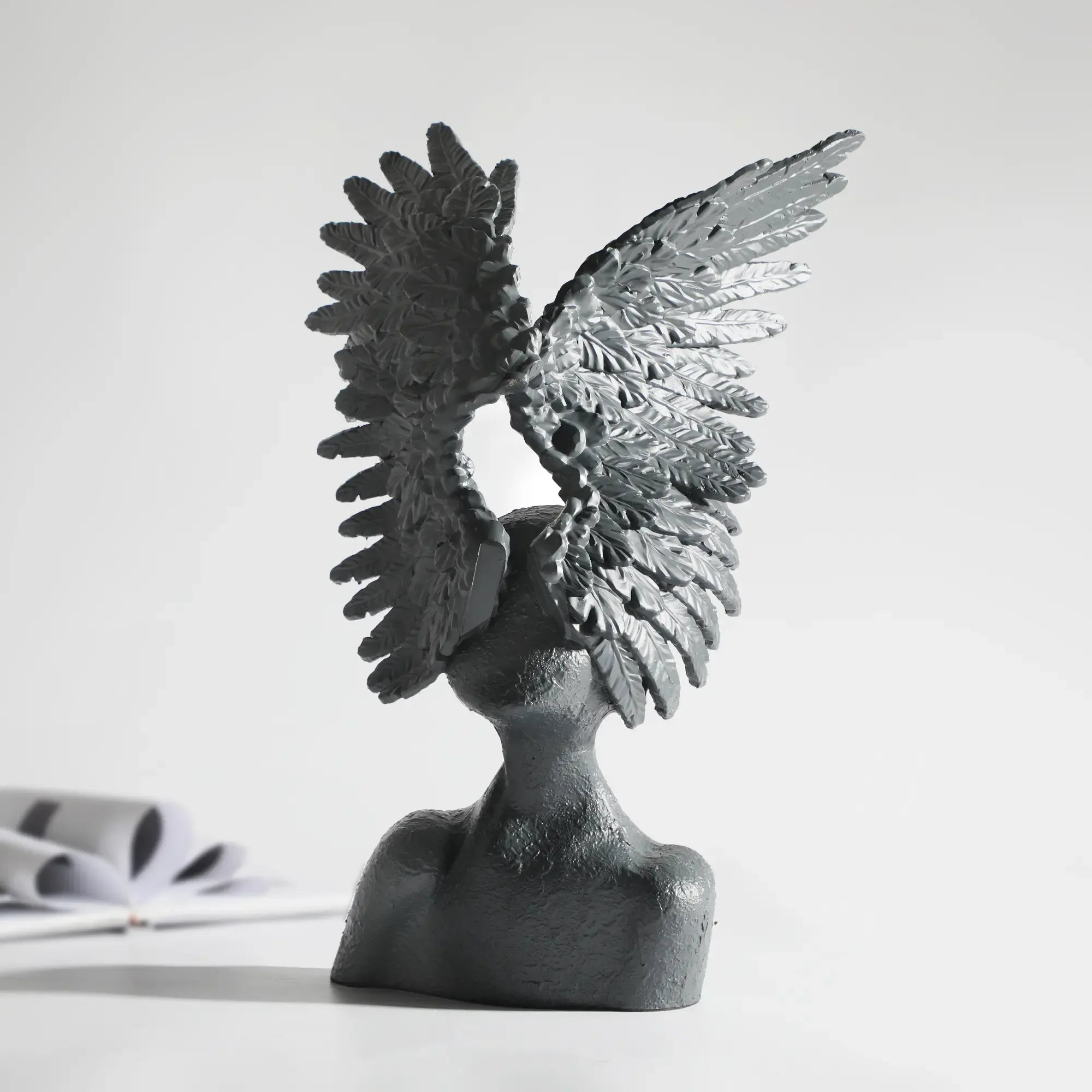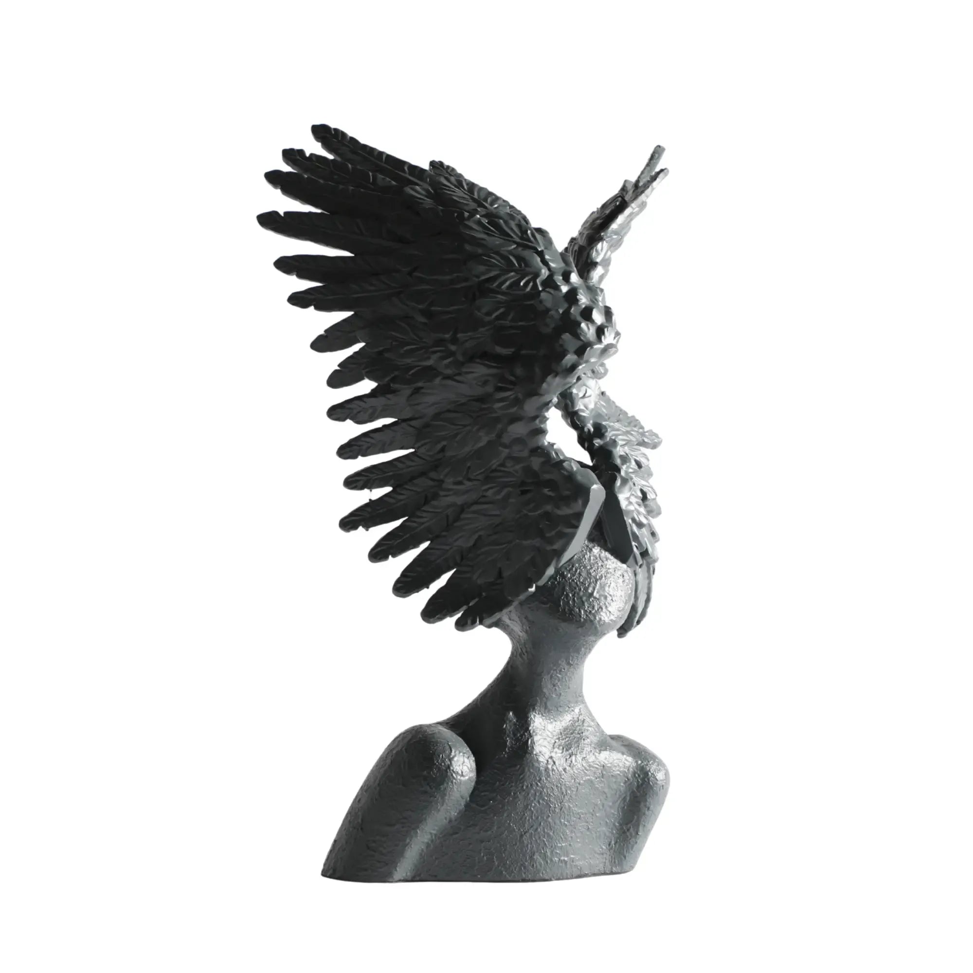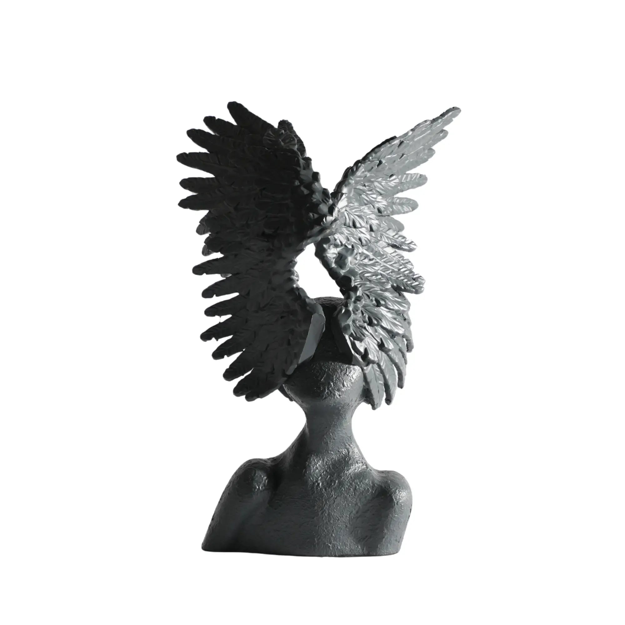 Die stilisierte, abstrakte Büste mit ausgebreiteten Flügeln symbolisiert Freiheit und Offenheit für das Leben. Diese Kunstharzdekoration bringt Eleganz und einen Hauch von Surrealismus in jeden Raum. Perfekt für Podeste, Kommoden oder Regale, zieht dieses zeitlose Kunstwerk alle Blicke auf sich.