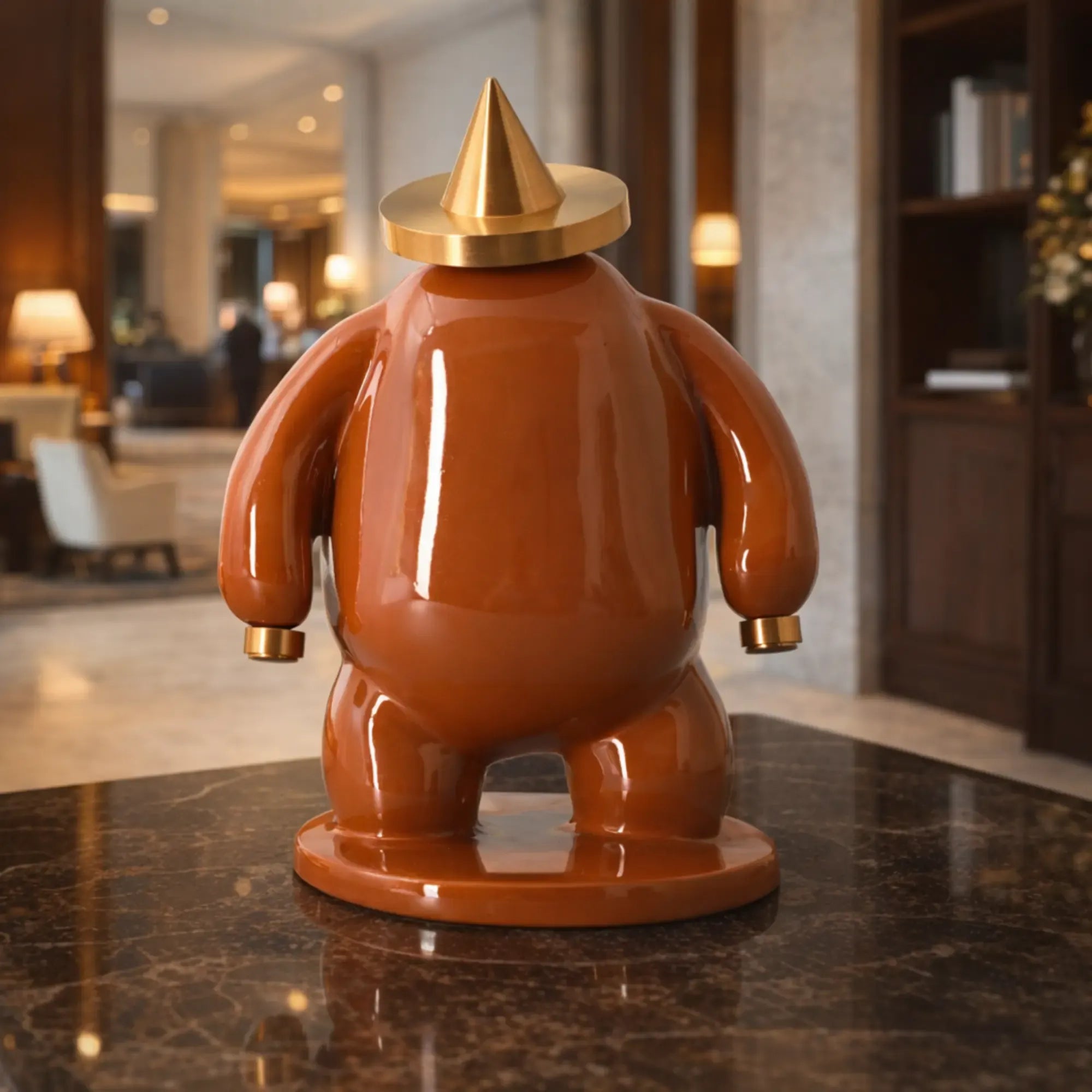 Pop-Art Skulptur, Designer-Toy Deko, moderne Figur, goldene Akzentdeko, Sammlerobjekt für Regal & Sideboard.